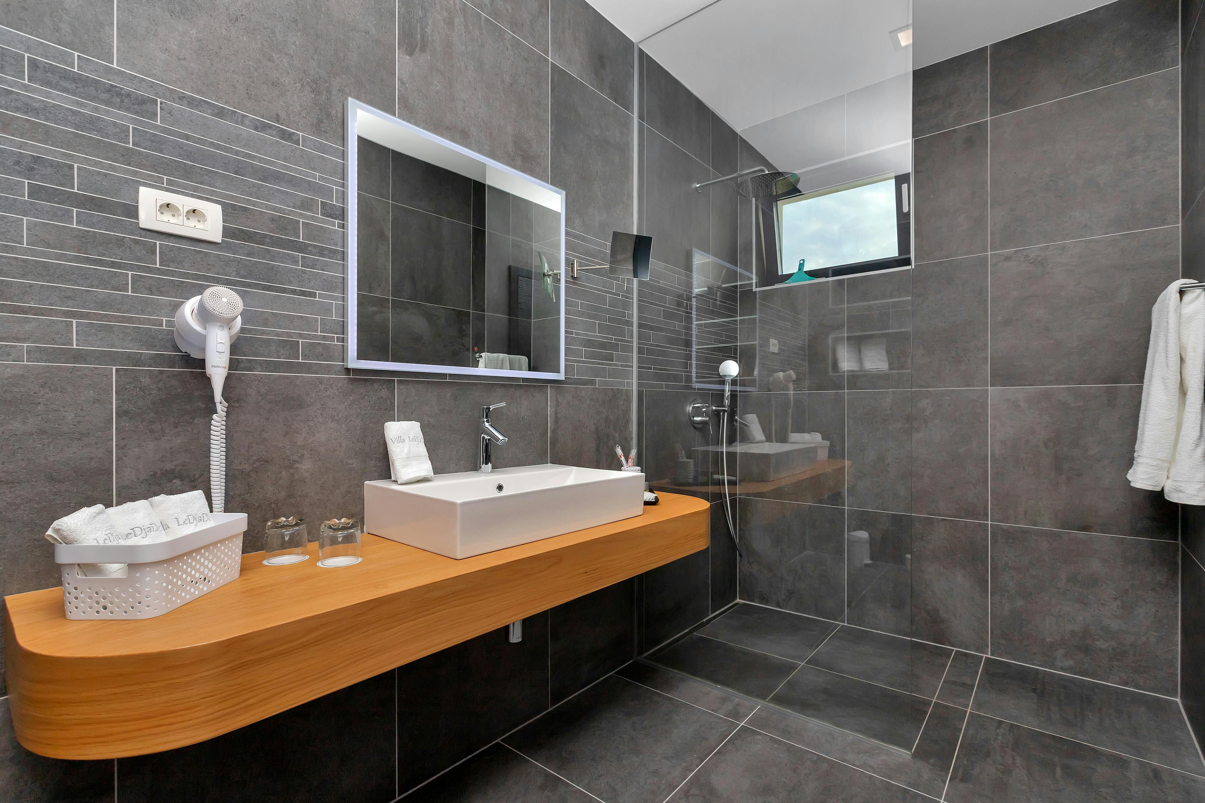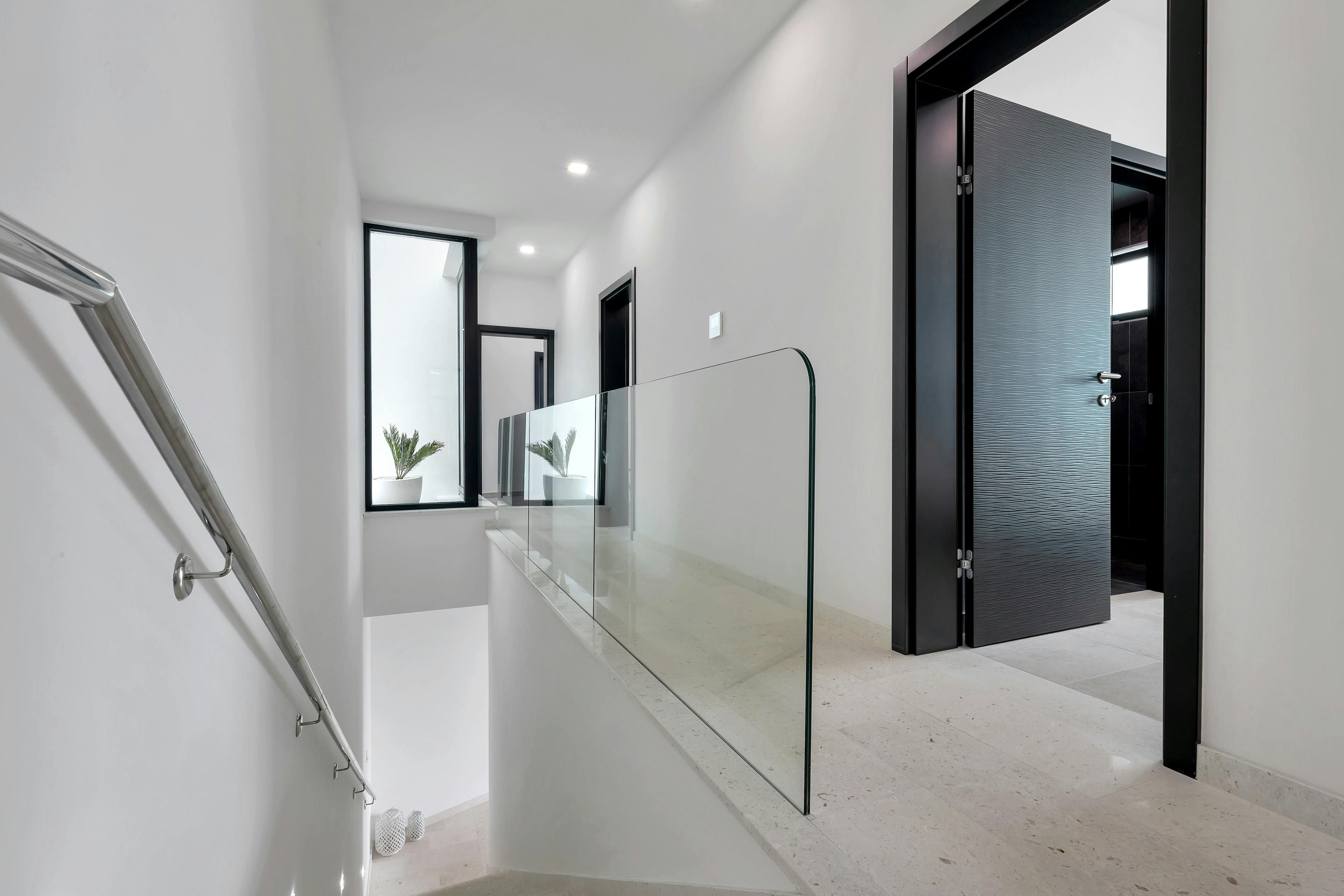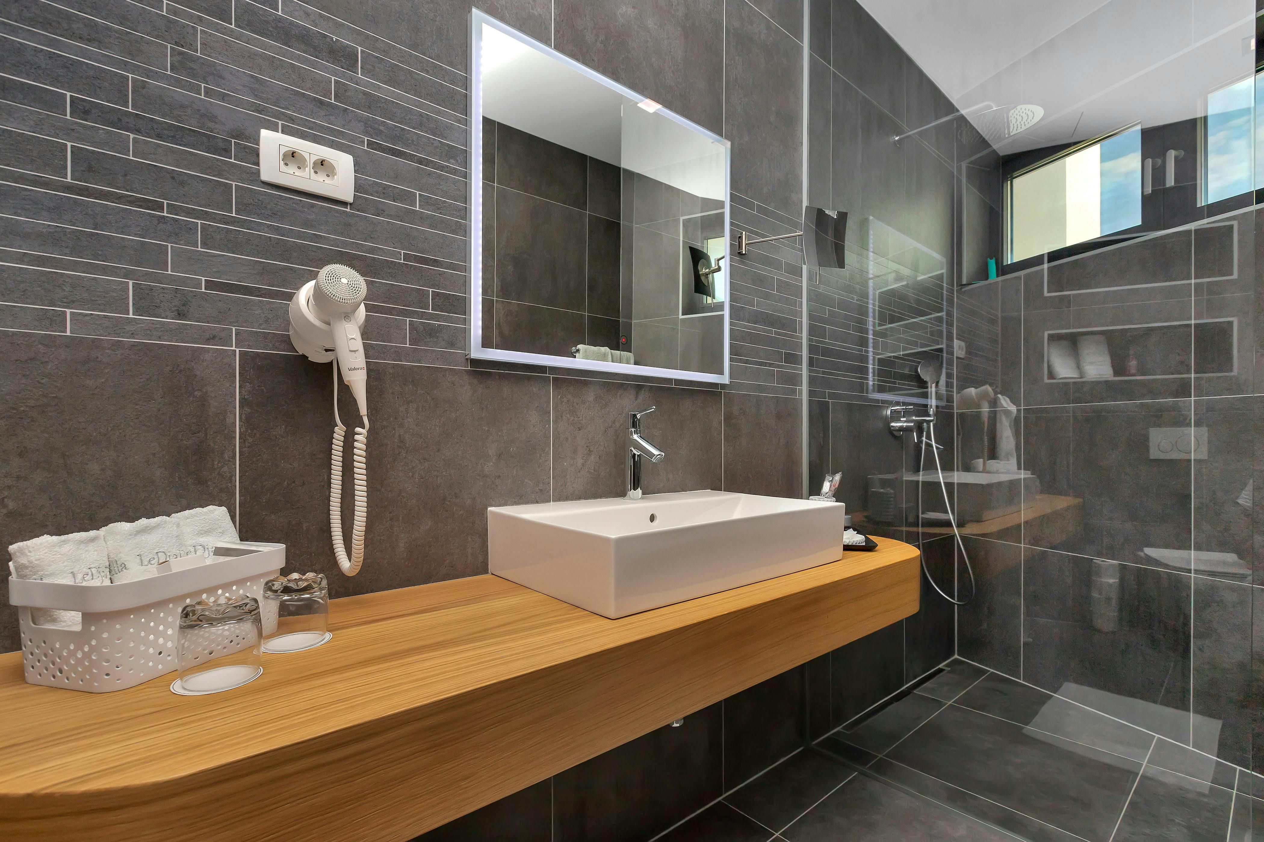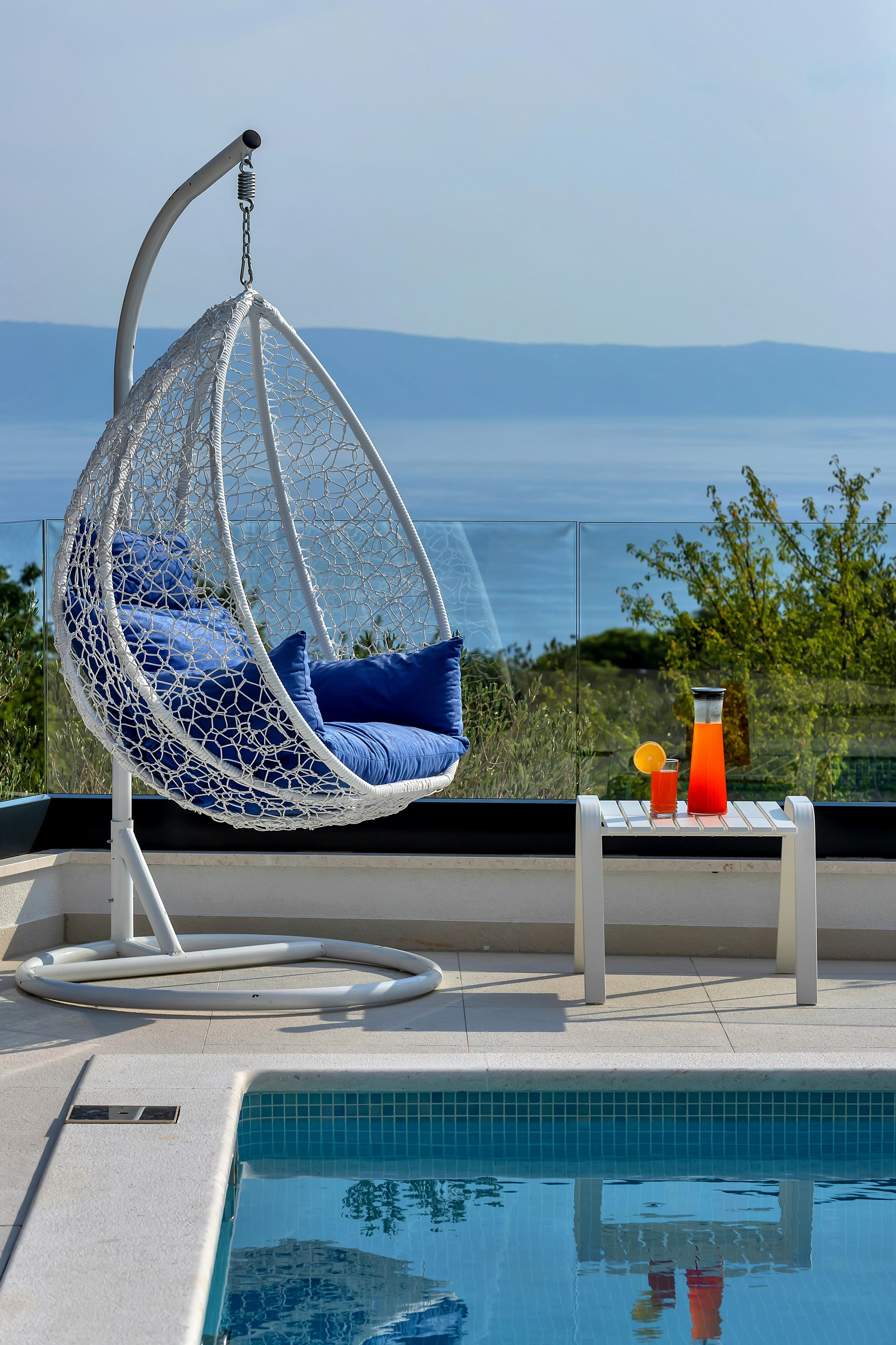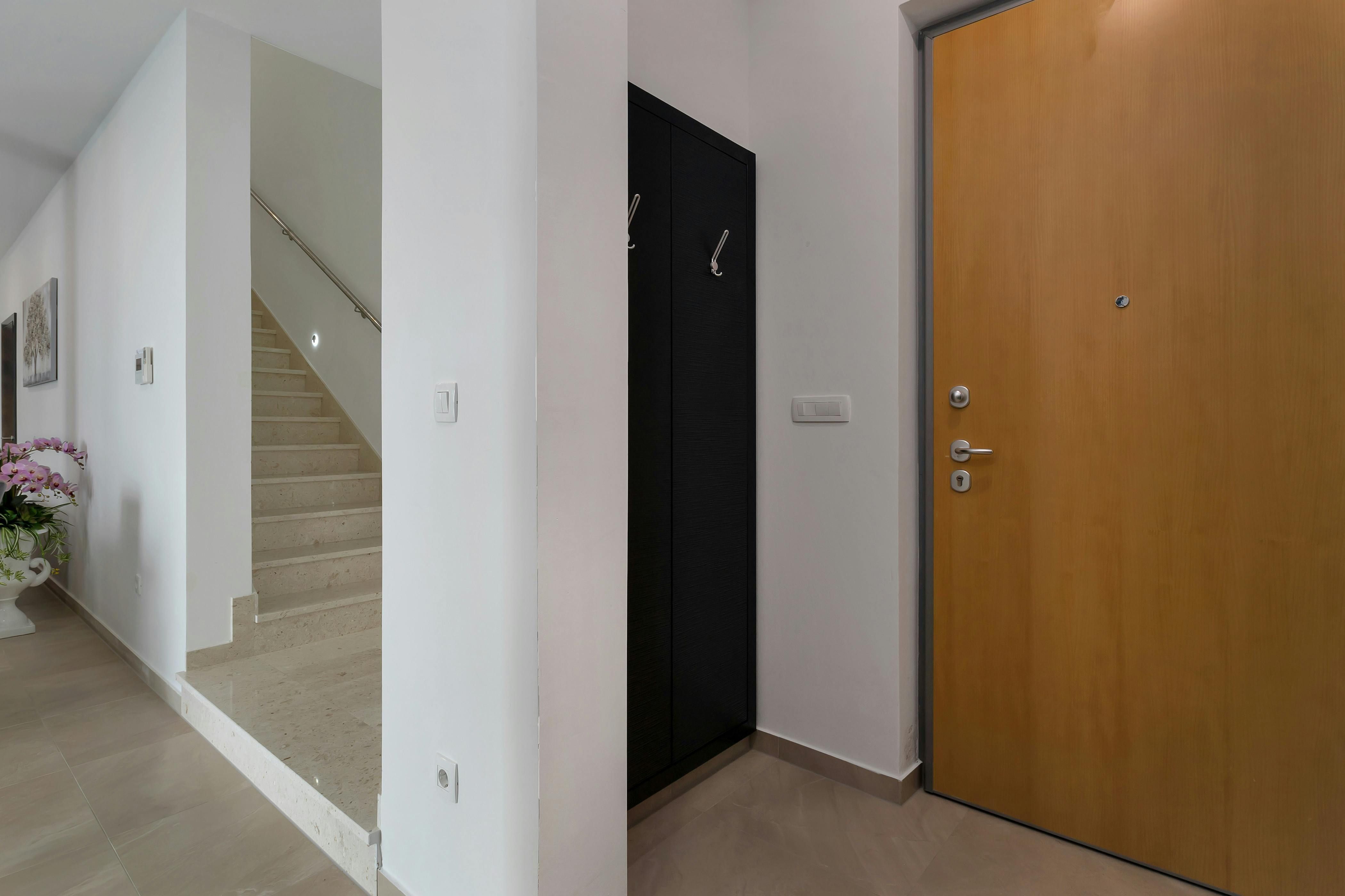 This stunning, architecturally sophisticated villa is nestled against the rugged gray mountain slopes of Makarska, boasting breathtaking sea views. The open-air setting invites guests to enjoy the 1,000-square-meter outdoor world, with a heated 40 m² pool featuring a counter-current system and hydro-massage for ultimate relaxation. In addition to comfortable loungers, guests can enjoy evening barbecues on the adjacent brick charcoal grill while taking in the Mediterranean breeze. Inside, the elegant design combines modernity and coziness, with large floor tiles and white walls providing a harmonious backdrop for the furniture. The open-plan living and dining area features a fireplace for added comfort on cooler days while the integrated kitchen boasts a high-gloss look and comprehensive equipment. Upstairs, three stylish bedrooms await with breathtaking views from floor-to-ceiling windows, all air-conditioned and equipped with their own TV and en suite bathroom for maximum privacy.