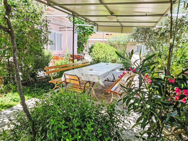 3-room apartment 45 m2, on the ground floor. Living/dining room with satellite TV and air conditioning. Exit to the terrace. 1 room with 1 french bed (140 cm, length 200 cm). 1 room with 2 beds (90 cm, length 200 cm). Open kitchen (4 hot plates, oven, freezer). Shower/WC. Terrace 10 m2.