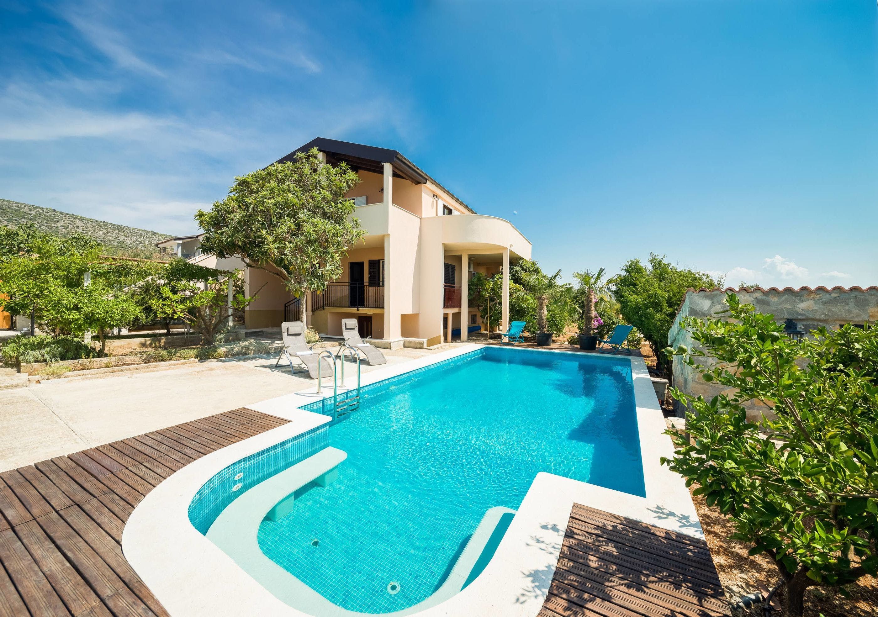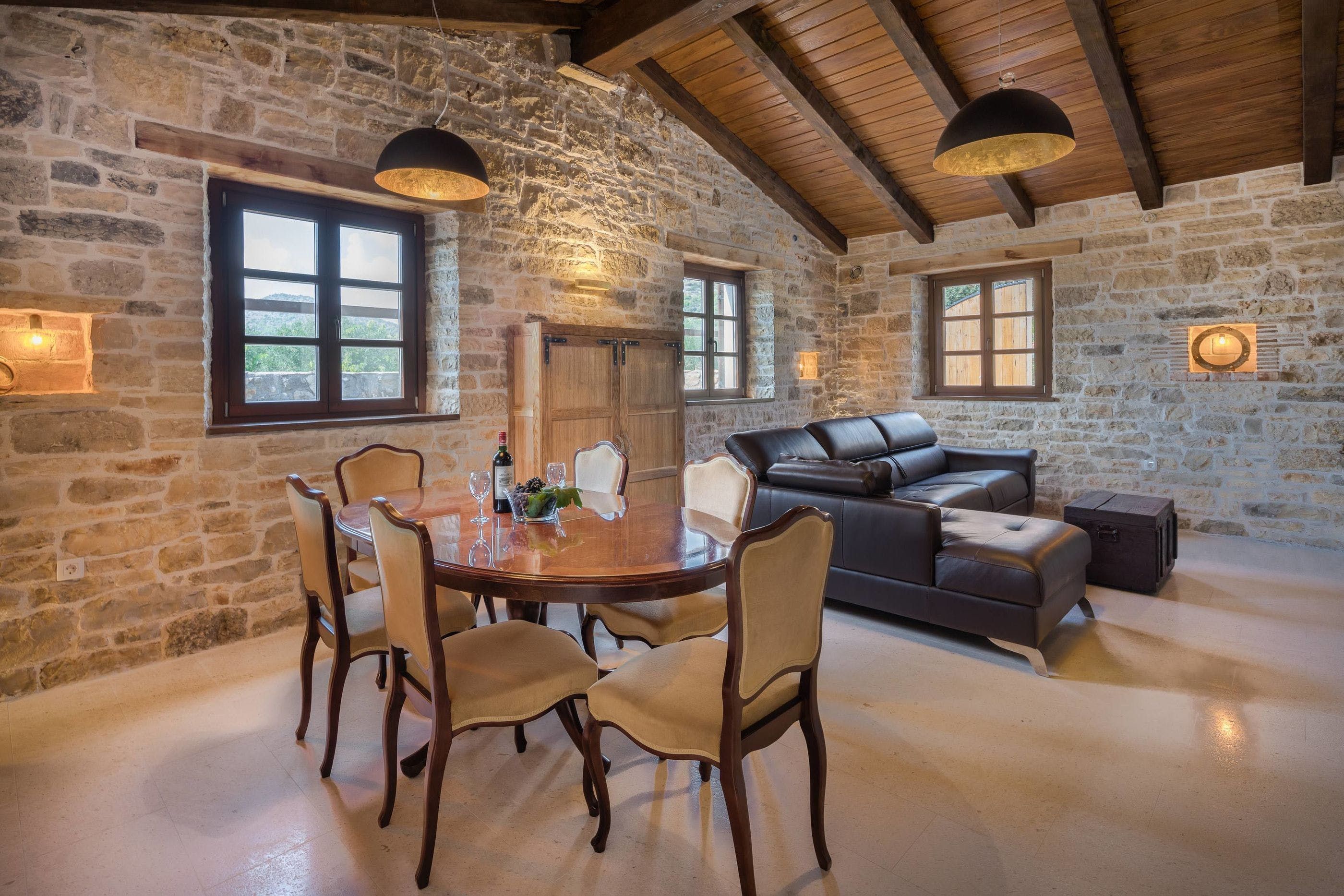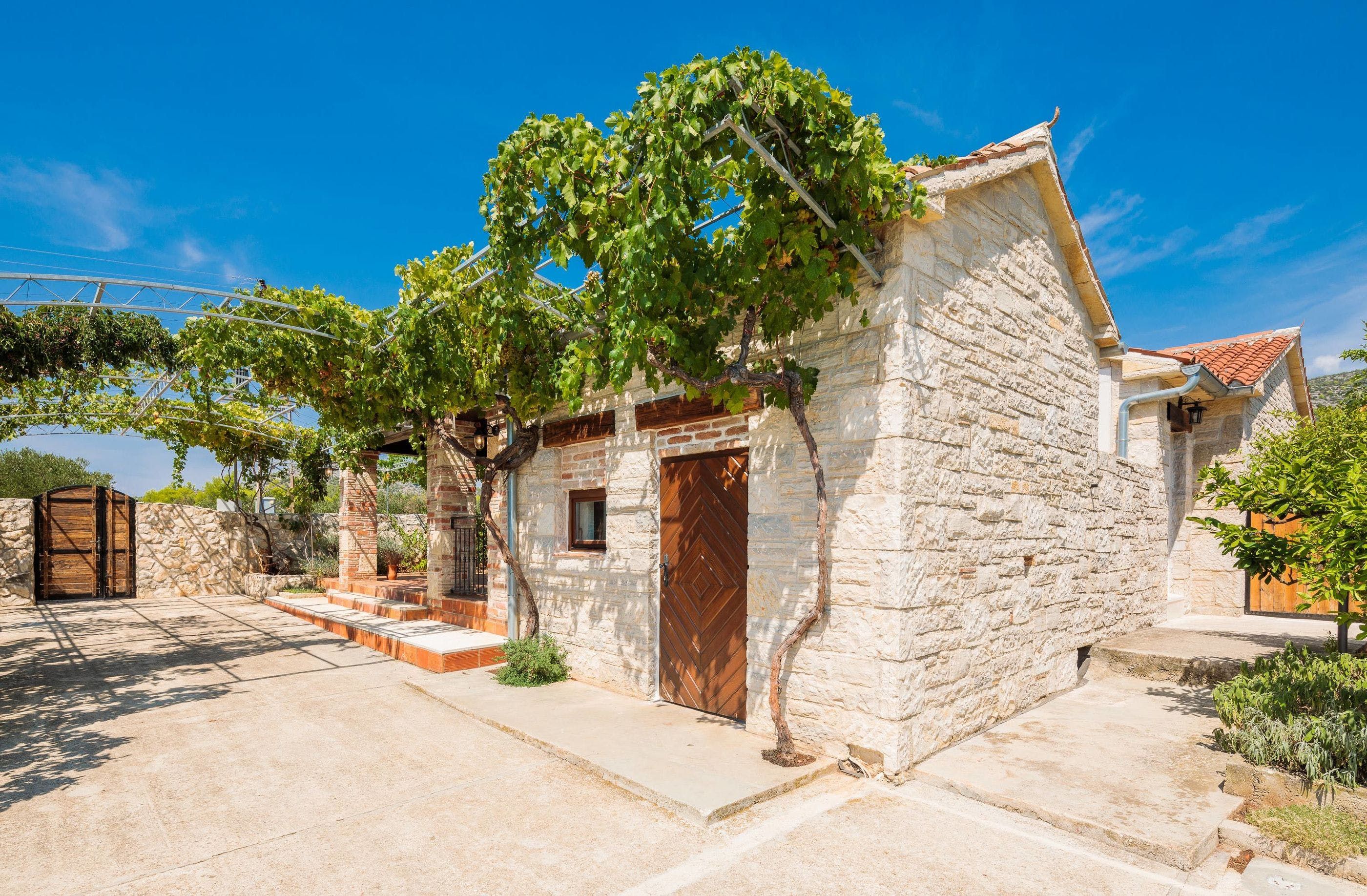 Based on the breezy shores of the Adriatic sea in the old fishing village Seget Vranjica, this spacious villa oozes rustic charm, from its stone walls to its picturesque trees and the surrounding greenery. Enter the gate into a secluded courtyard, where you can take a dip in the pool, grill up fish on the barbecue and, enjoy a languish on the shaded outdoor sofa terrace.