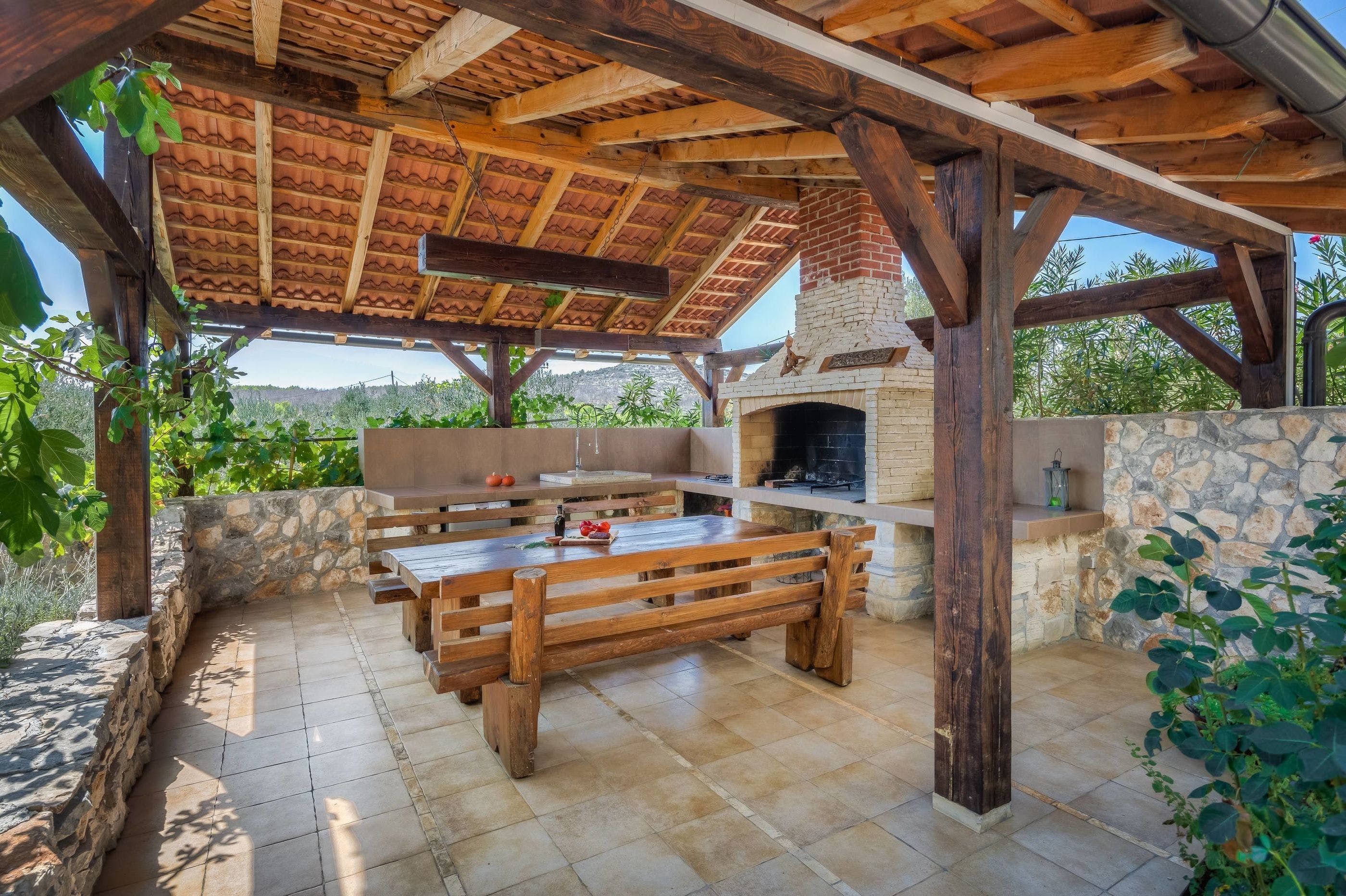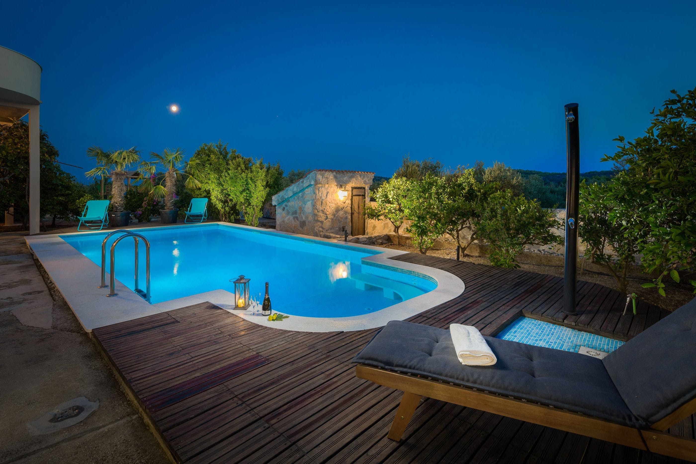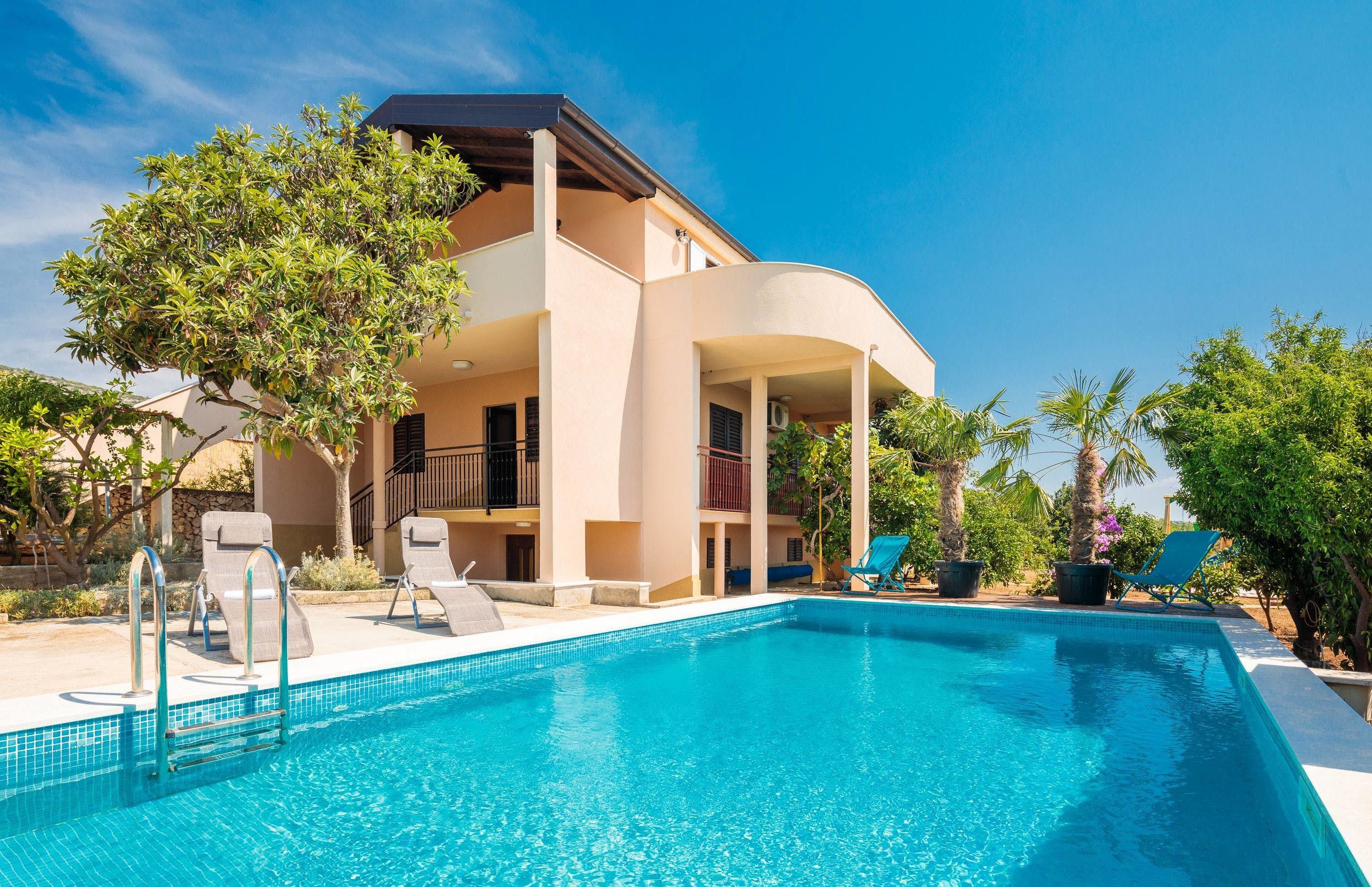 Based on the breezy shores of the Adriatic sea in the old fishing village Seget Vranjica, this spacious villa oozes rustic charm, from its stone walls to its picturesque trees and the surrounding greenery. Enter the gate into a secluded courtyard, where you can take a dip in the pool, grill up fish on the barbecue and, enjoy a languish on the shaded outdoor sofa terrace.