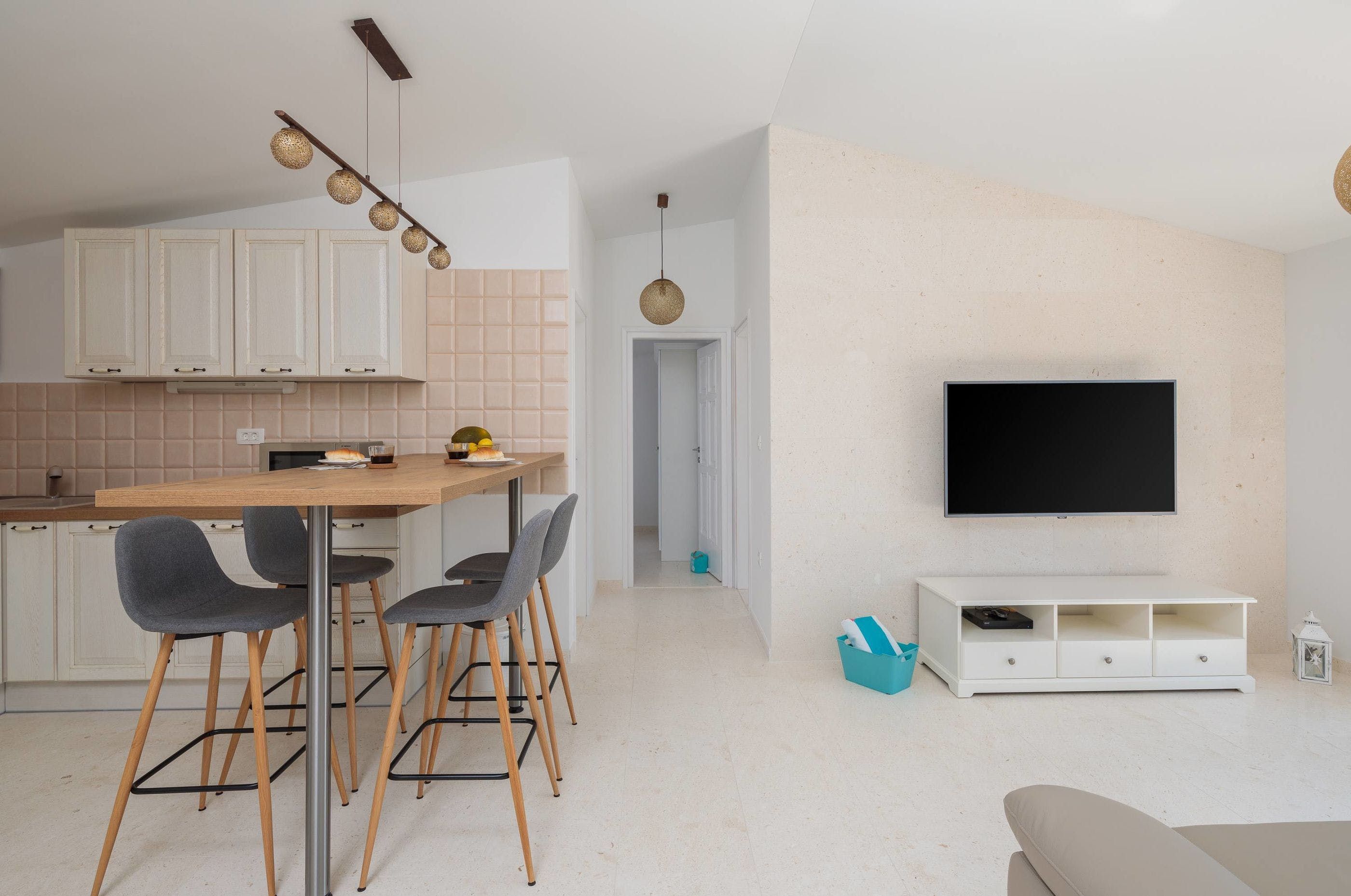 Nearby, there's a variety of stunning pebble and sand cove beaches to explore: stroll along the long promenade at Belvedere beach, sail on the Adriatic Sea by Medena beach, or gaze at the dreamy bays of Bucevica – all within a ten-minute drive away.