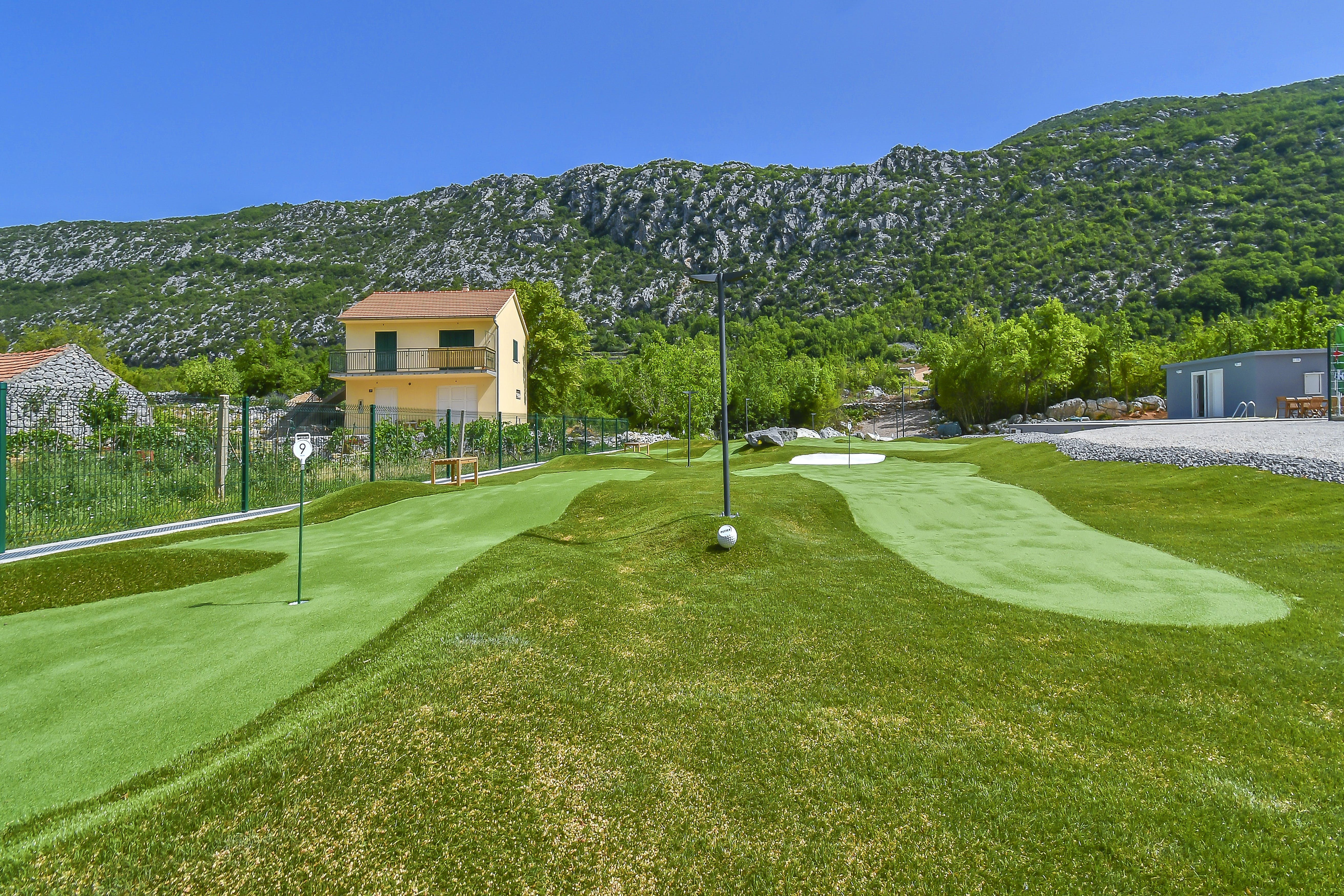 Located in the coastal village of Župa, this villa puts you right in the heart of the beautiful Biokovo Nature Park. Because of the rural location, you’ll need a car to get around, but if you ask us it’s worth it to enjoy close proximity to many beautiful hiking trails. Dogs are welcome, so this is the perfect place to enjoy some walks and soak up your surroundings. At home, there are plenty of ways to relax and unwind thanks to the wellness area complete with a sauna and massage table, the outdoor pool and an alfresco dining terrace. When it comes to keeping the kids entertained, the putting green, tennis courts and basketball net should do the trick.