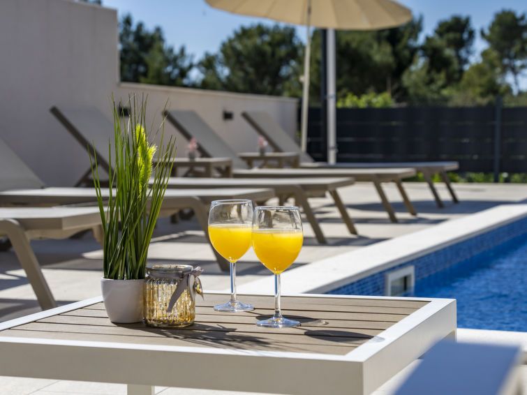 4-room villa 142 m2, south-west facing position. Modern furnishings: living/dining room 35 m2 with 1 sofabed (140 cm, length 200 cm), satellite TV (flat screen), air conditioning. Exit to the terrace. 3 rooms, each room with 1 french bed (180 cm, length 200 cm), shower/WC and satellite TV (flat screen), air conditioning.