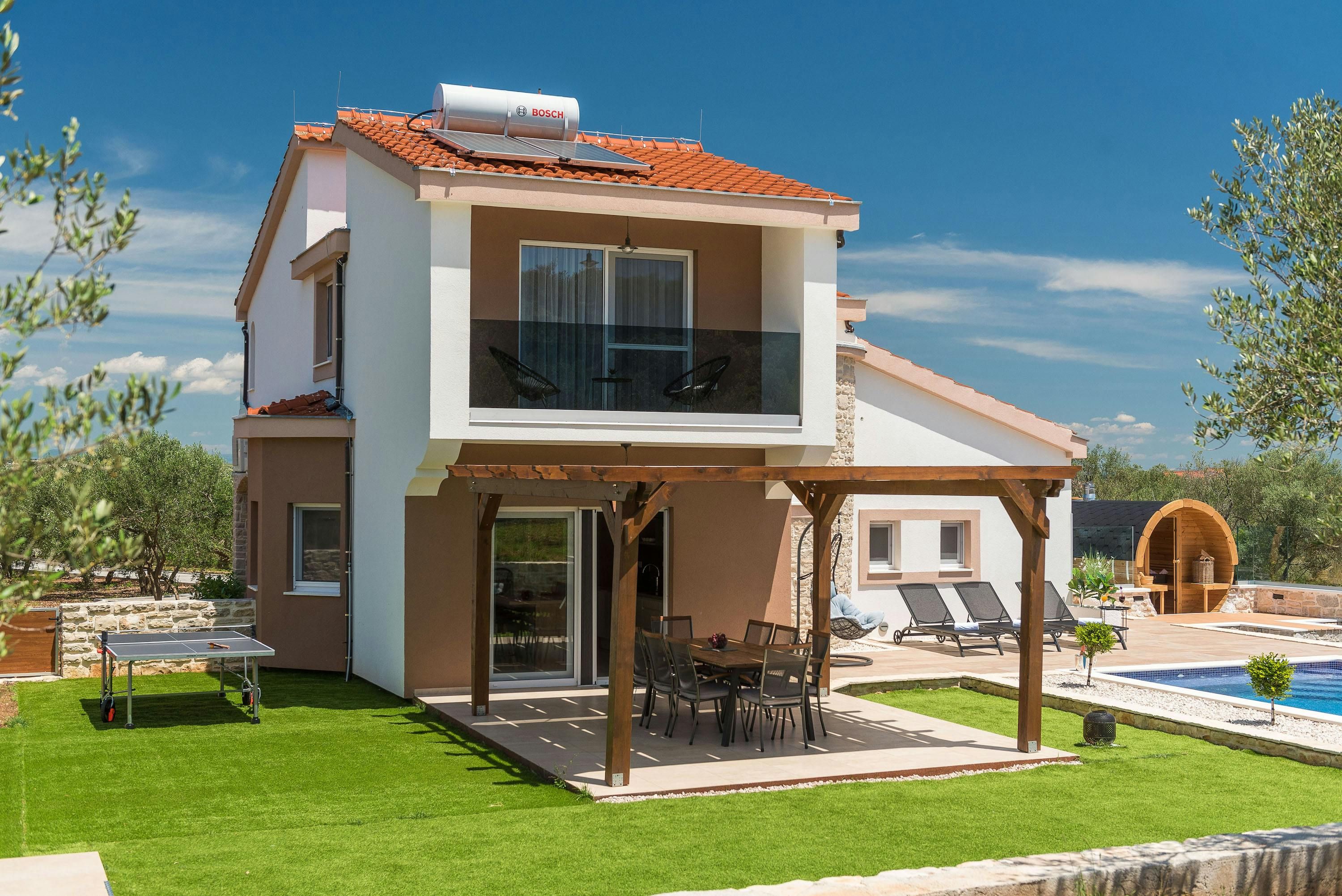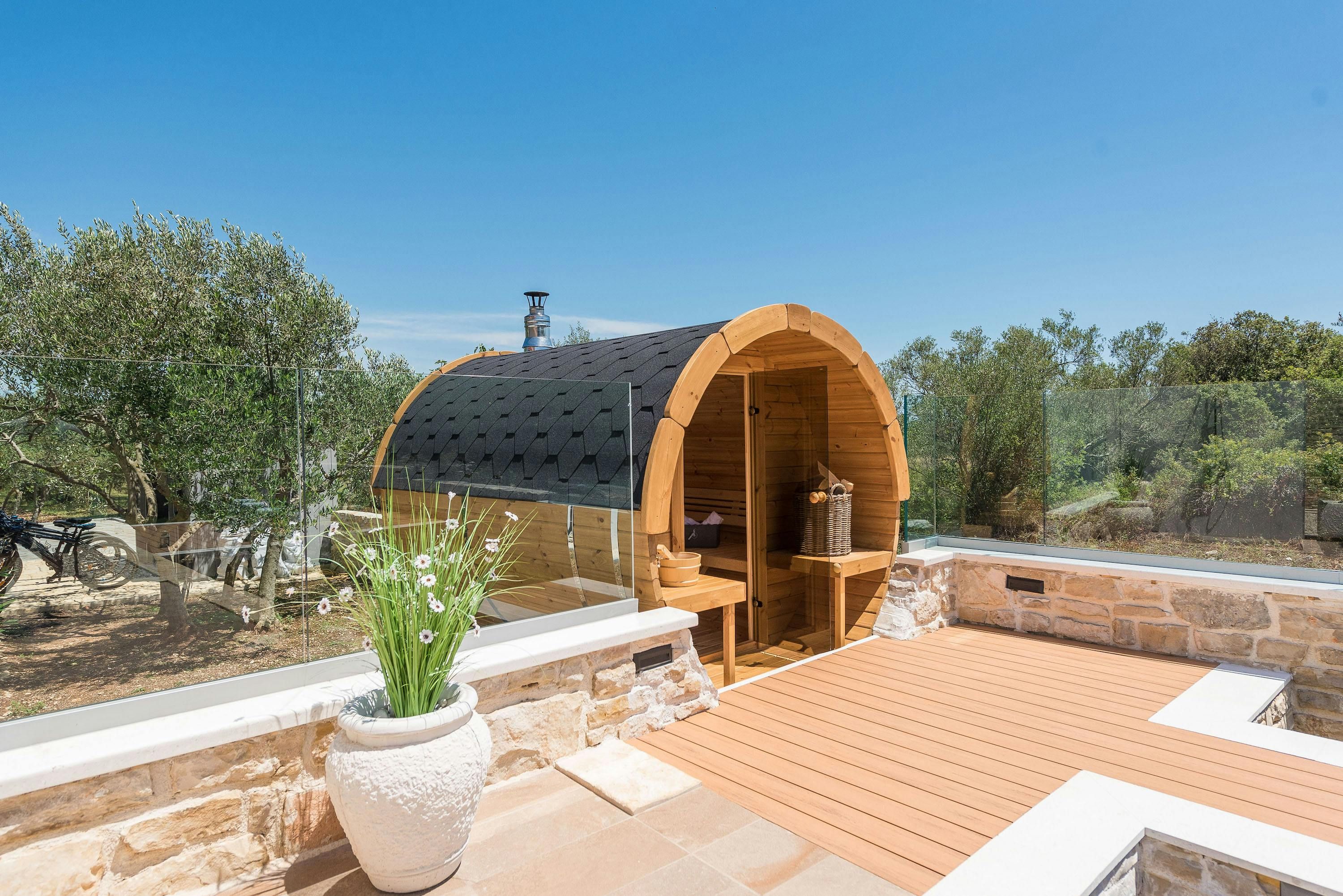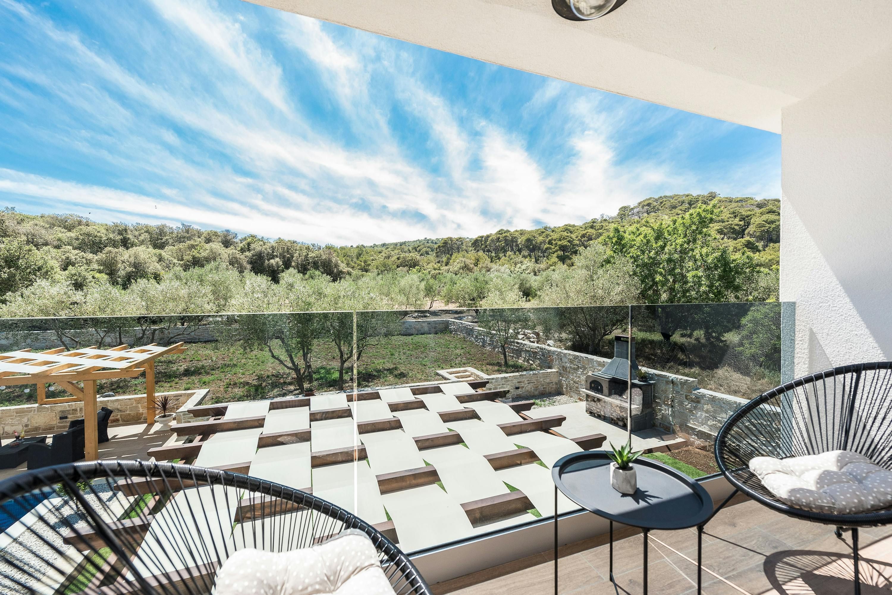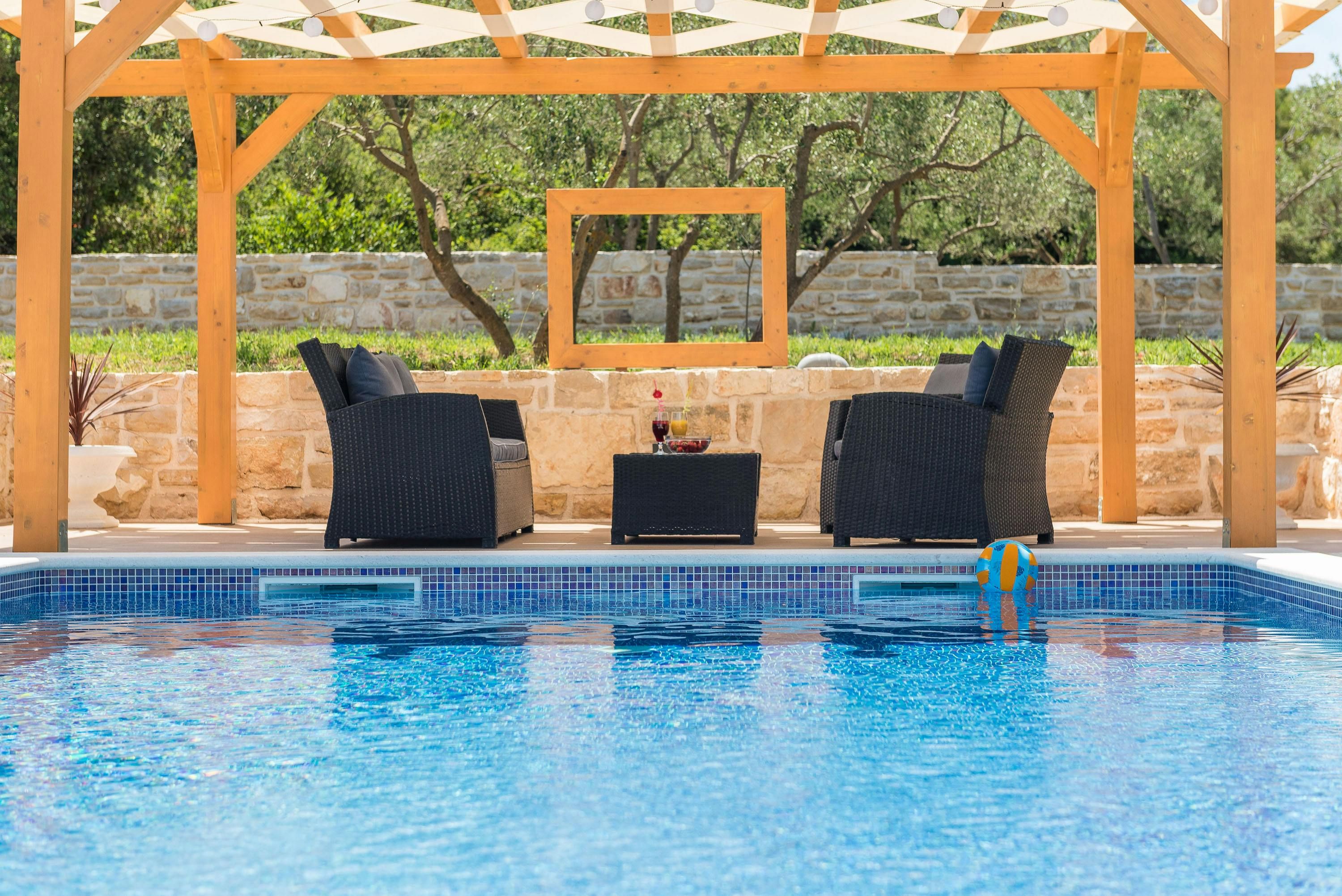 This beautiful finca sits by the sea on the North Dalmatia coast. You’ll be able to easily explore the nearby islands of Tkon and Ugljan by ferry, and will find Kornati National Park close by. Closer to home, Pasman beach is only 400 metres away – the toughest choice you’ll have to make each day is whether to swim in the sea or the private pool. The garden is idyllic, with plenty of shade, a spot for alfresco dining, and a sauna – stress melts away here. The villa is modern and oh-so stylish, with everything you’ll need for a relaxing break.
