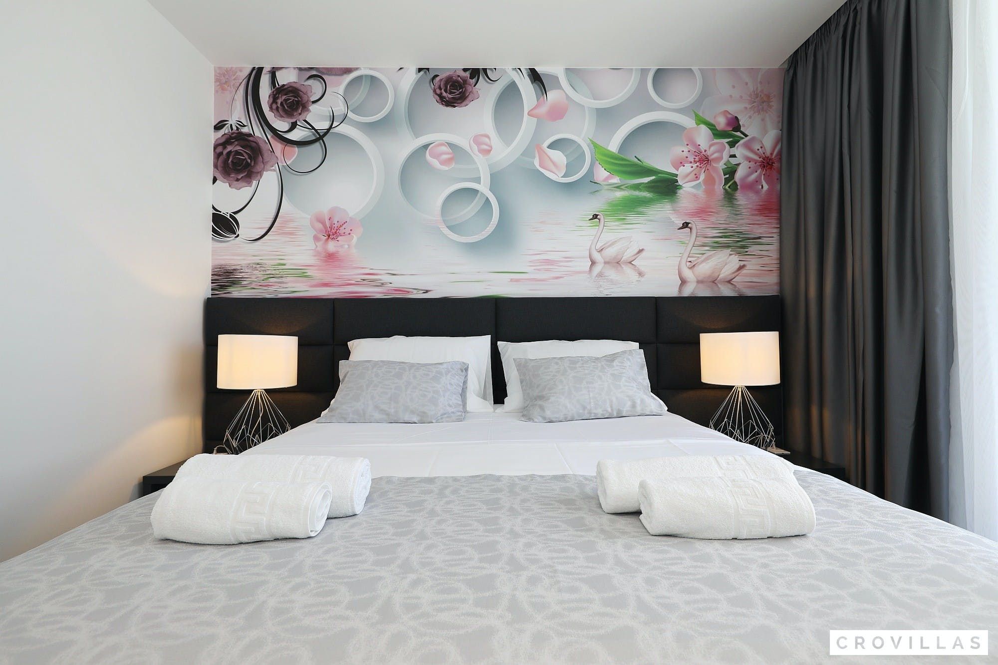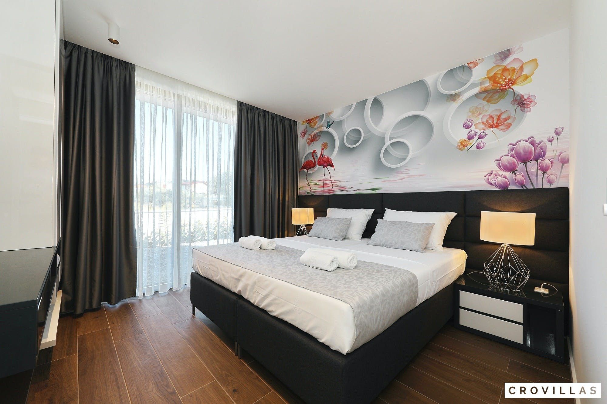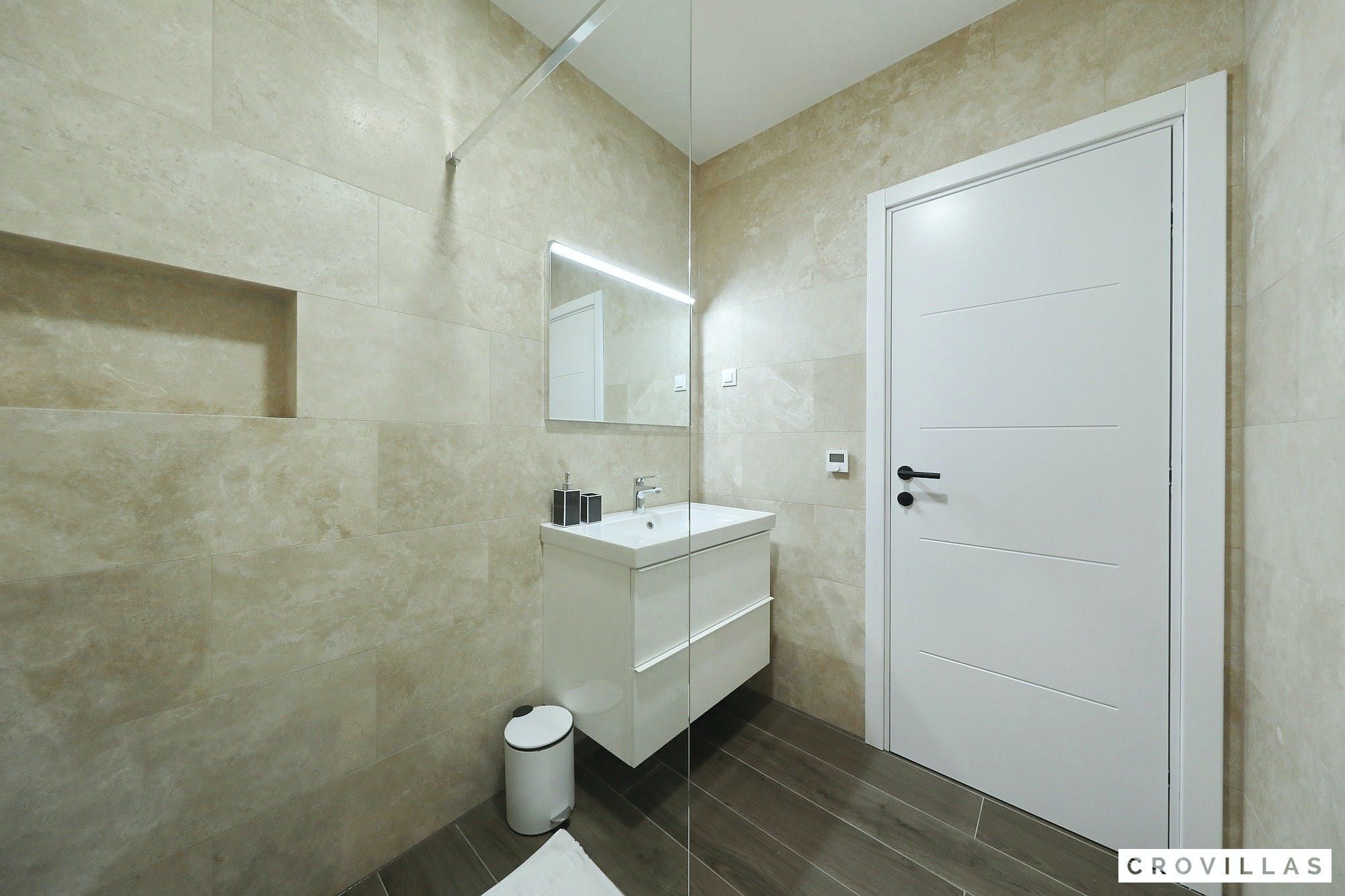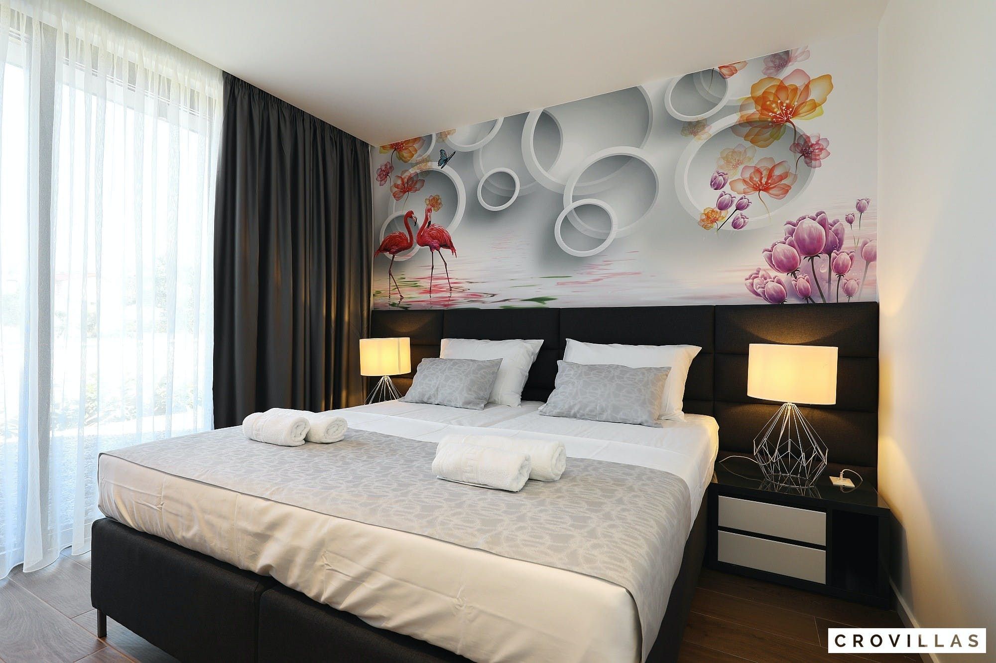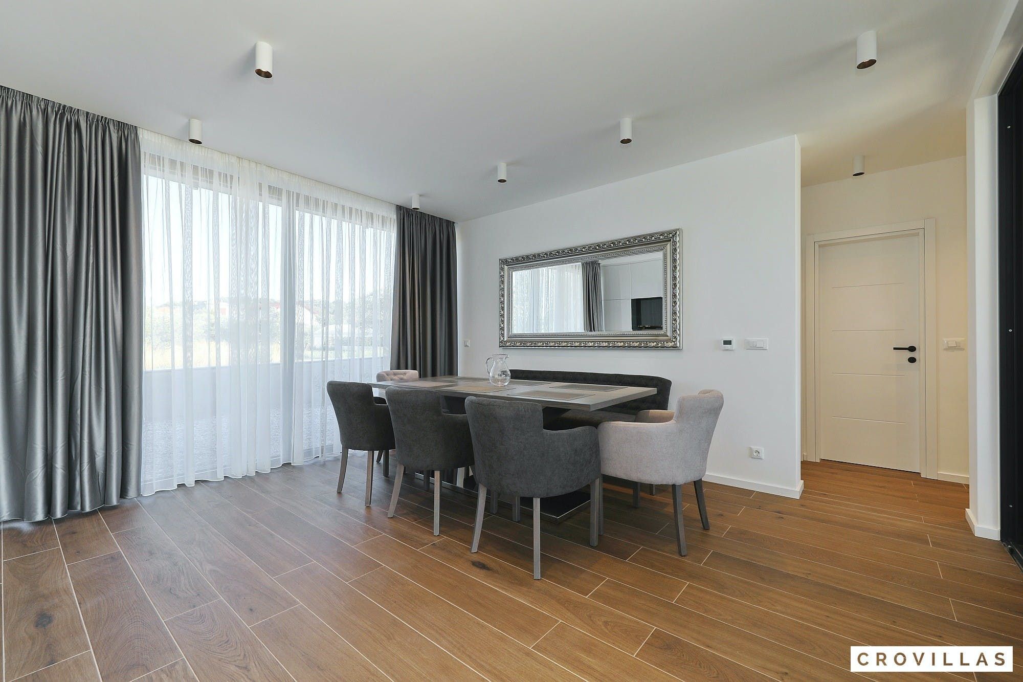 Experience a luxurious holiday in the newly built villa, located on the beautiful island of Pasman. The modern low-rise building is just 200m away from the beach, complete with a bar and bistro. The outdoor area offers a stylish seating area and a 7.60m pool for refreshing swims and lounging on the shallow platform. The roofed terrace features an outdoor living room with comfortable lounge furniture and a TV recessed into the wall for entertainment. The 90 sqm interior boasts a modern design with stylish furnishings, white, grey, and black harmonies, and a glass front exit to the outdoor living room. The kitchen area is fully equipped for self-catering days. Three bedrooms with double box-spring beds offer majestic rest periods, two of which share a bathroom while one has an en suite bathroom. Enjoy indoor temperatures all year round with air conditioning and underfloor heating, wireless internet, and satellite connection.