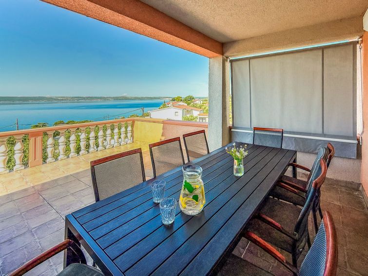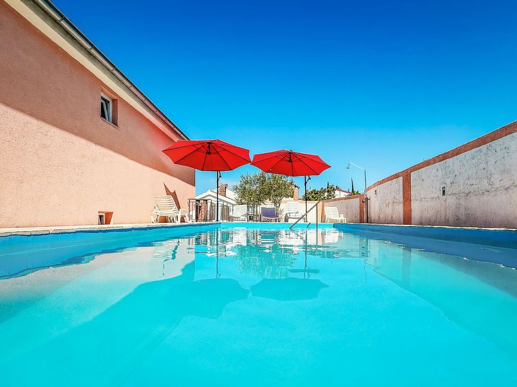 6-room house 200 m2 on 2 levels, south-west facing position. Living/dining room 25 m2 with satellite TV (flat screen), air conditioning. Exit to the terrace. 2 rooms, each room with 1 french bed (160 cm, length 200 cm). Open kitchen (oven, dishwasher, 4 ceramic glass hob hotplates, freezer, electric coffee machine).
