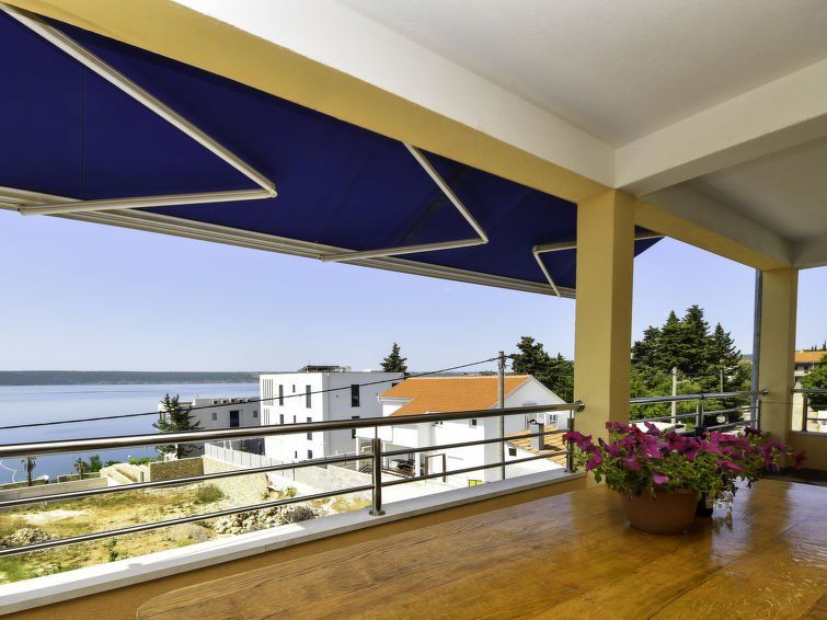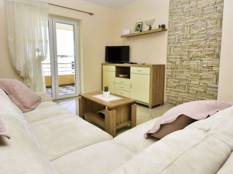 5-room apartment 130 m2 on 2nd floor. Living/dining room with satellite TV and air conditioning. Exit to the balcony. 1 room with 1 french bed (160 cm, length 200 cm). Exit to the balcony. 1 room with 2 beds and shower/WC. Exit to the balcony. 1 room with 2 beds. Exit to the balcony.