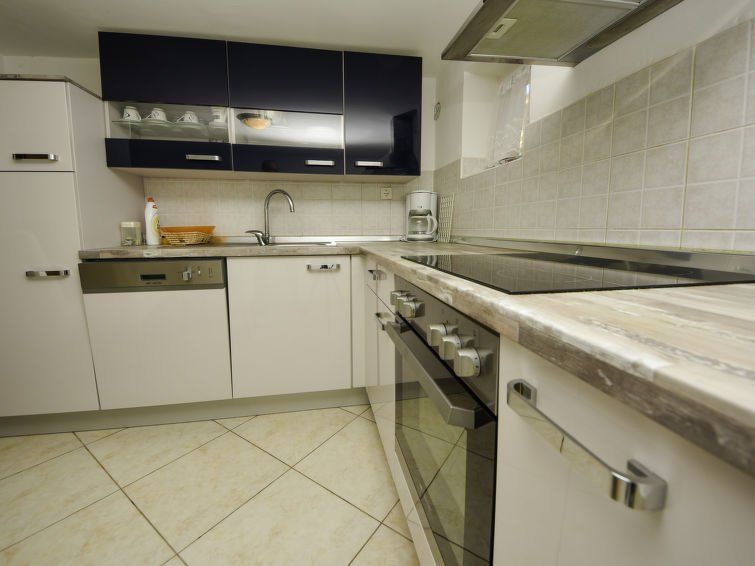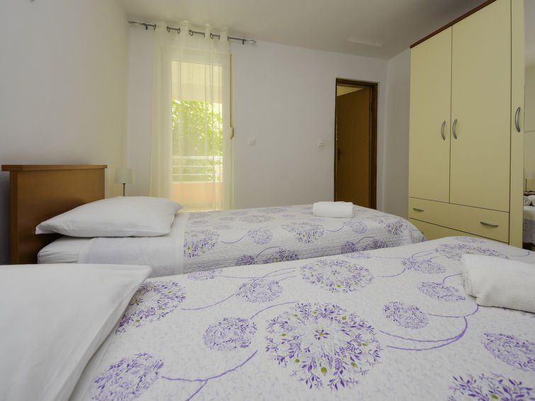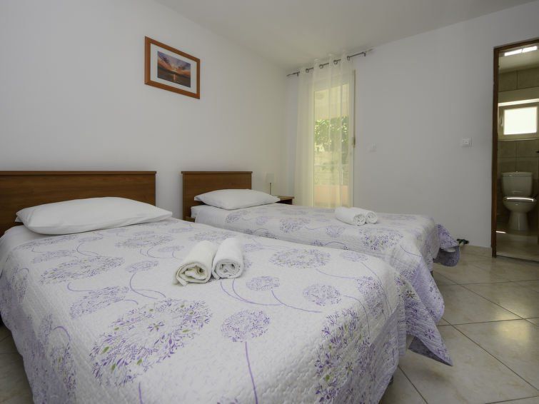 4-room apartment 105 m2 on 1st floor. Living/dining room, on 2 levels with dining table, satellite TV and air conditioning. 1 room with 1 french bed (160 cm, length 200 cm), shower/WC. 1 room with 2 beds and shower/WC. Exit to the balcony. 1 room with 1 french bed (160 cm, length 200 cm).