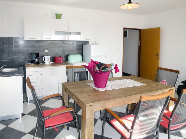 Complete apartment with washing machine. The area is doable for trips to eg Plitvice lakes and Zadar. Beaches for our dog are hard to find. That was a minus. A very good restaurant in the town itself on the water.