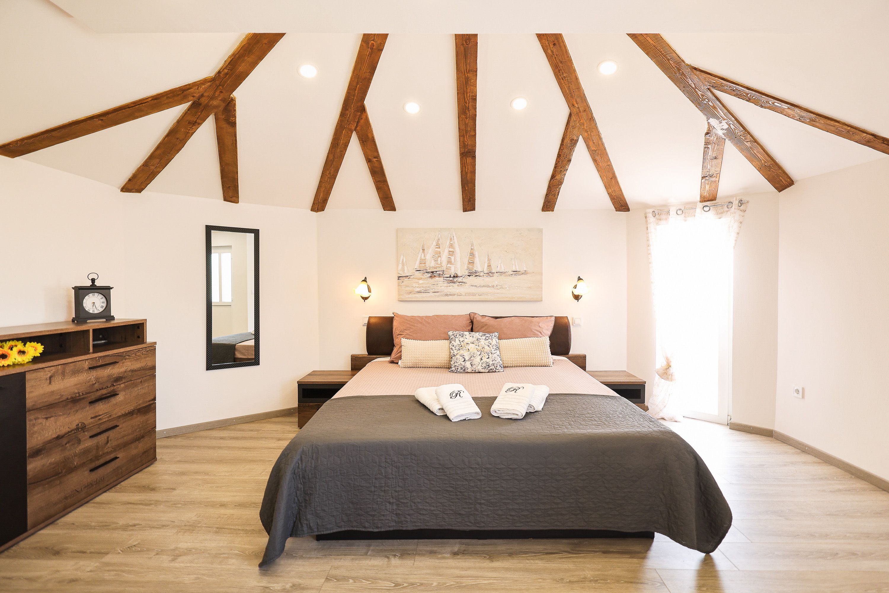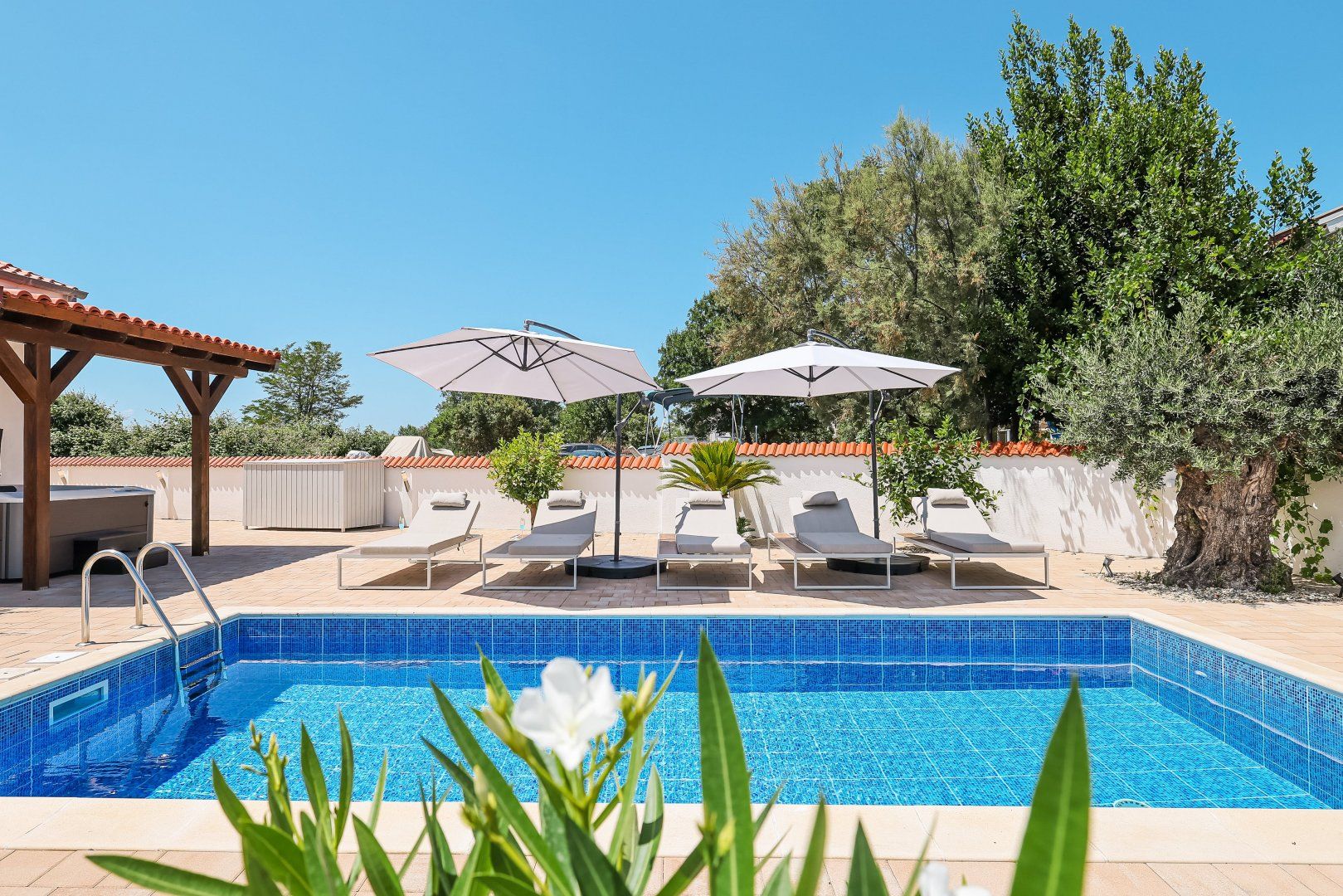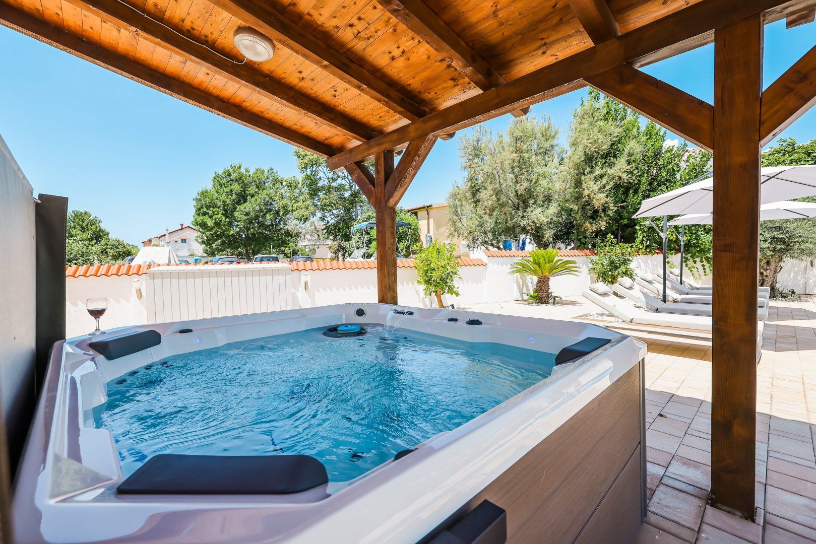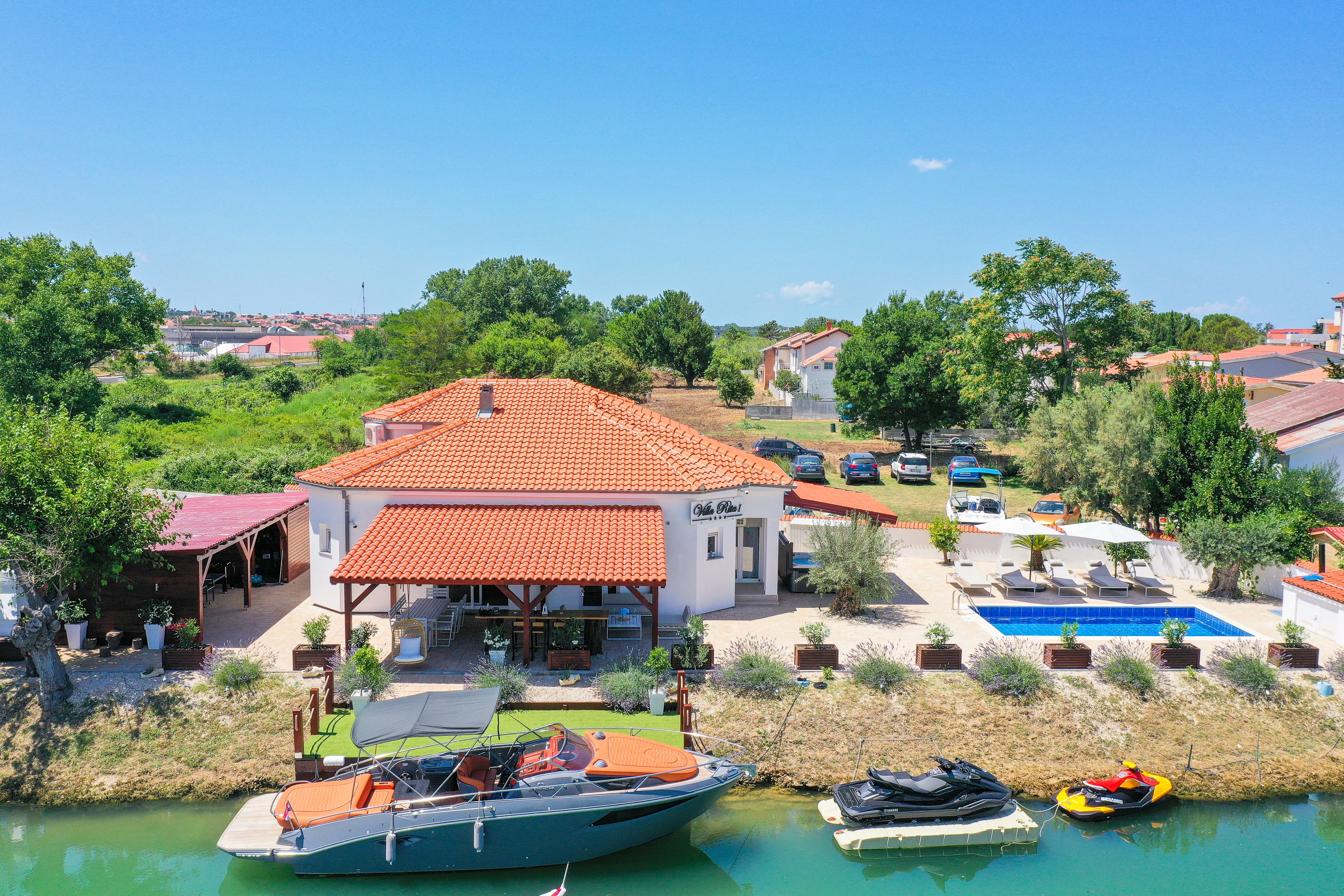 This Dalmatian villa boasts a remarkable setting by the sea canal in Nin, one of Croatia’s oldest cities. You’ll have access to the open sea, which you can explore using the paddleboards and sea kayaks provided by your host. When you’re not out on the water, you’ll likely spend most of your time swimming in the private pool, soaking in the hot tub, and enjoying the view from the terrace. There’s also table tennis, table football, darts and a Nintendo Switch, so children will have plenty to keep them entertained.