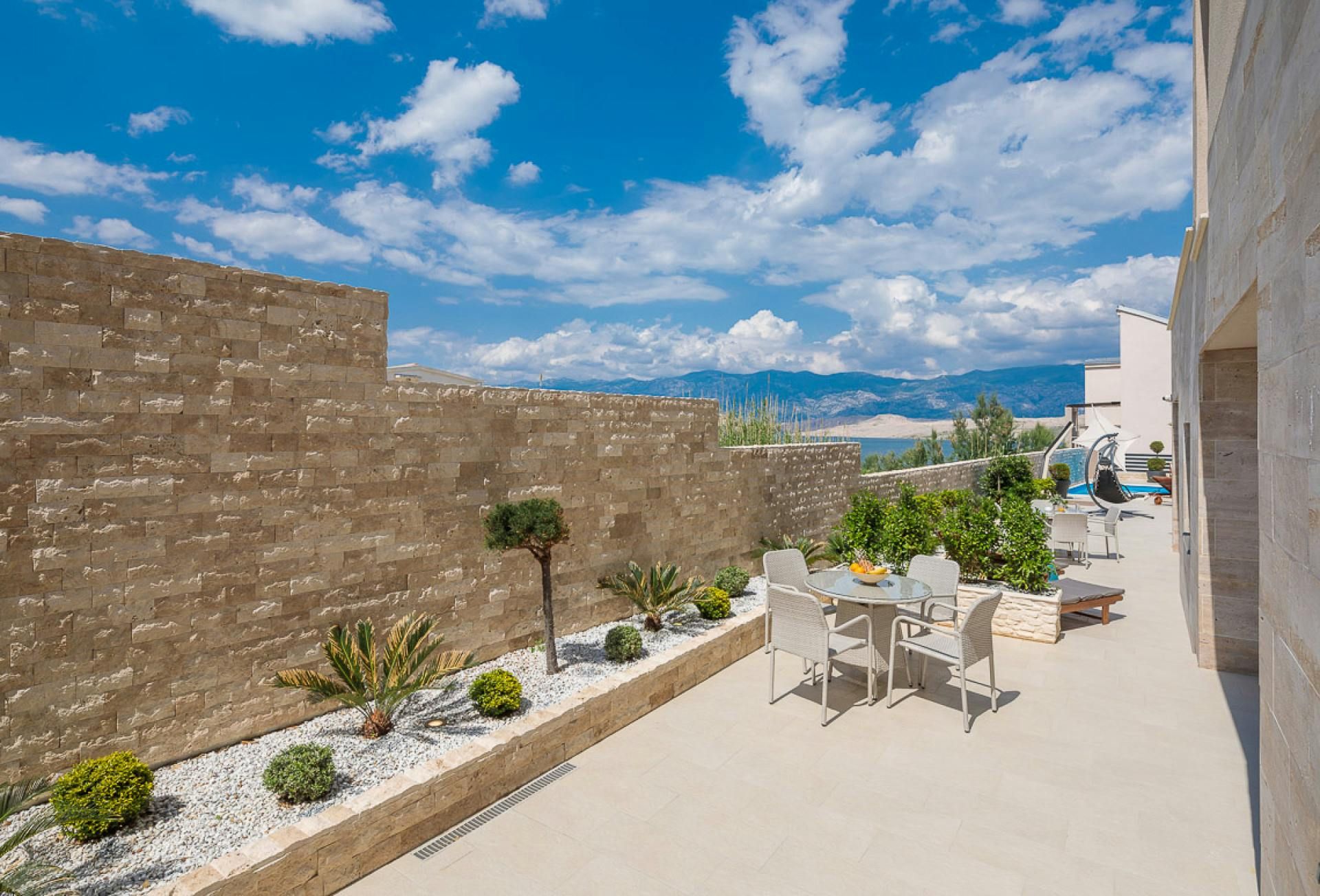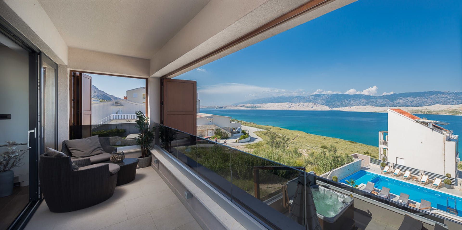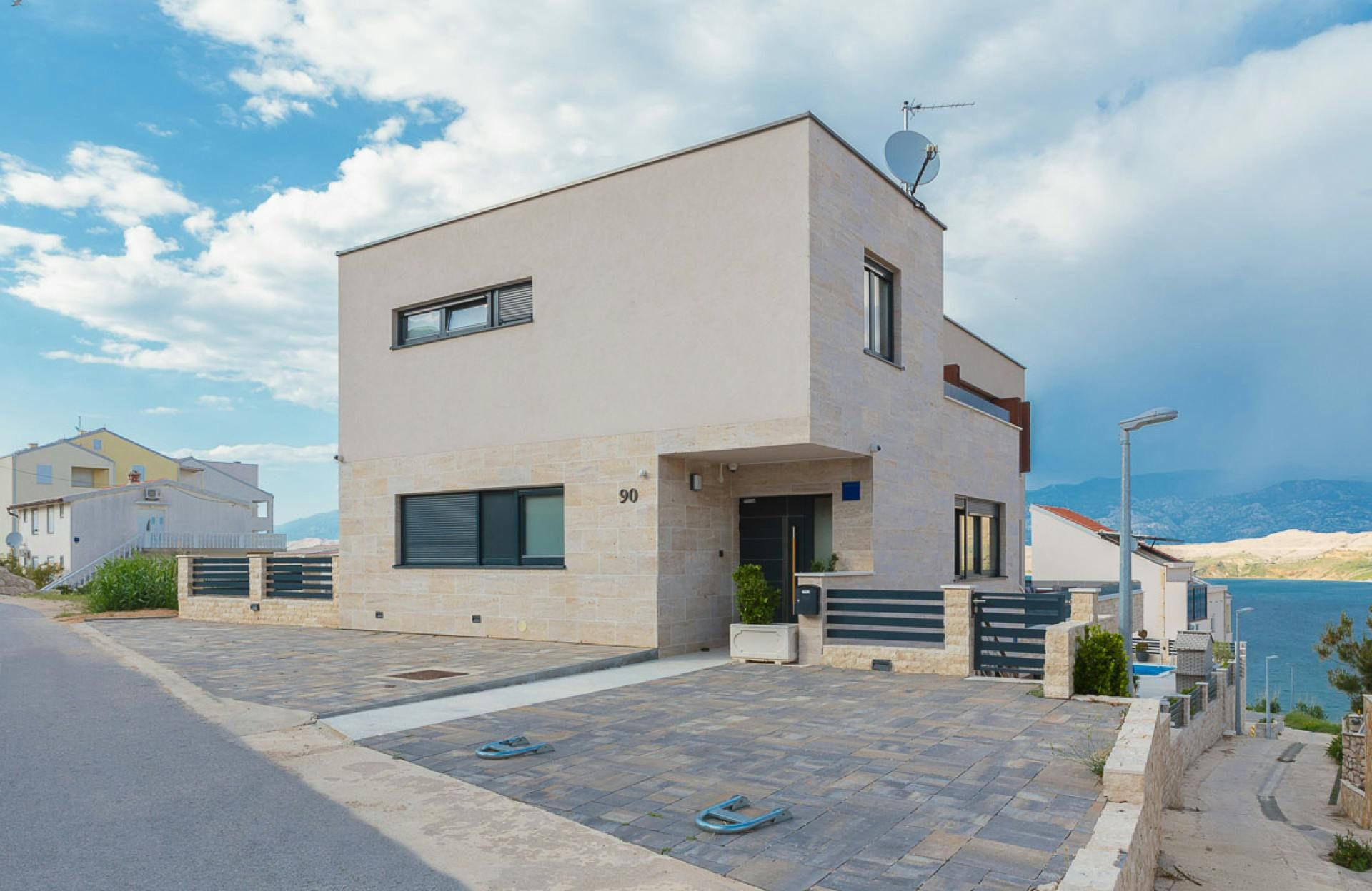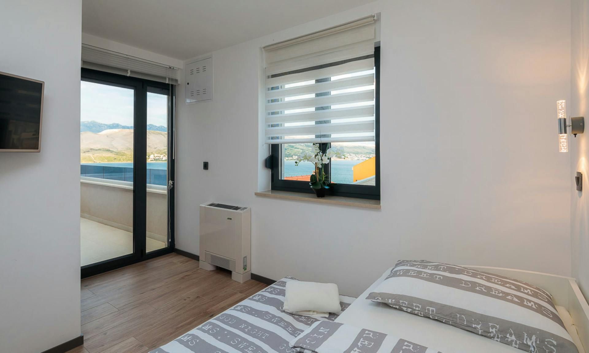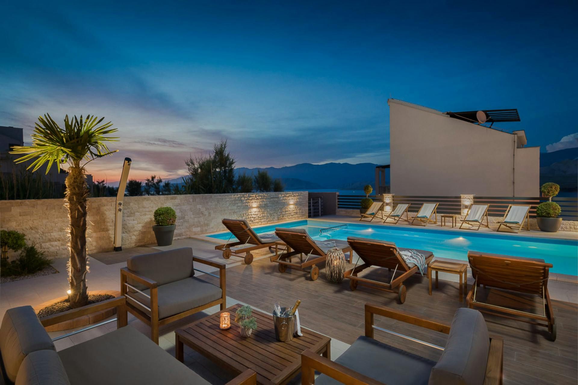 Just moments from the beach in Pag, this villa will wow you with its views. Whether you're swimming in the private pool, soaking in the hot tub or relaxing on the terrace or balcony, the island's blue waters and famous moonlike landscape stretch out in front of you. Spread across three floors, including three separate apartments, it’s well-suited for group stays. A pool slide and playground make it family-friendly, while an indoor sauna adds extra relaxation. You're only a one-minute stroll to the beach, while Pag's local restaurants, bars and shops are less than ten minutes away in the car.