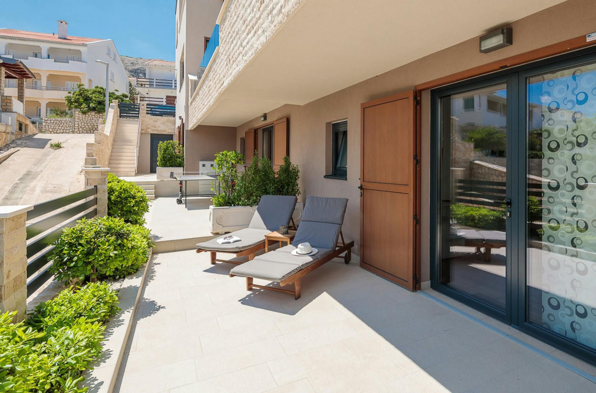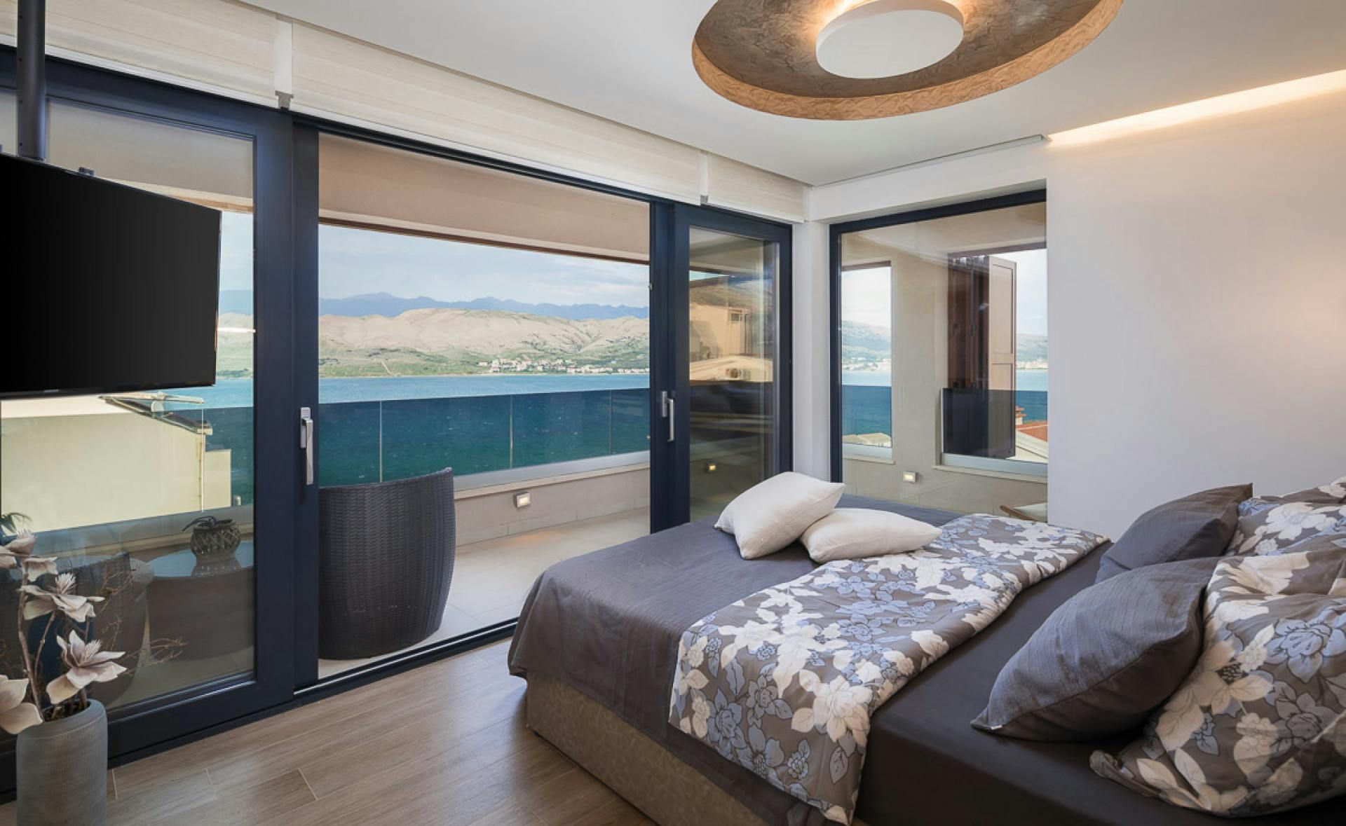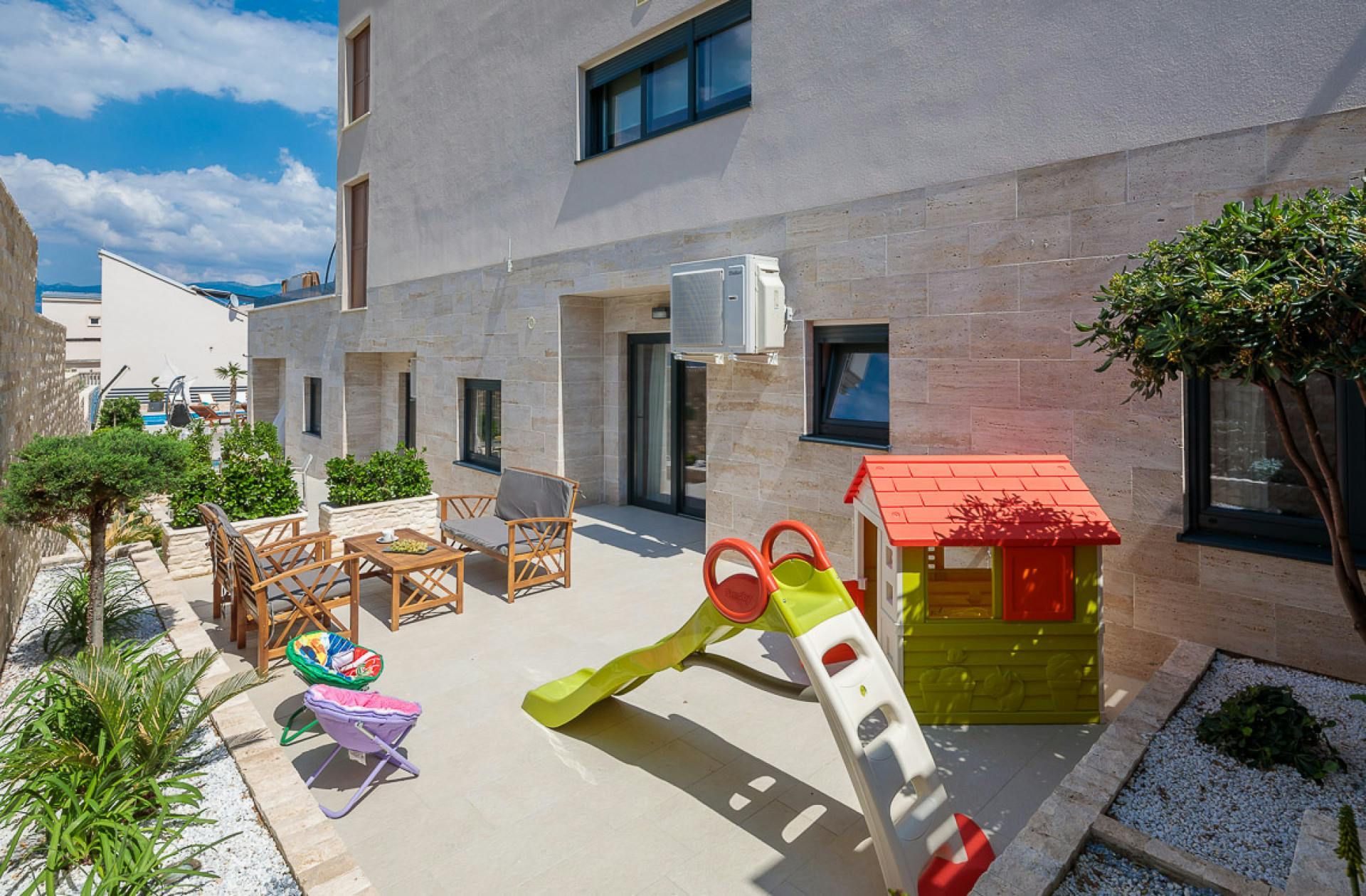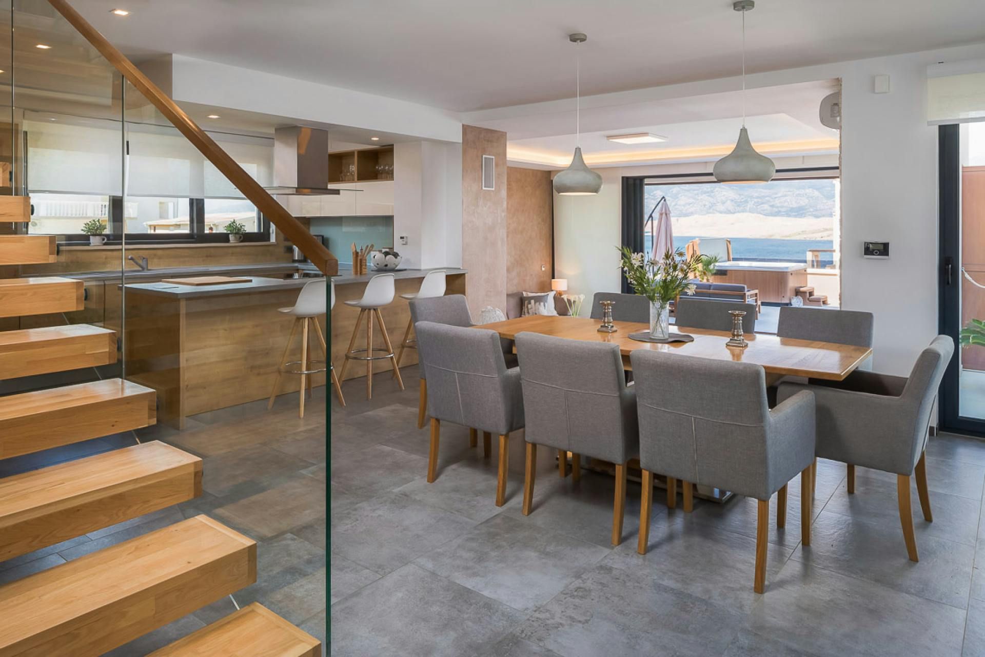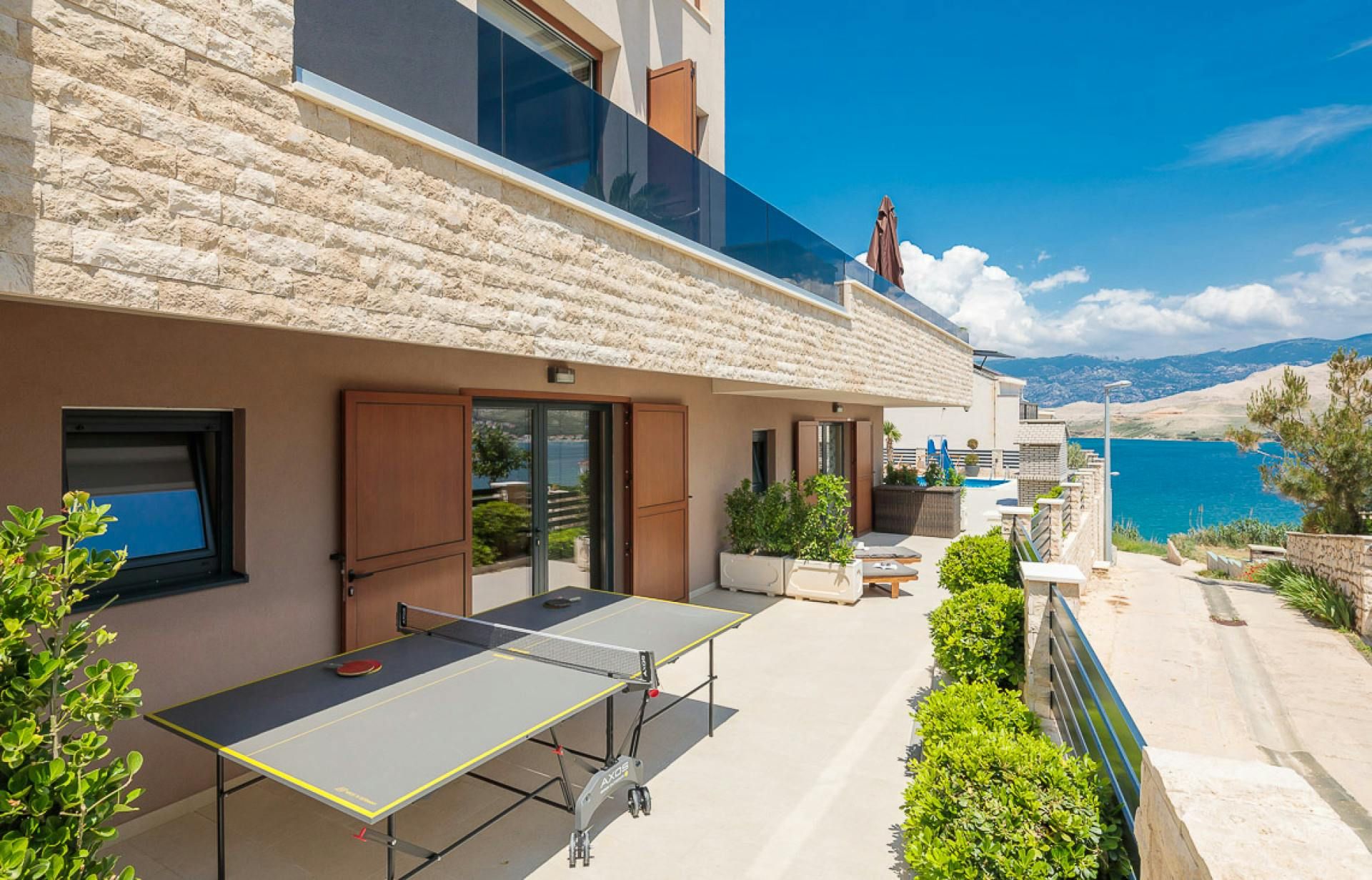 Just moments from the beach in Pag, this villa will wow you with its views. Whether you're swimming in the private pool, soaking in the hot tub or relaxing on the terrace or balcony, the island's blue waters and famous moonlike landscape stretch out in front of you. Spread across three floors, including three separate apartments, it’s well-suited for group stays. A pool slide and playground make it family-friendly, while an indoor sauna adds extra relaxation. You're only a one-minute stroll to the beach, while Pag's local restaurants, bars and shops are less than ten minutes away in the car.