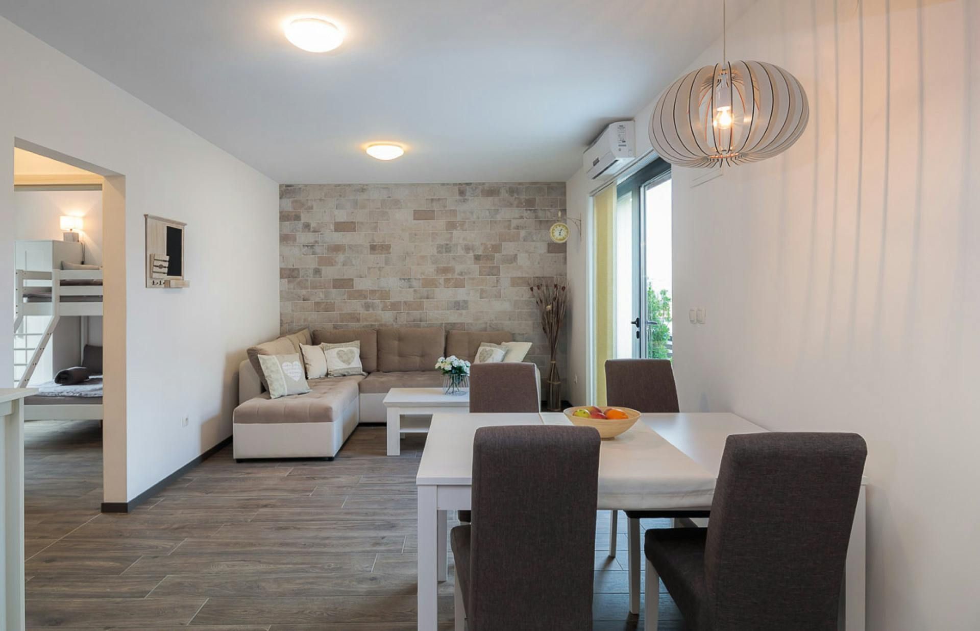 *The villa has three bedrooms in the main house, plus three separate apartments. Two apartments have one bedroom, while the third has two bedrooms – one with a bunk bed that sleeps two on the bottom and one on top. Each apartment also has its own lounge, kitchen, dining area, and bathrooms.