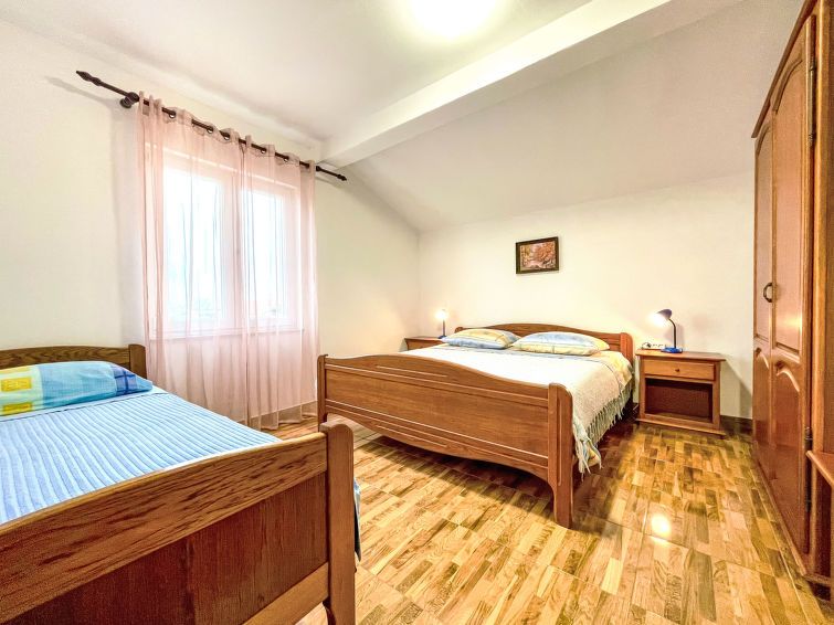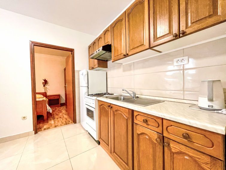 3-room apartment 50 m2 on 2nd floor, south-west facing position. Living/dining room 25 m2 with satellite TV and air conditioning. 1 room with 1 french bed (168 cm, length 200 cm). 1 room with 1 french bed (160 cm, length 200 cm). Open kitchen (2 hot plates, oven, Gas stove, 2 gas rings, kettle, freezer).