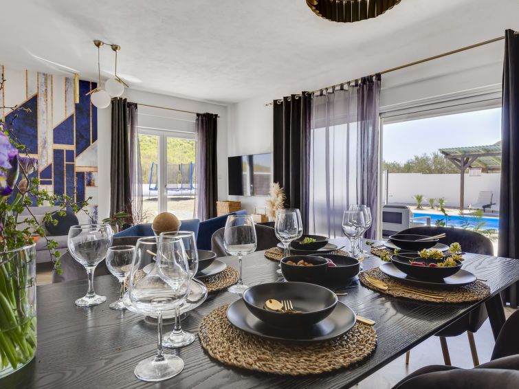 5-room villa 126 m2 on 2 levels, south-west facing position. Luxurious furnishings: living/dining room 30 m2 with satellite TV (flat screen), air conditioning. Exit to the terrace. 1 room with 1 french bed (160 cm, length 200 cm), shower/WC and air conditioning. Exit to the terrace.