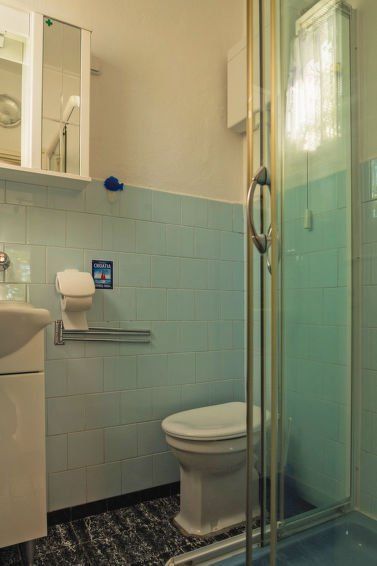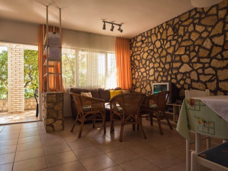 3-room house 40 m2, on the ground floor. Practical and cosy furnishings: living/dining room with satellite TV. Exit to the terrace. 1 room with 1 french bed (160 cm, length 200 cm). 1 room with 2 beds (90 cm, length 200 cm). Open kitchen (4 hot plates, oven). Shower/WC. No heating option.