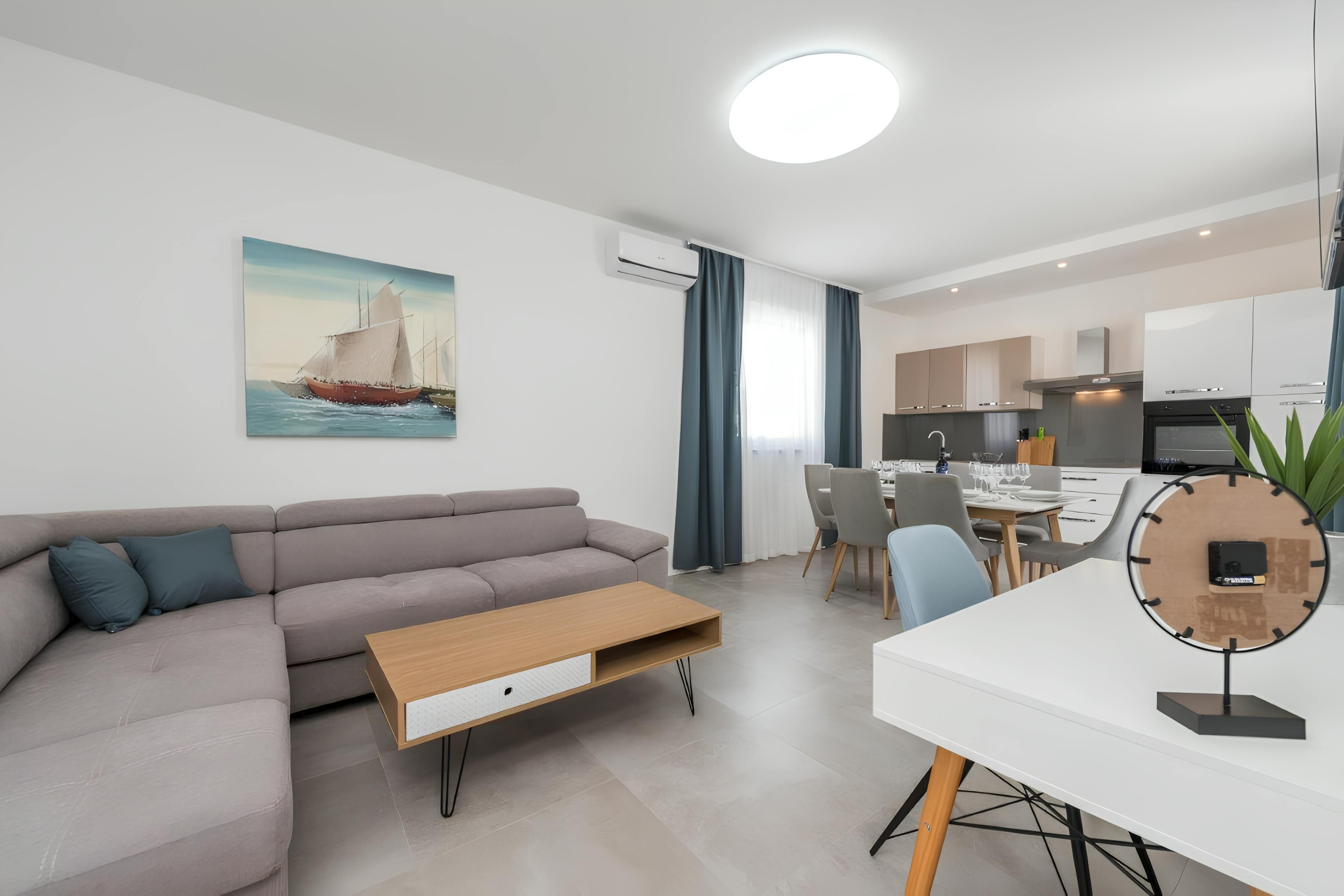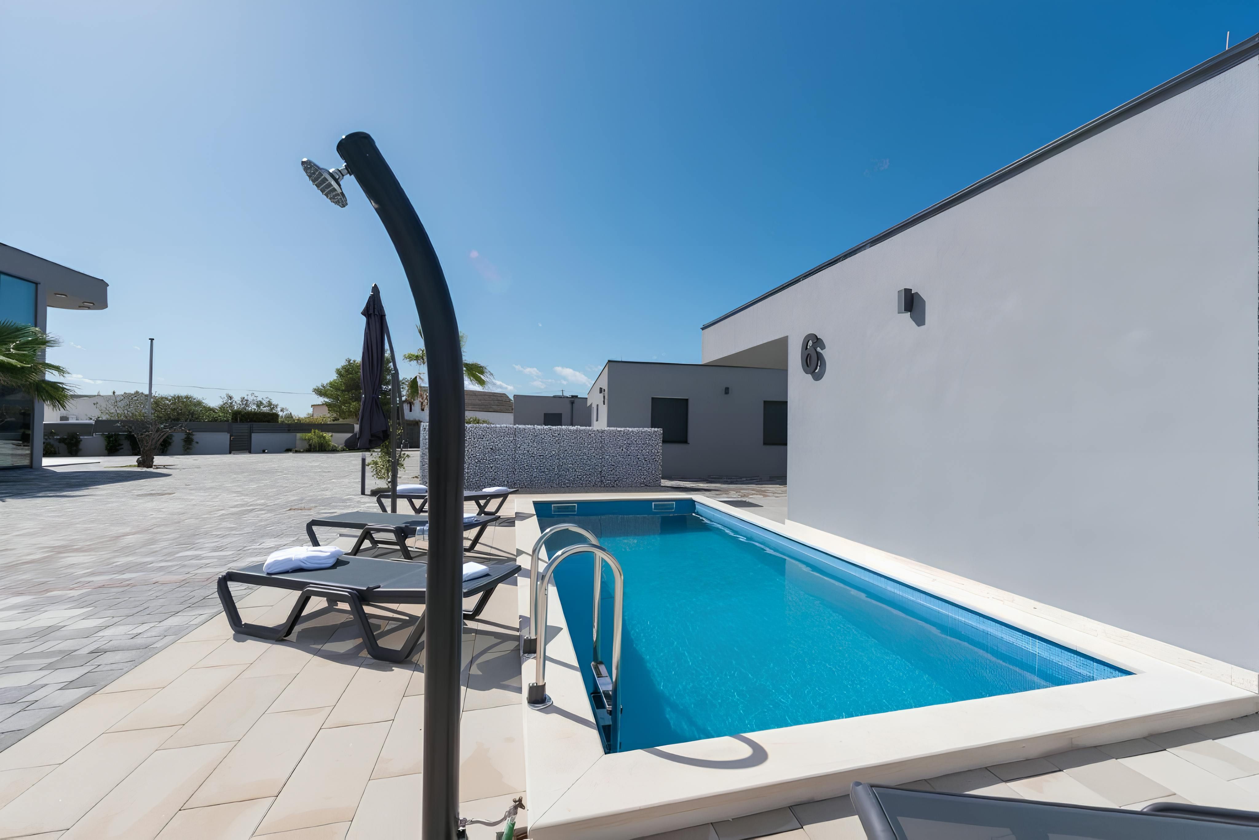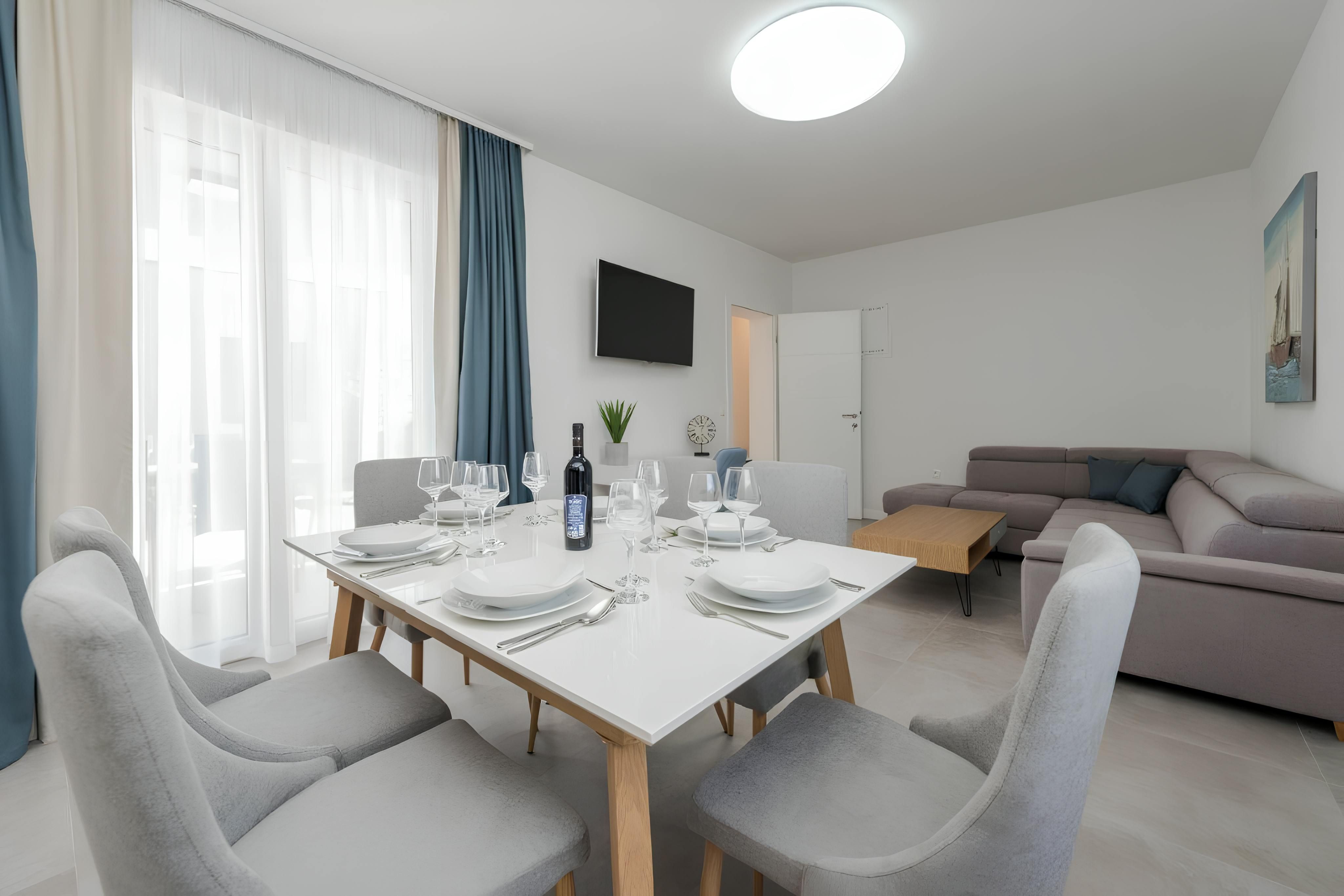 This modern villa in a resort complex gives you the best of both worlds – the privacy of your own home with the fun of resort amenities. On site, you'll find shared basketball courts, a gym, and a wellness area. In the villa itself, you can dine at the indoor dining table or fire up the barbecue and enjoy an alfresco dinner on the terrace. There's also a small pool out here, so you can cool off from the Croatian sun. On the island of Vir, you'll find an array of restaurants, sandy beaches, and historical sites like Kastelina Castle, all a short walk away. Or, head to Zadar for a full day out – it's a thirty-minute drive away.