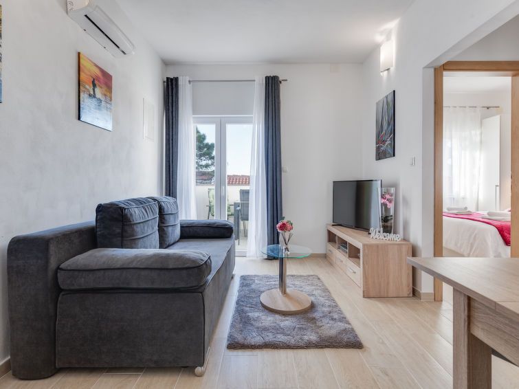 3-room apartment 41 m2 on 1st floor. Living/dining room with 1 sofabed (145 cm, length 200 cm), satellite TV (flat screen), air conditioning. Exit to the balcony. 2 rooms, each room with 1 double bed (2 x 80 cm, length 200 cm). Open kitchen (2 ceramic glass hob hotplates, toaster, kettle, electric coffee machine).