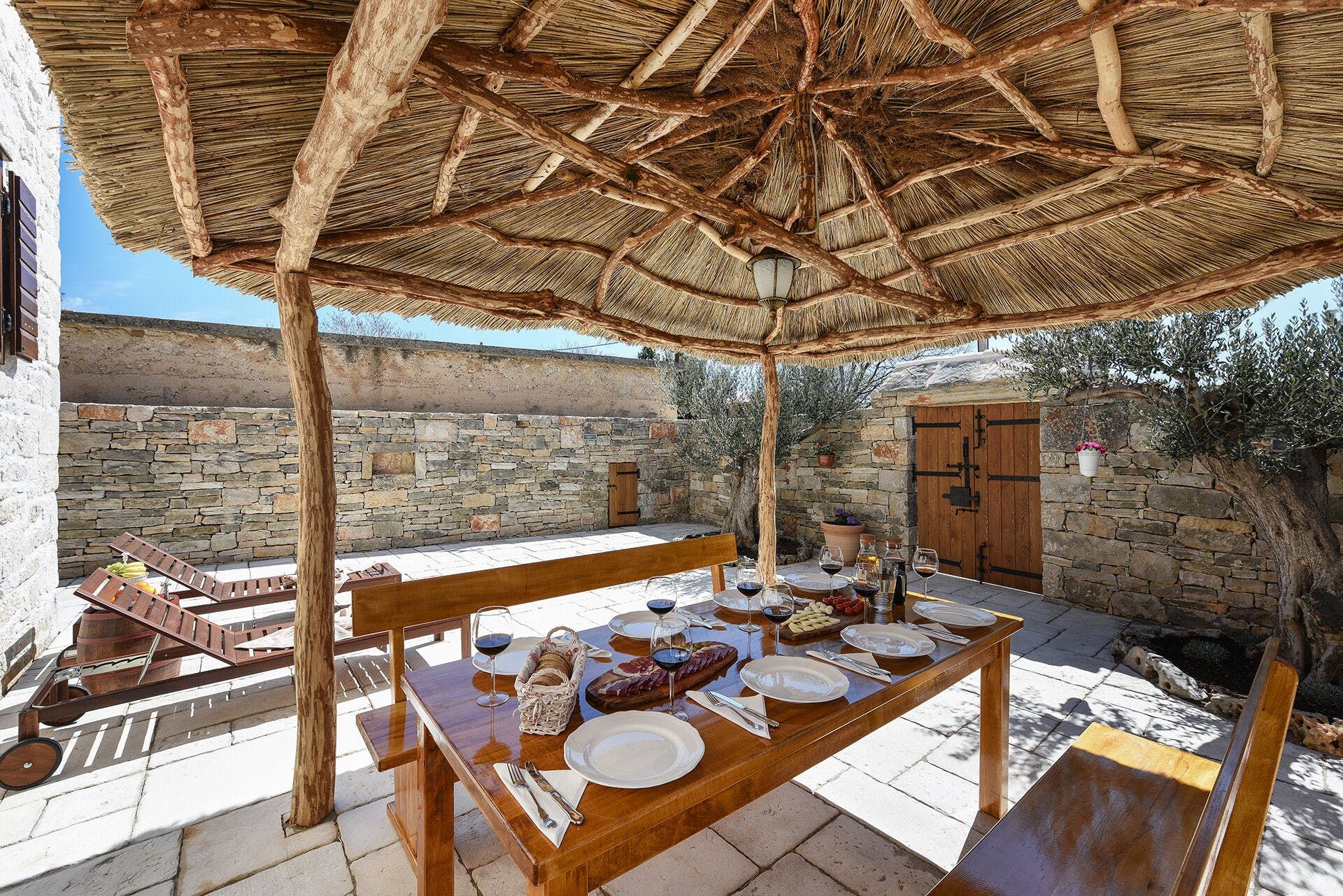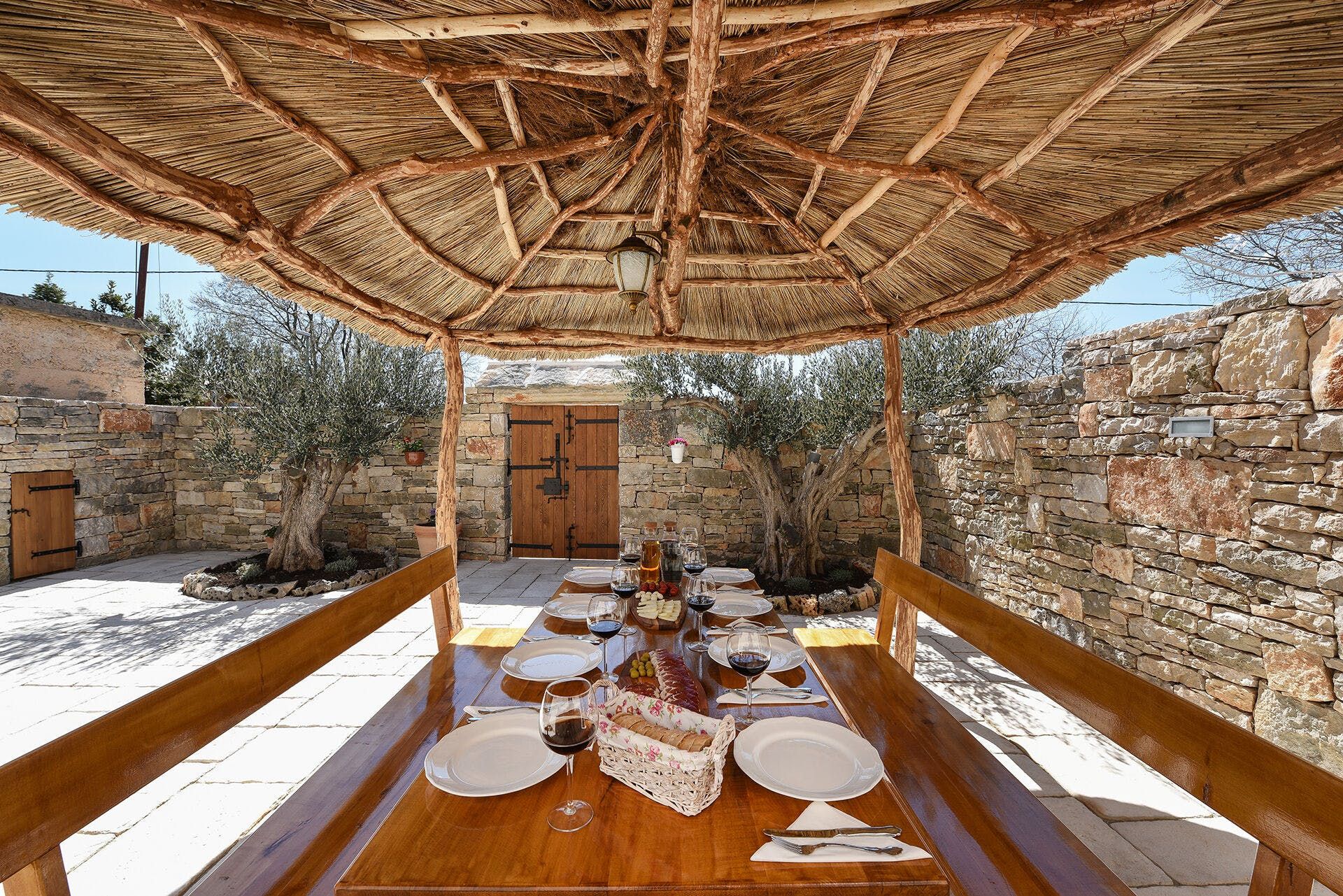This classic stone villa is a dreamy spot for a Croatian vacation. Bring a platter of fresh fruit outside for breakfast before changing straight into your bathing suit for sun-drenched afternoons by the pool. After a refreshing dip, challenge a friend to a game of ping pong – and maybe a rematch depending on the outcome. You could spend practically the whole day out here on the terrace, throwing dinner on the barbecue as the sun goes down, but inside the home, you’ll find a charming space equally deserving of your attention. Rustic stone walls, exposed wooden beams and decorative barrels lend the home authentic character and a cosy feel. We love the charming checkered bedspreads in each of the bedrooms and the green shutters and doors that tie the rooms together. Location-wise, you’ll be just a ten-minute drive from the stunning Vrana Lake, the largest natural lake in Croatia. The surrounding Vrana Lake Nature Park has plenty of walking trails, bike paths, sport fishing and an impressive ornithological reserve. Make your way to the lookout point and enjoy a view of the coast and surrounding islands. Plus, the gorgeous Pine Beach is just a ten-minute drive away.