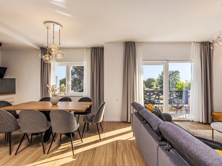 5-room house 250 m2 on 2 levels, south-west facing position. Living/dining room 37 m2 with satellite TV (flat screen), air conditioning. Exit to the terrace. 2 rooms, each room with 1 french bed (160 cm, length 200 cm), satellite TV and air conditioning. Open kitchen (oven, dishwasher, 4 ceramic glass hob hotplates, microwave, freezer, electric coffee machine).