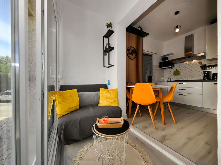 "DaLaPaDo", 2-room apartment 28 m2, on the upper ground floor. Modern furnishings: living/dining room with air conditioning. 1 room with 1 french bed (160 cm, length 200 cm). Open kitchen (oven, dishwasher, 4 ceramic glass hob hotplates, toaster, kettle, microwave, freezer, electric coffee machine).