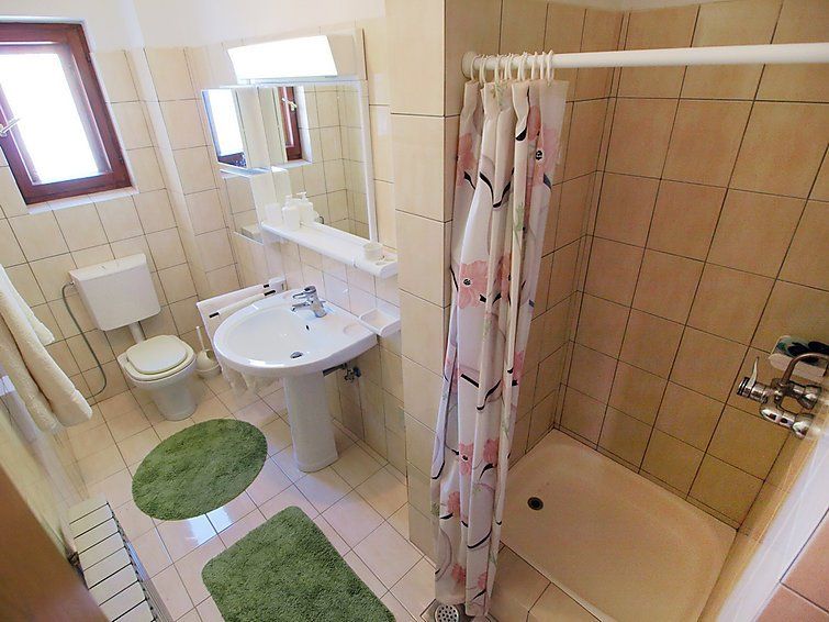 4-room apartment 100 m2 on 2nd floor, south-west facing position. Living/dining room with satellite TV (flat screen), air conditioning. Exit to the terrace. 2 rooms, each room with 1 french bed (180 cm, length 200 cm), shower/WC and fan. 1 room with 1 french bed (180 cm, length 200 cm), shower/WC and fan.