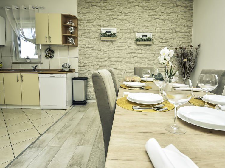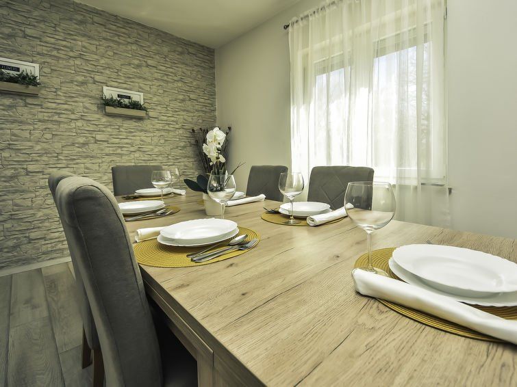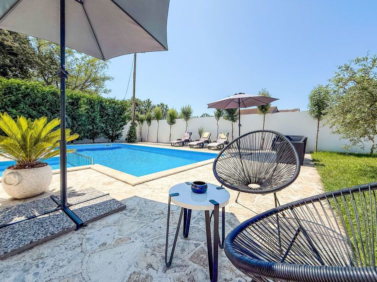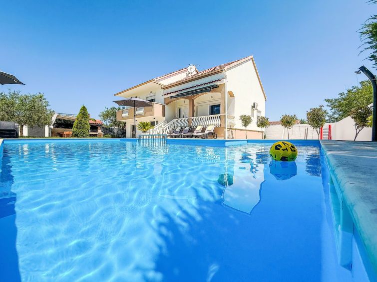 We were 7 adults and 2 children and had enough space. Well equipped, good pool, very good barbecue area. The landlords come every morning to look after the pool, unfortunately sometimes with the lawn mowing. They don't speak German and only a little English, but otherwise very friendly and accommodating. The location of the house on a busy road is a major negative. Maybe OK for youth groups, but the recreational value is zero. Towels and bed linen are clean, some are stained.