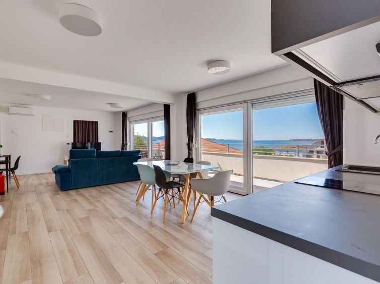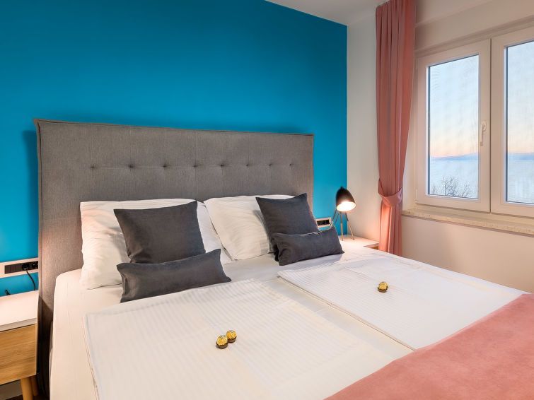 "Bura", 3-room apartment 69 m2 on 2nd floor. Tasteful furnishings: living/dining room with 1 double sofabed (120 cm, length 200 cm), satellite TV (flat screen), air conditioning. Exit to the terrace. 2 rooms, each room with 1 french bed (180 cm, length 200 cm). Open kitchen (dishwasher, 2 ceramic glass hob hotplates, kettle, microwave, freezer).