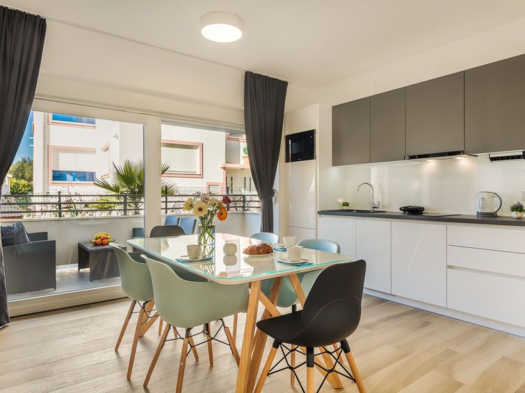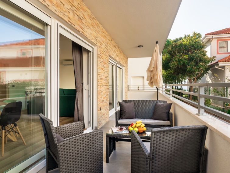 "Picigin", 3-room apartment 69 m2, on the ground floor. Tasteful furnishings: living/dining room with 1 double sofabed (120 cm, length 200 cm), satellite TV (flat screen), air conditioning. Exit to the terrace. 2 rooms, each room with 1 french bed (180 cm, length 200 cm). Open kitchen (dishwasher, 2 ceramic glass hob hotplates, kettle, microwave, freezer).