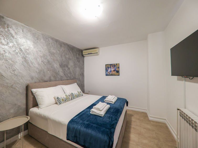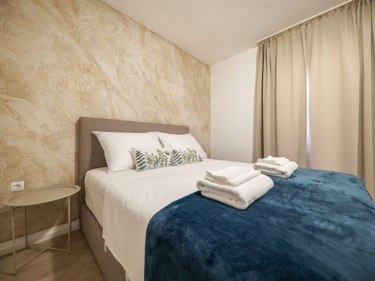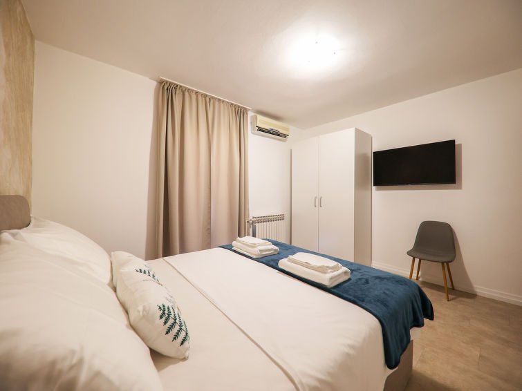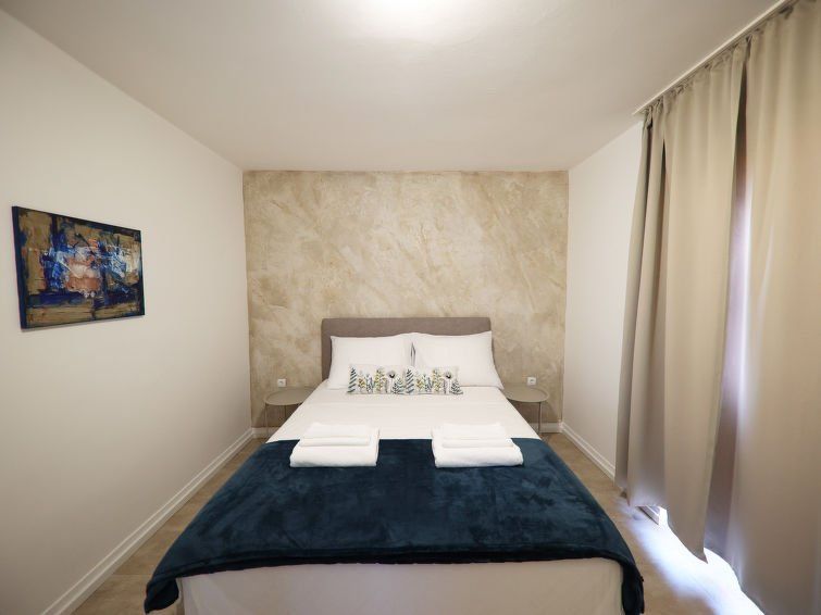 2-room apartment 46 m2 on 1st floor. Modern furnishings: living/dining room 20 m2. Exit to the balcony. 2 rooms, each room with 1 double bed (2 x 80 cm, length 200 cm), satellite TV and air conditioning. Open kitchen (2 induction hot plates, freezer) with dining table, satellite TV and air conditioning.
