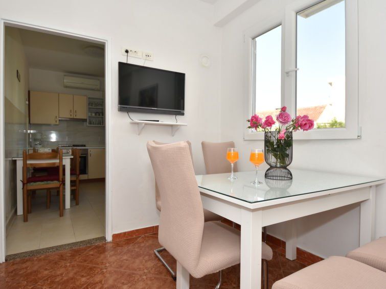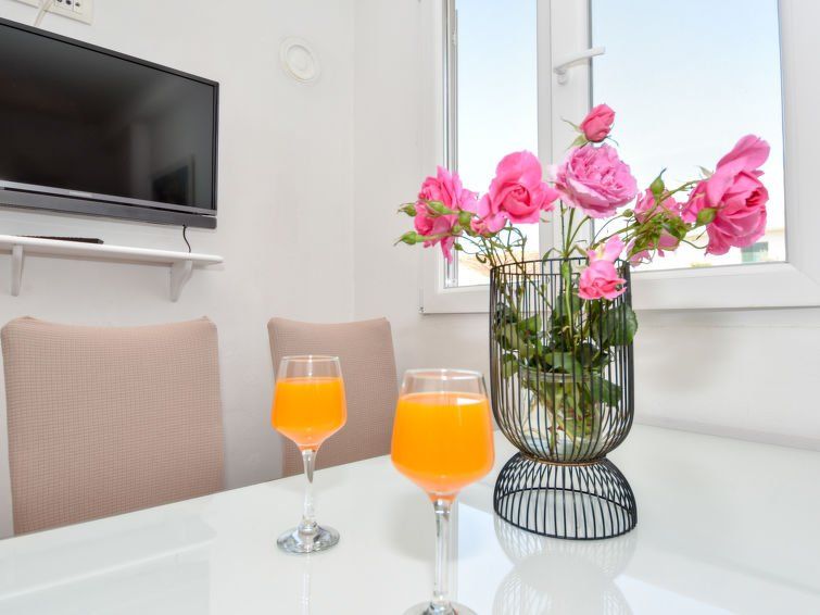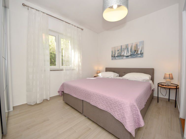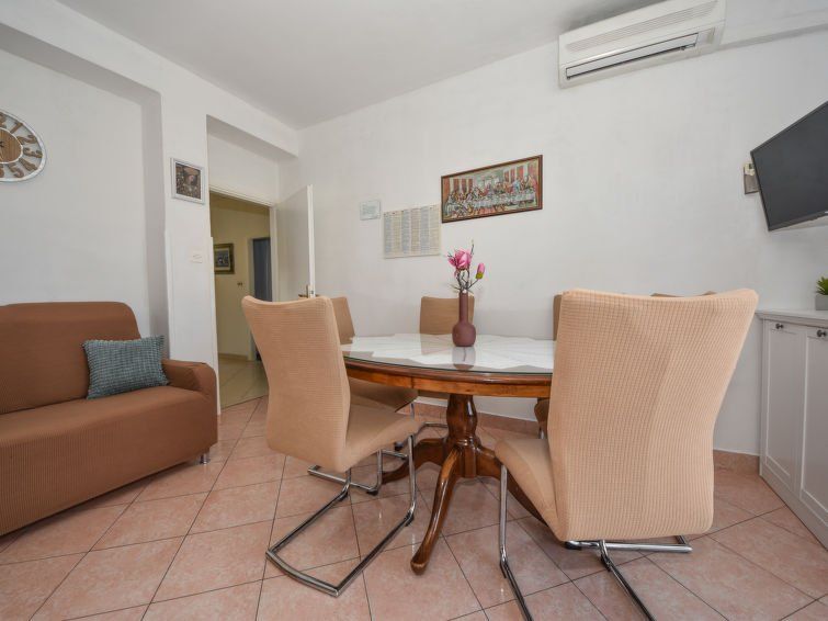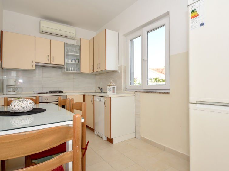 8-room house 160 m2 on 2 levels, south-west facing position. Living/dining room 24 m2 with satellite TV (flat screen). Exit to the terrace. 1 room with 1 french bed (180 cm, length 200 cm), shower/WC. 2 rooms, each room with 2 beds (90 cm, length 200 cm). Open kitchen (2 hot plates, oven, dishwasher, 2 gas rings, freezer) with air conditioning.