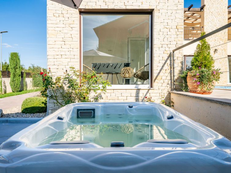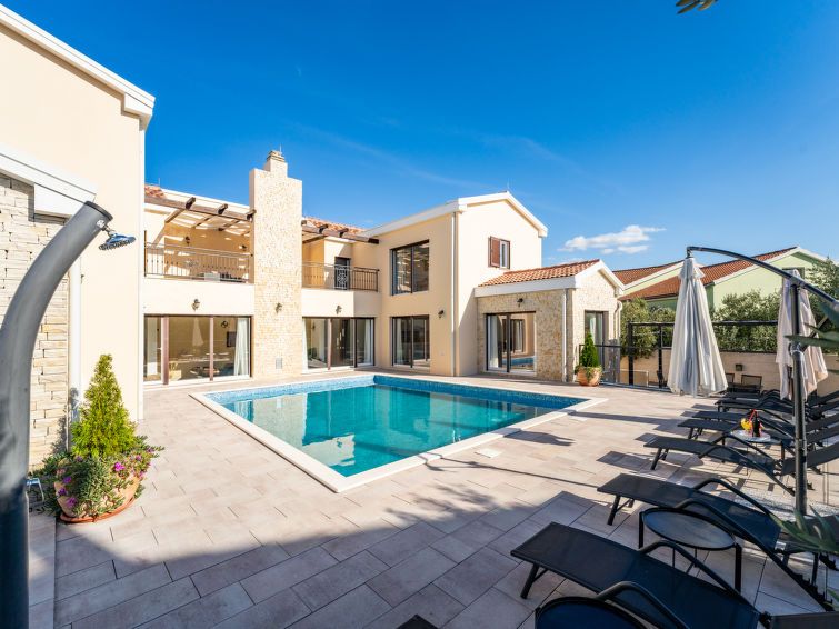 6-room villa 280 m2 on 2 levels. Living/dining room 50 m2 with satellite TV (flat screen), air conditioning. Exit to the terrace. Billiard room 15 m2. Open kitchen (oven, dishwasher, 4 ceramic glass hob hotplates, freezer, electric coffee machine). 2 showers/WC. No heating option.