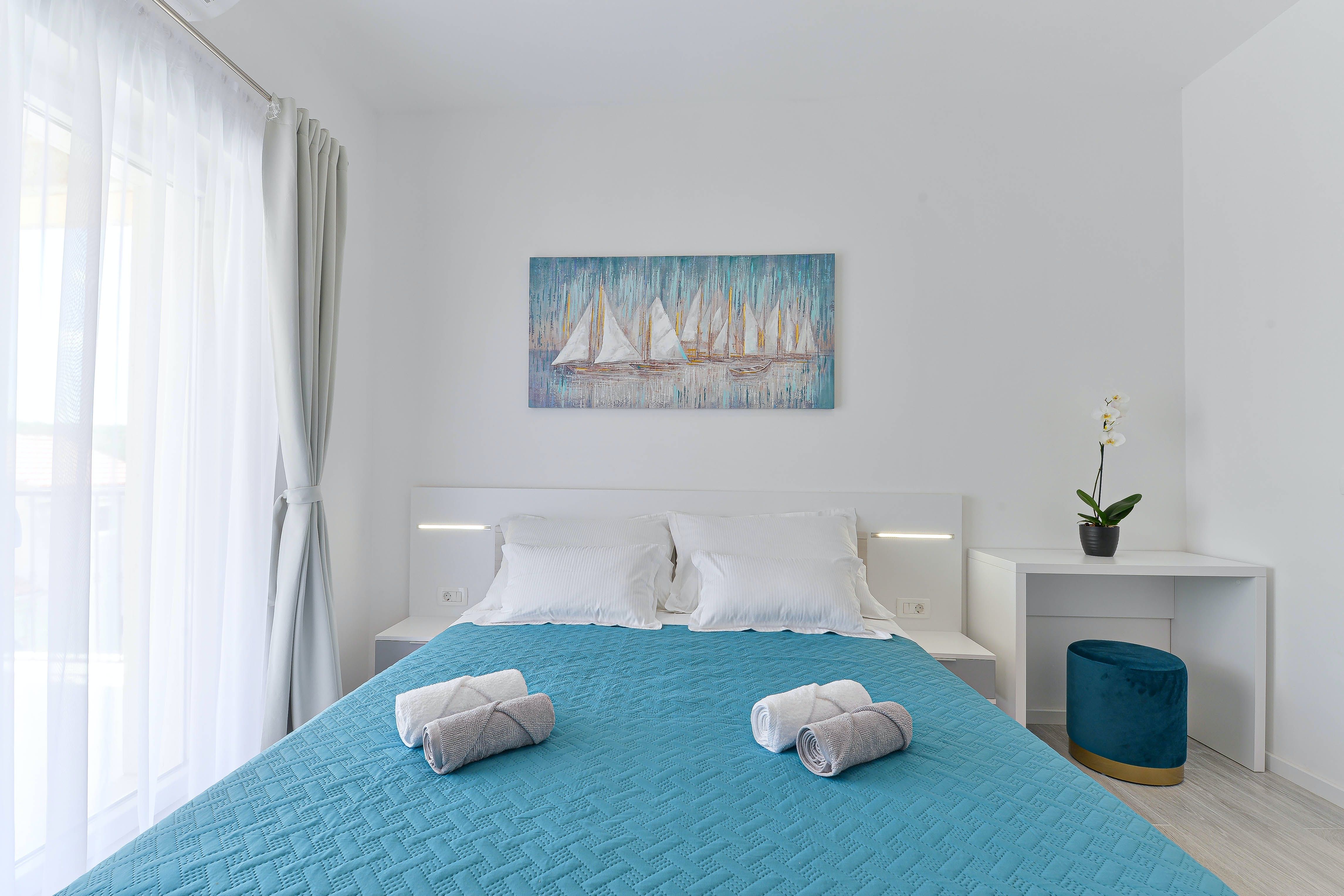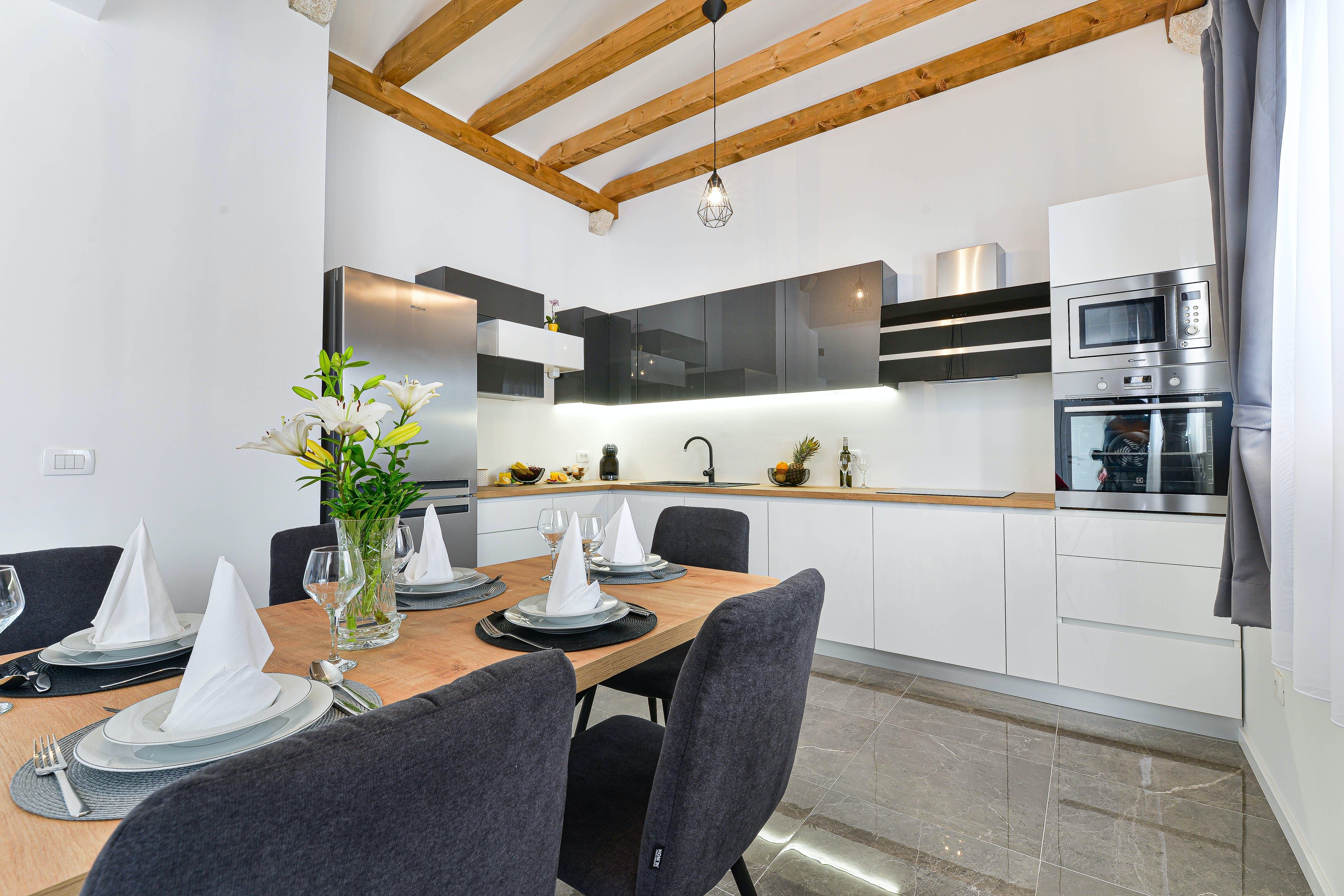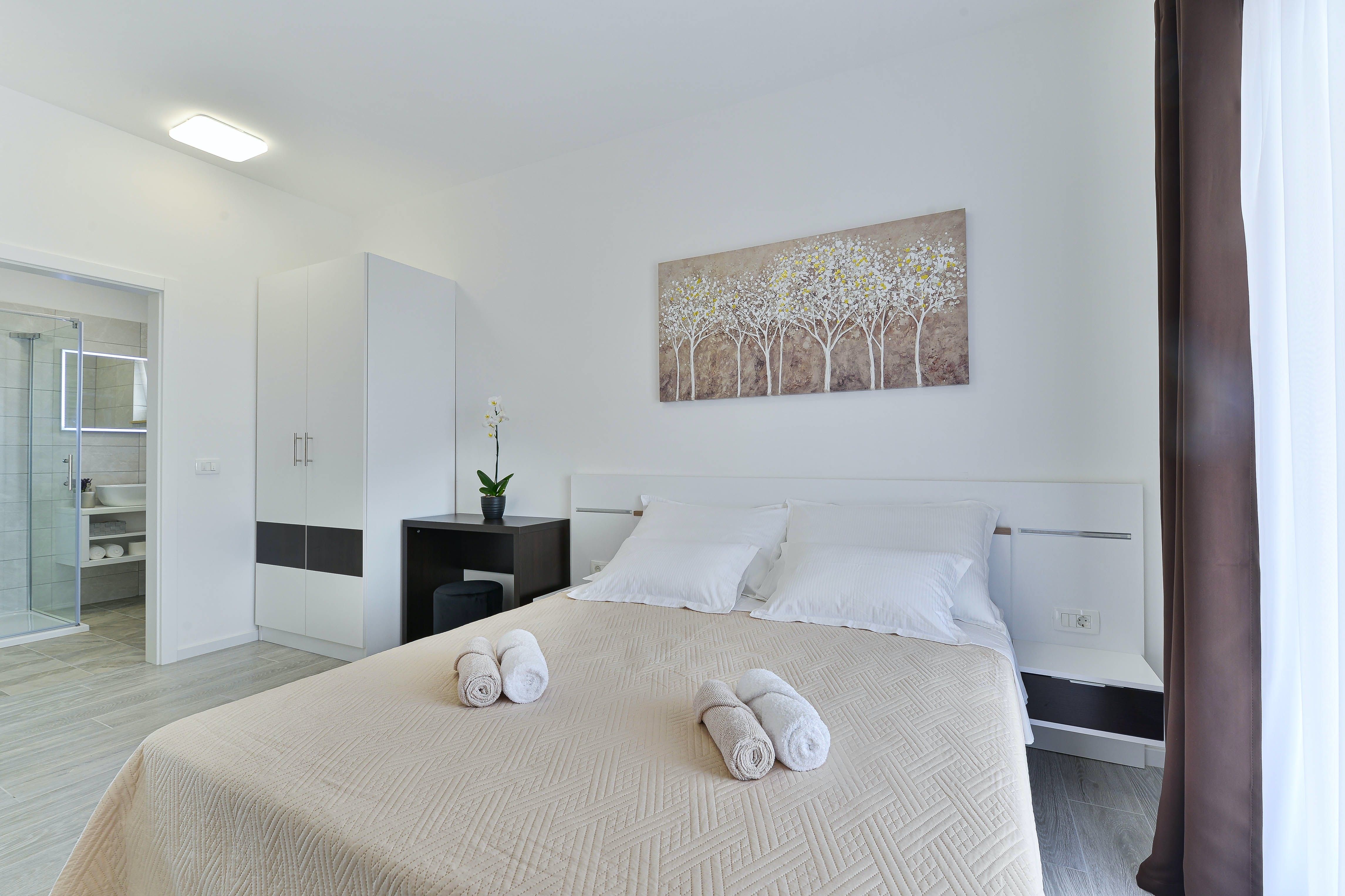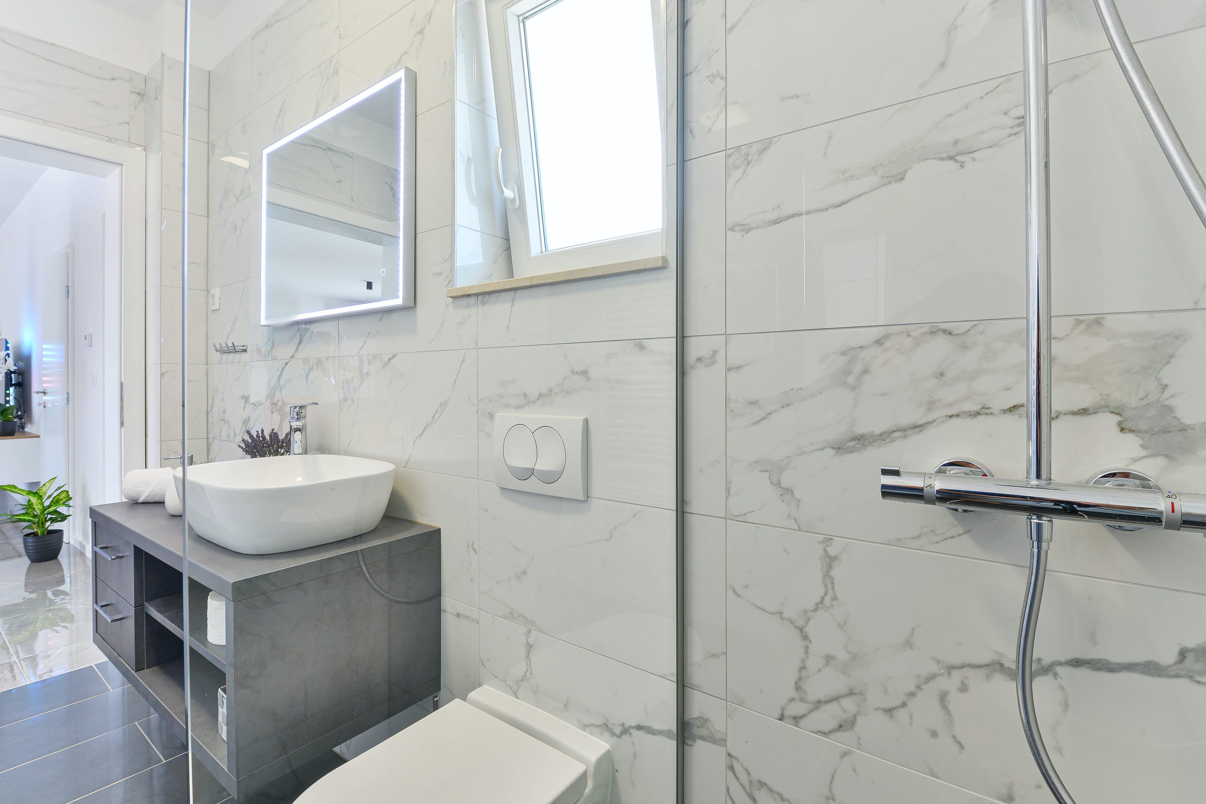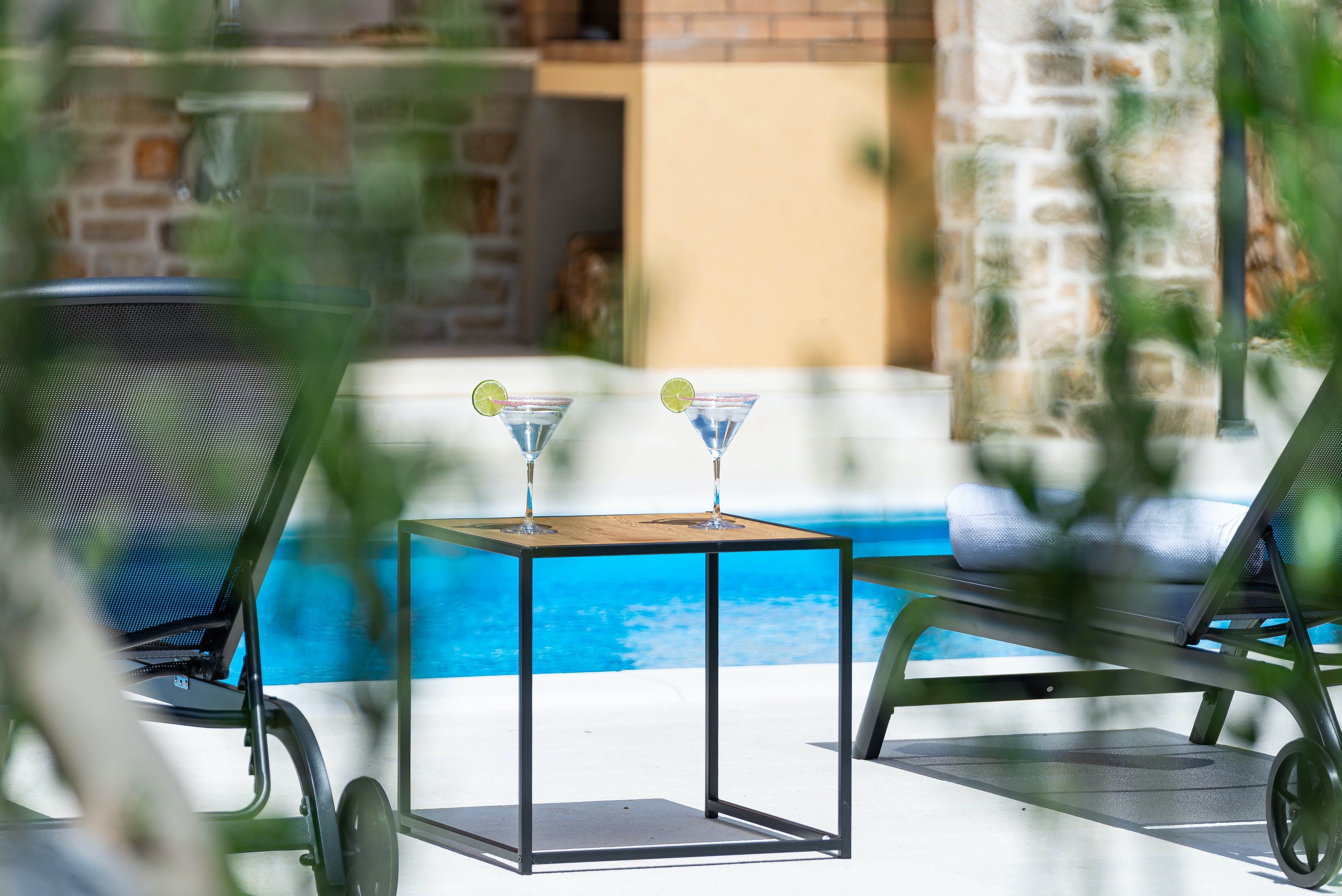 This charming stone villa is located near the sea and offers a versatile equipment that will delight guests. The 400 m² fenced plot includes lawns, terraces, and gravel areas, as well as a heated pool with comfortable stair entry, hydromassage function, and pool towels provided. Sports enthusiasts can enjoy badminton equipment, soccer goals, and a basketball hoop. The covered terrace with summer kitchen and barbecue is perfect for evening gatherings, while the furnished balcony on the first floor offers another attractive spot. Inside, the villa features a trendy design with white decor, large high-gloss tiles, and underfloor heating throughout. The living area is openly connected to the fully-equipped kitchen with dining table. Guests can relax on the sofa (which can be used as a sofa bed for two if required) in front of the TV or in one of the three air-conditioned double bedrooms with en suite shower rooms. The villa is perfect for families seeking relaxing vacations in a prime location.