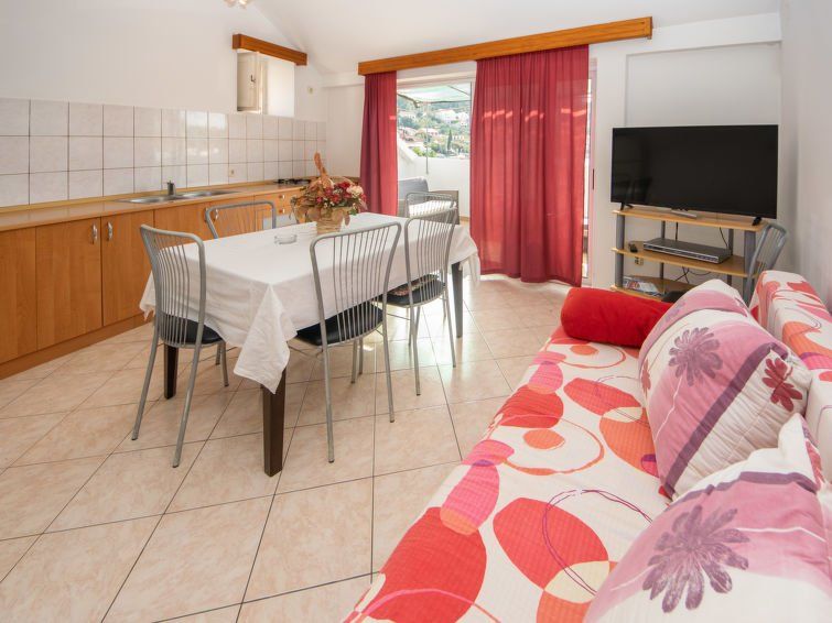 6-room semi-detached house 140 m2 on 2 levels, south facing position. Living/dining room with 1 sofabed (140 cm, length 200 cm), satellite TV and air conditioning. 1 room with 1 french bed (160 cm, length 200 cm), shower/WC. Exit to the balcony. 1 room with 1 french bed (160 cm, length 200 cm).
