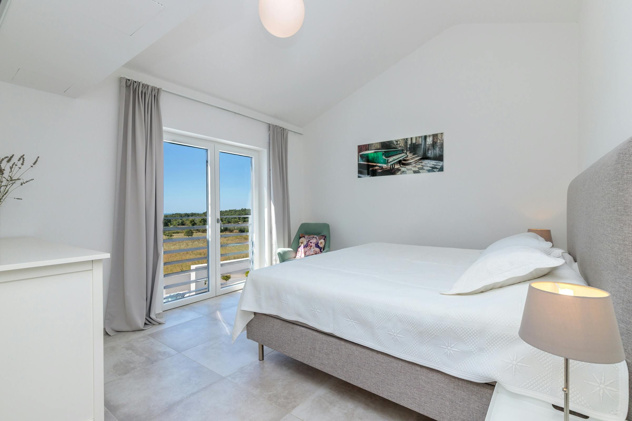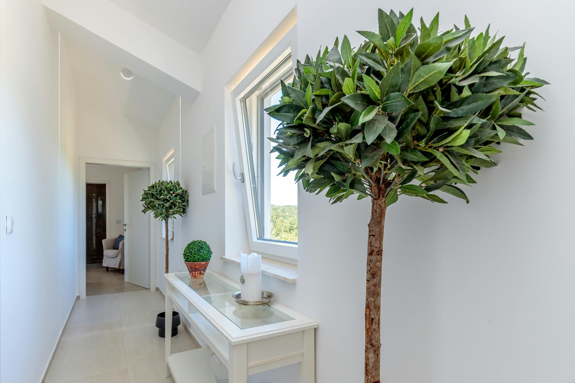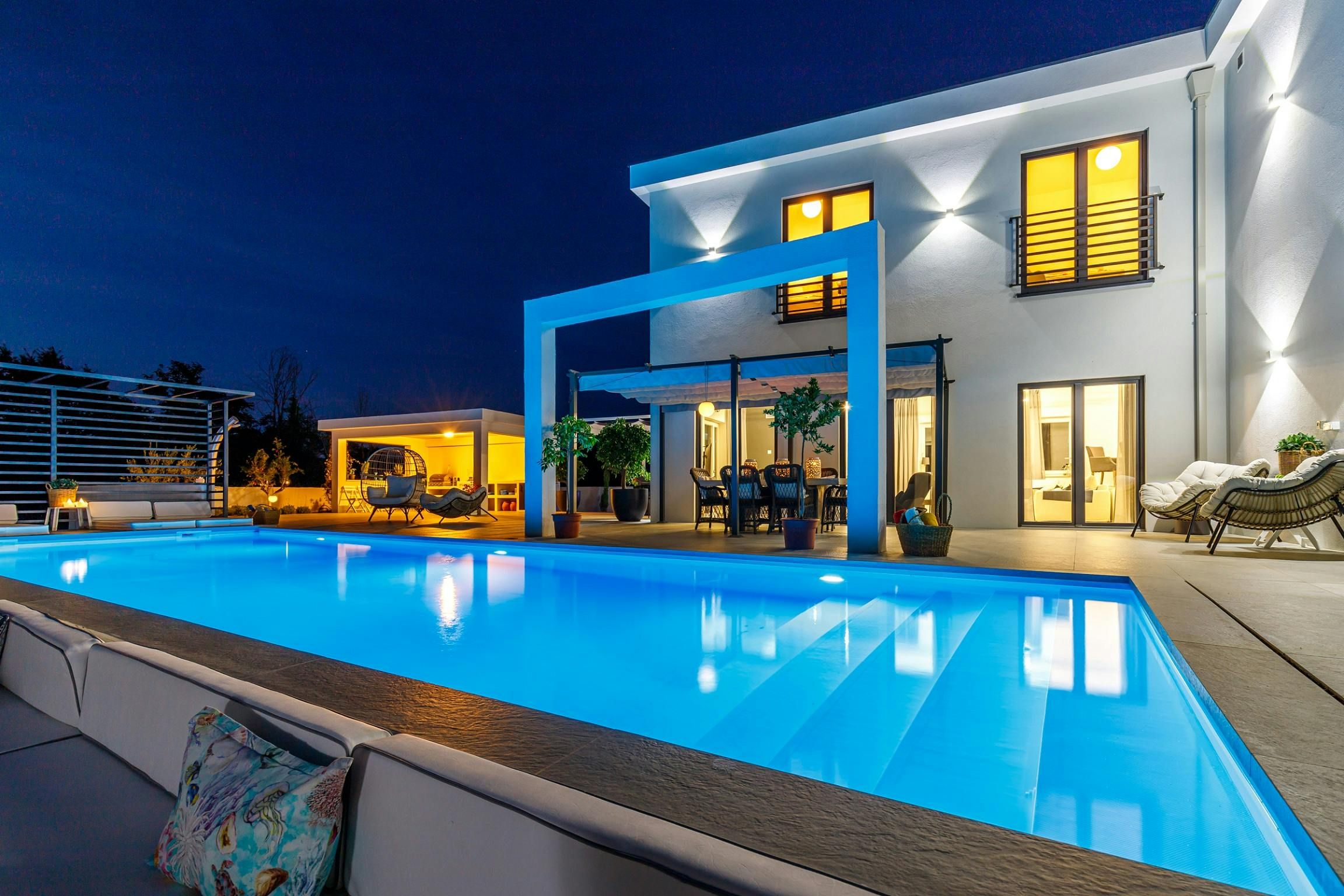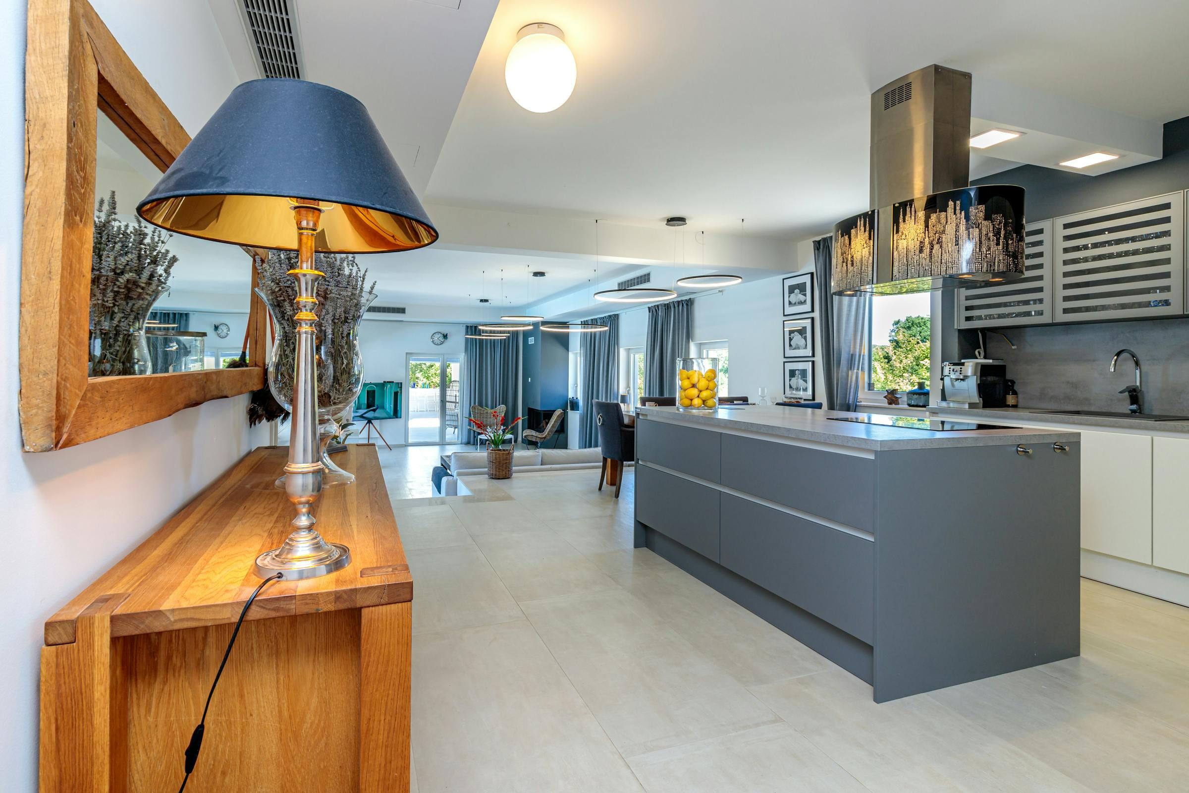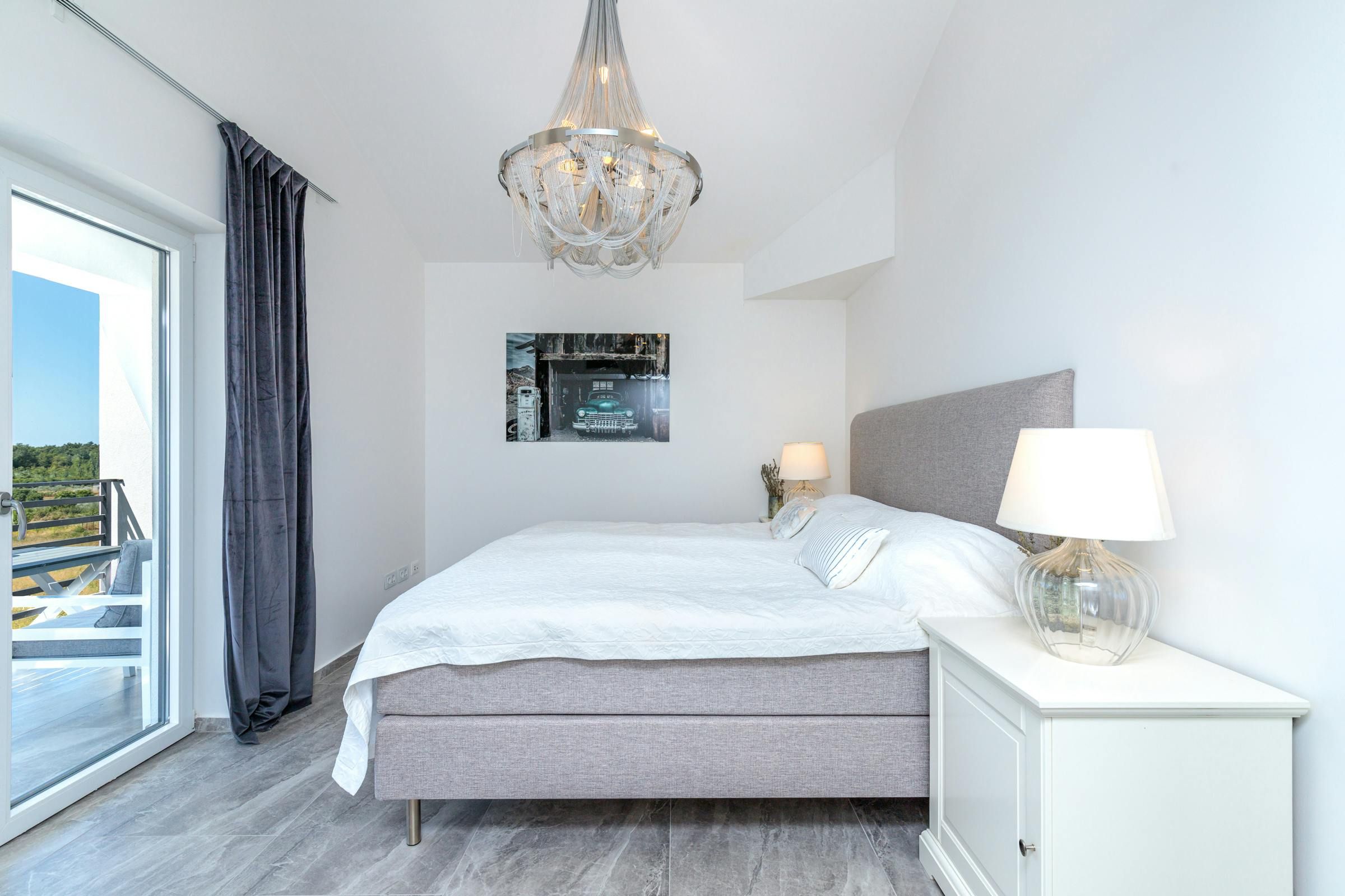 This charming villa located in the heart of Istria, in the small village of Barat, promises a relaxing and luxurious stay. Surrounded by greenery, this modernly designed property offers indoor and outdoor living space for the whole family. The outdoor area also includes a covered dining area, swimming pool, summer kitchen with an electric grill, and cosy daybeds. Inside, the living area boasts plenty of natural light as well as four bedrooms, each with an en-suite bathroom – one has a balcony with a view of the pool. Popular coastal towns such as Rovinj and Porec are just a thirty-minute drive away.