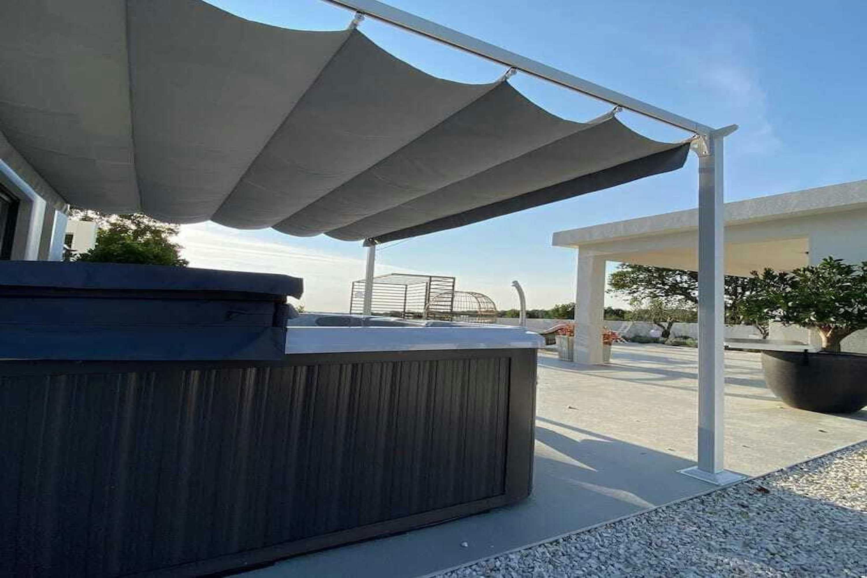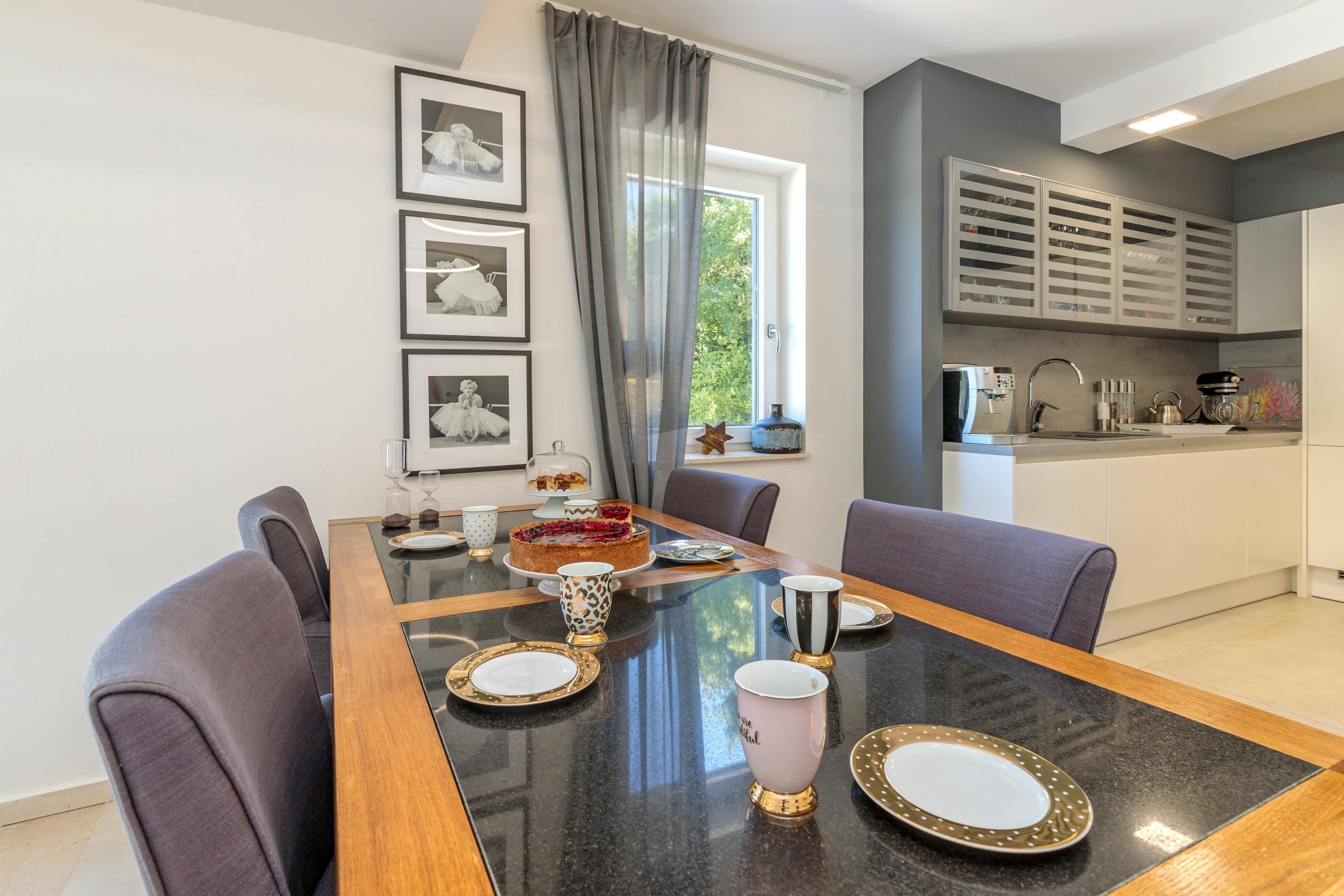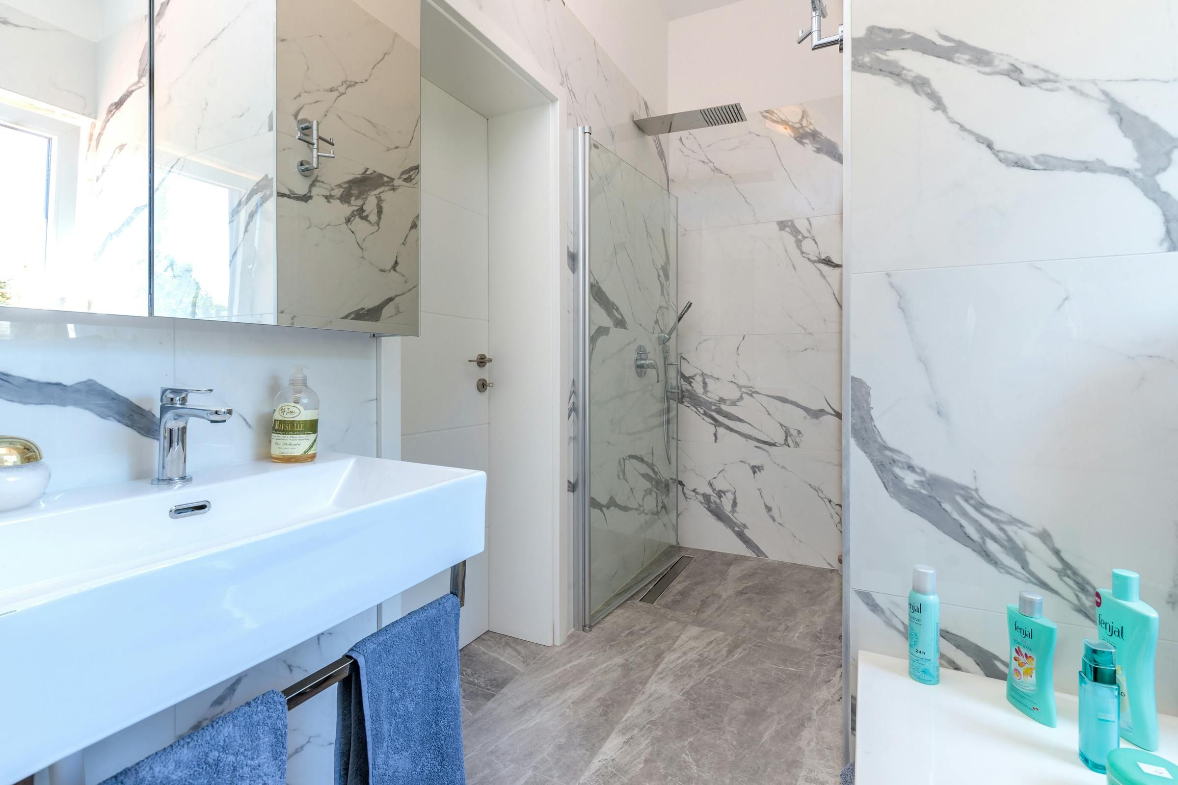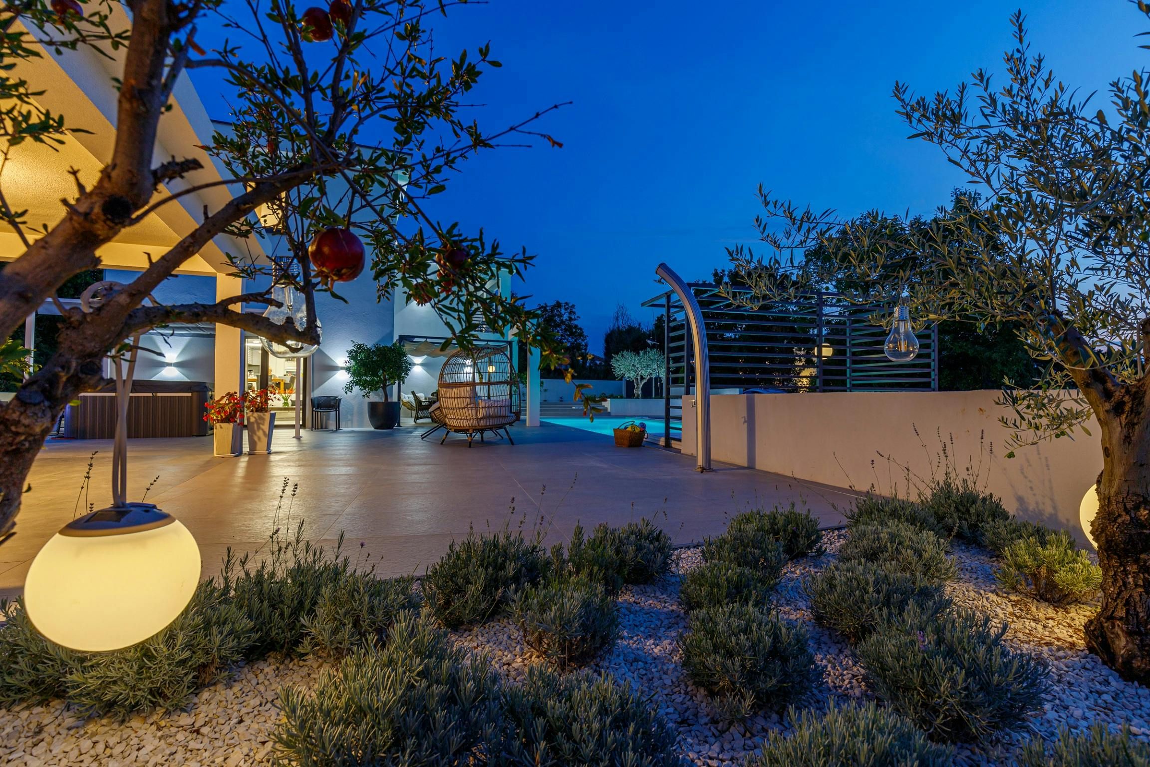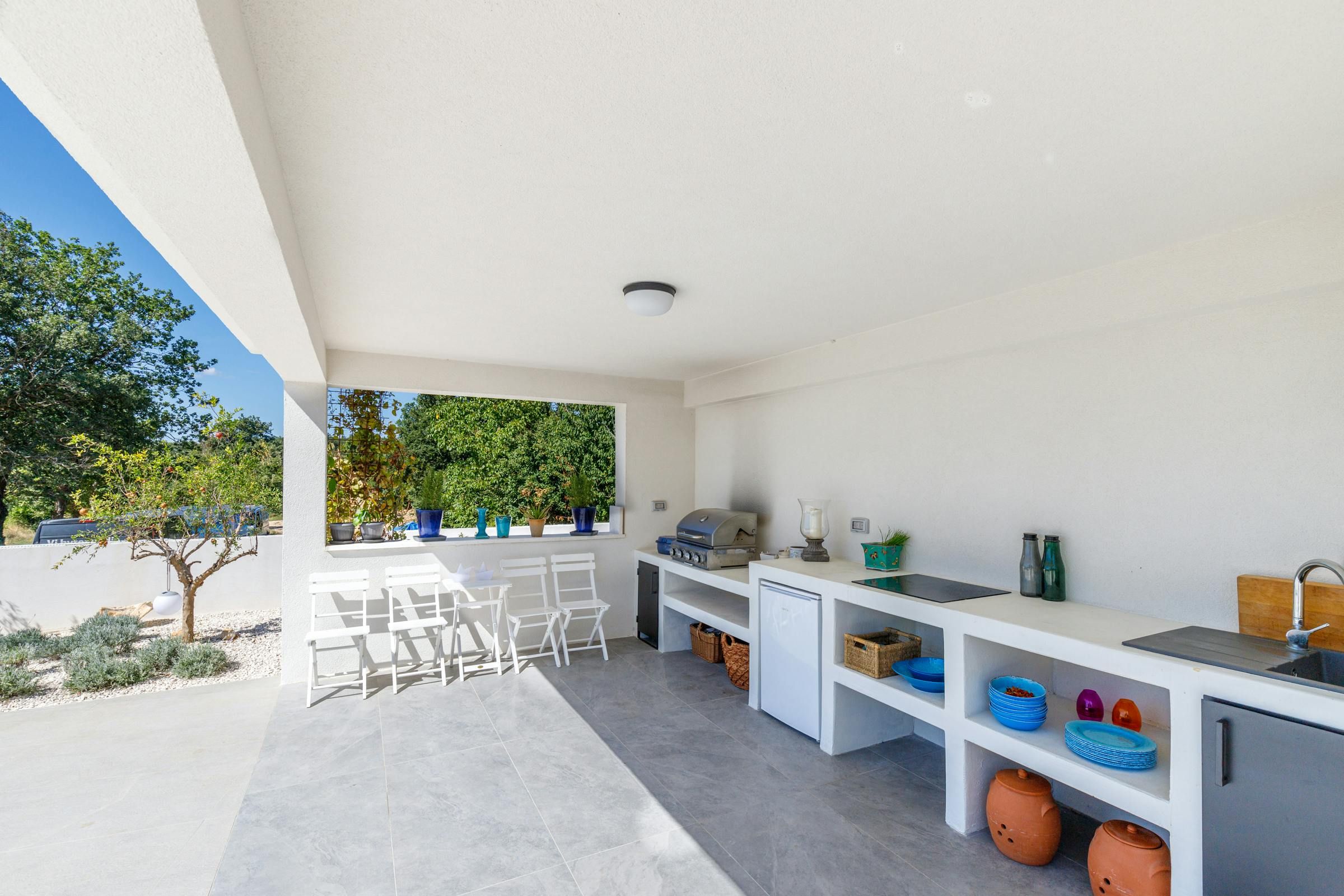 This charming villa located in the heart of Istria, in the small village of Barat, promises a relaxing and luxurious stay. Surrounded by greenery, this modernly designed property offers indoor and outdoor living space for the whole family. The outdoor area also includes a covered dining area, swimming pool, summer kitchen with an electric grill, and cosy daybeds. Inside, the living area boasts plenty of natural light as well as four bedrooms, each with an en-suite bathroom – one has a balcony with a view of the pool. Popular coastal towns such as Rovinj and Porec are just a thirty-minute drive away.