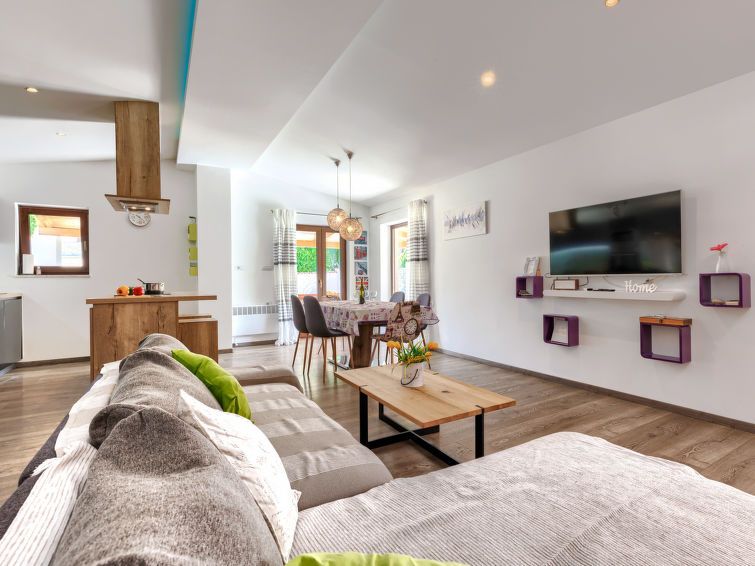 3-room house 105 m2, on the ground floor. Living/dining room with 1 double sofabed (160 cm, length 200 cm), satellite TV (flat screen), air conditioning. Exit to the terrace, to the swimming pool. 1 room with 1 french bed (180 cm, length 200 cm), shower/WC and satellite TV (flat screen), air conditioning.