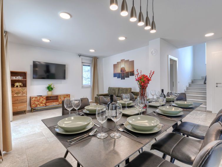 5-room villa 160 m2 on 2 levels. Beautiful and tasteful furnishings: living/dining room with satellite TV and air conditioning. Exit to the swimming pool. 1 room with 1 french bed (160 cm, length 200 cm), satellite TV and air conditioning. Open kitchen (oven, dishwasher, 4 induction hot plates, toaster, kettle, microwave, freezer, electric coffee machine).