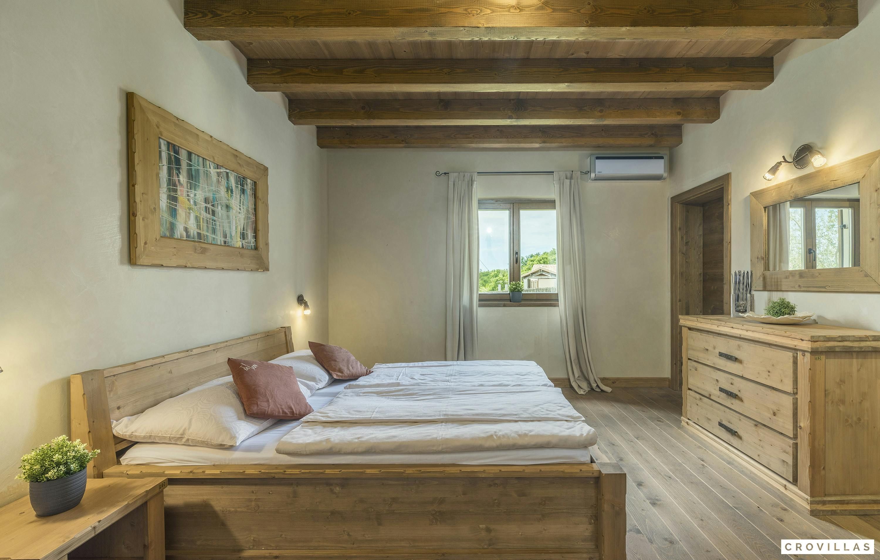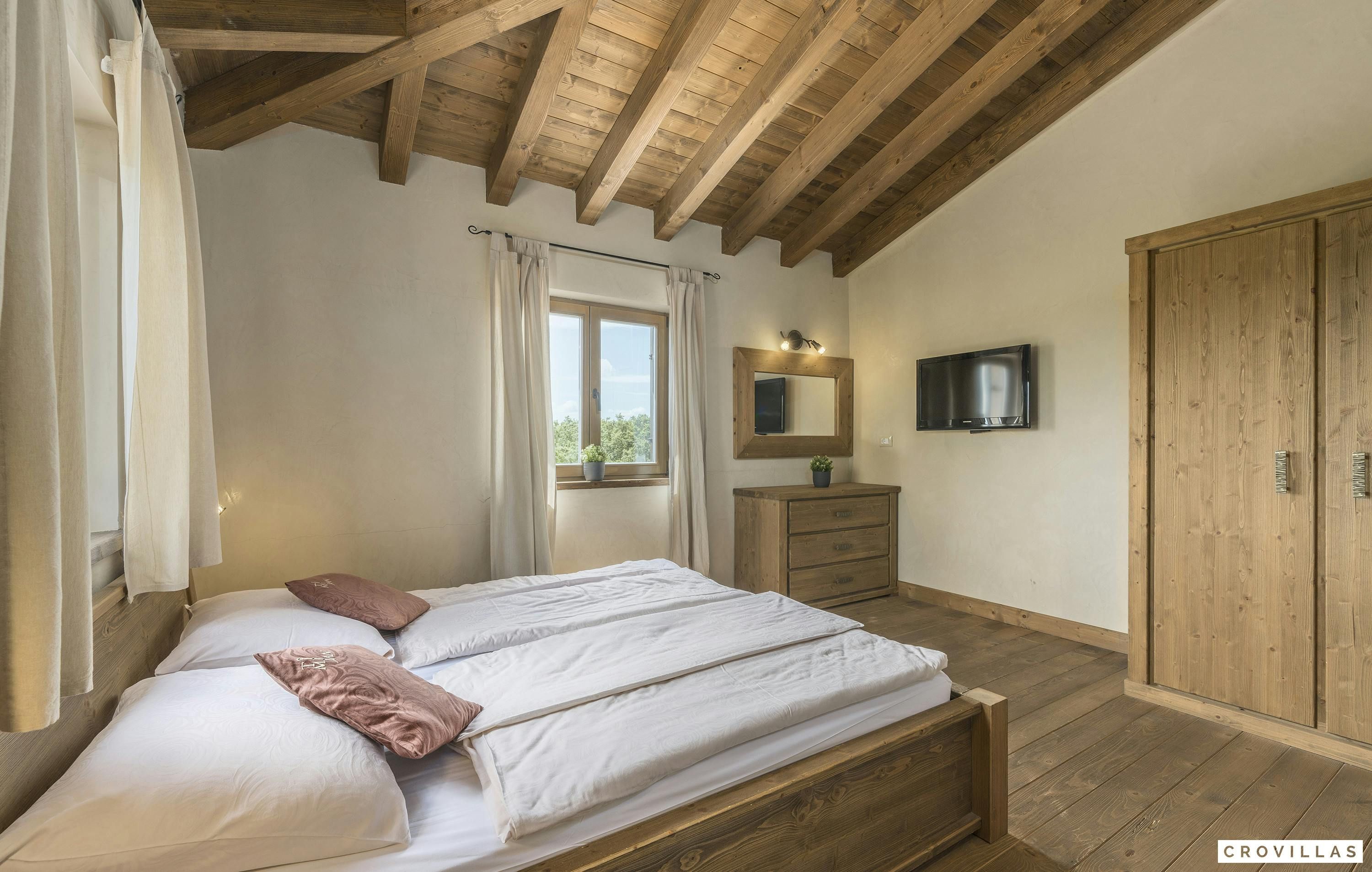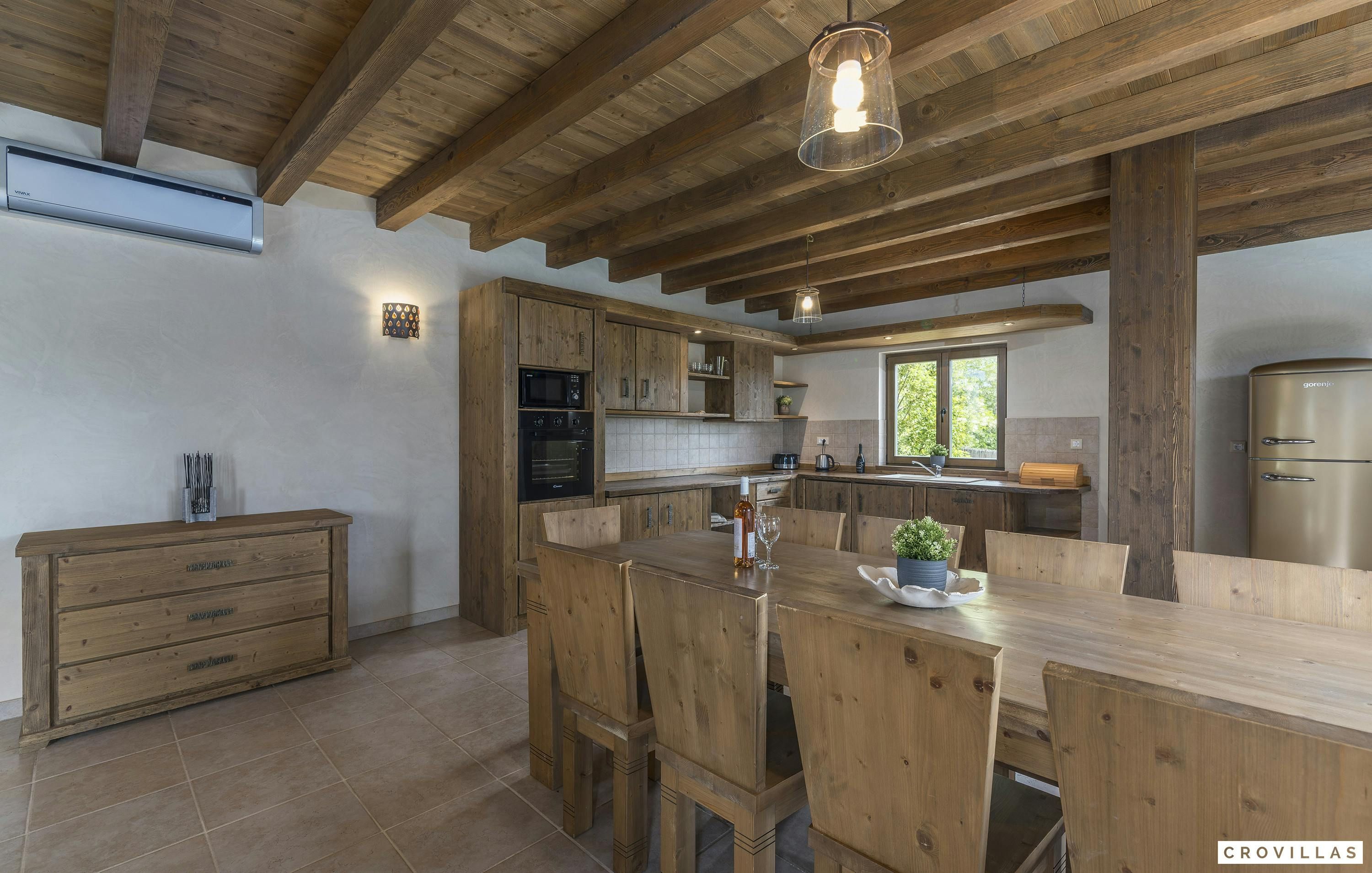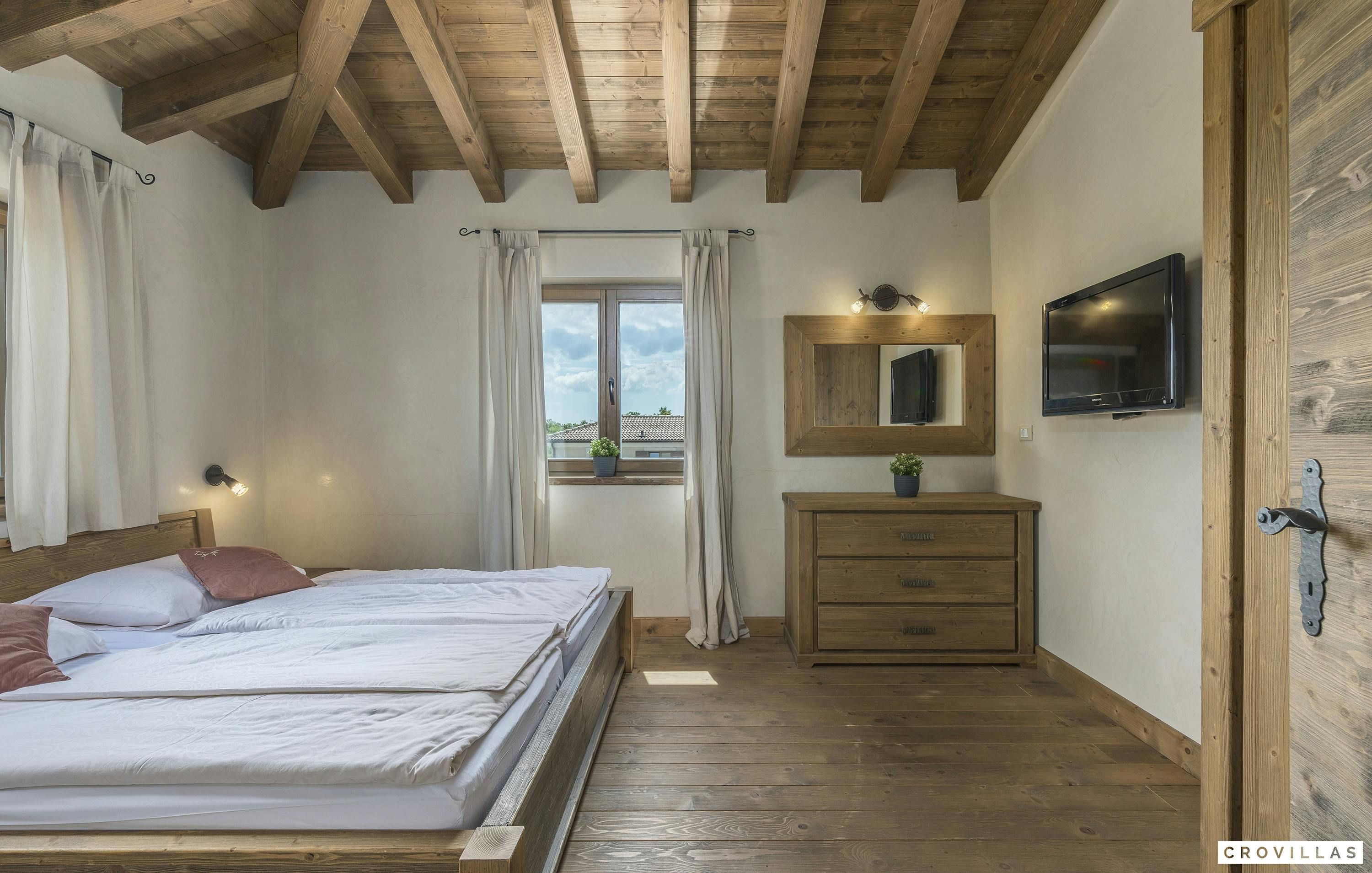 This home is an exquisite villa located in the charming village of Bonašini, near Vodnjan. The villa features a rustic country house style, with modern amenities and comfortable furnishings. The open-plan kitchen has a chest-height stove, ceramic hob, large refrigerator, coffee maker, dishwasher, kettle and much more. The living area has an in-house library and a fireplace for cozy evenings. The villa has four comfortable bedrooms with LCD TVs and en-suite bathrooms with showers or bathtubs. The villa features a small fitness area, a Finnish sauna, and a Jacuzzi. Outside there is an illuminated outdoor pool and an outdoor kitchen in the beautifully designed garden area.