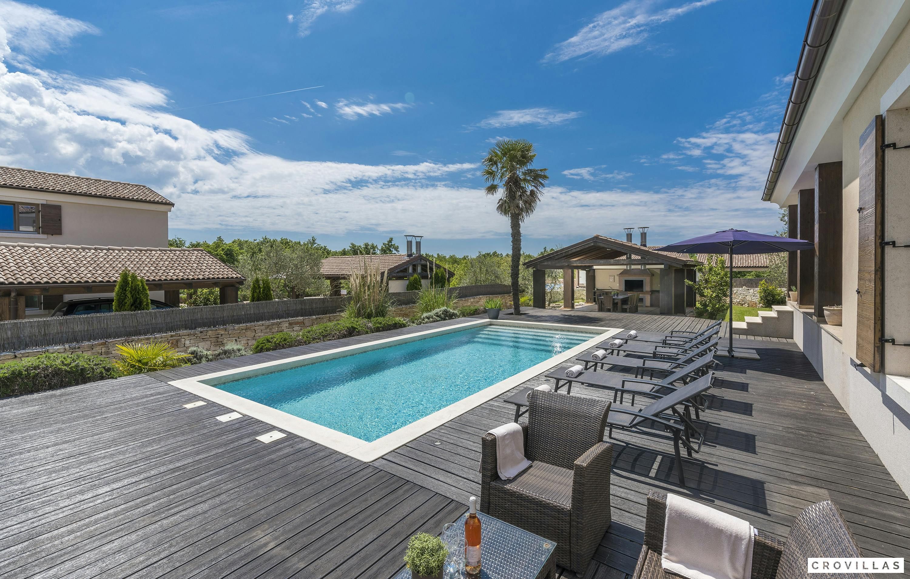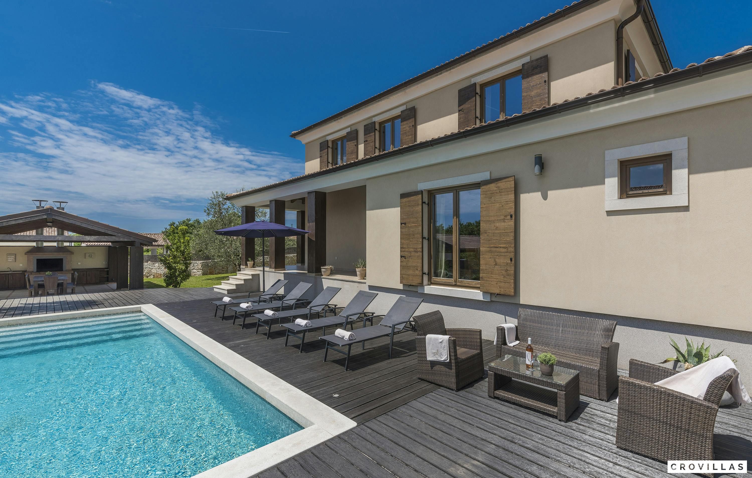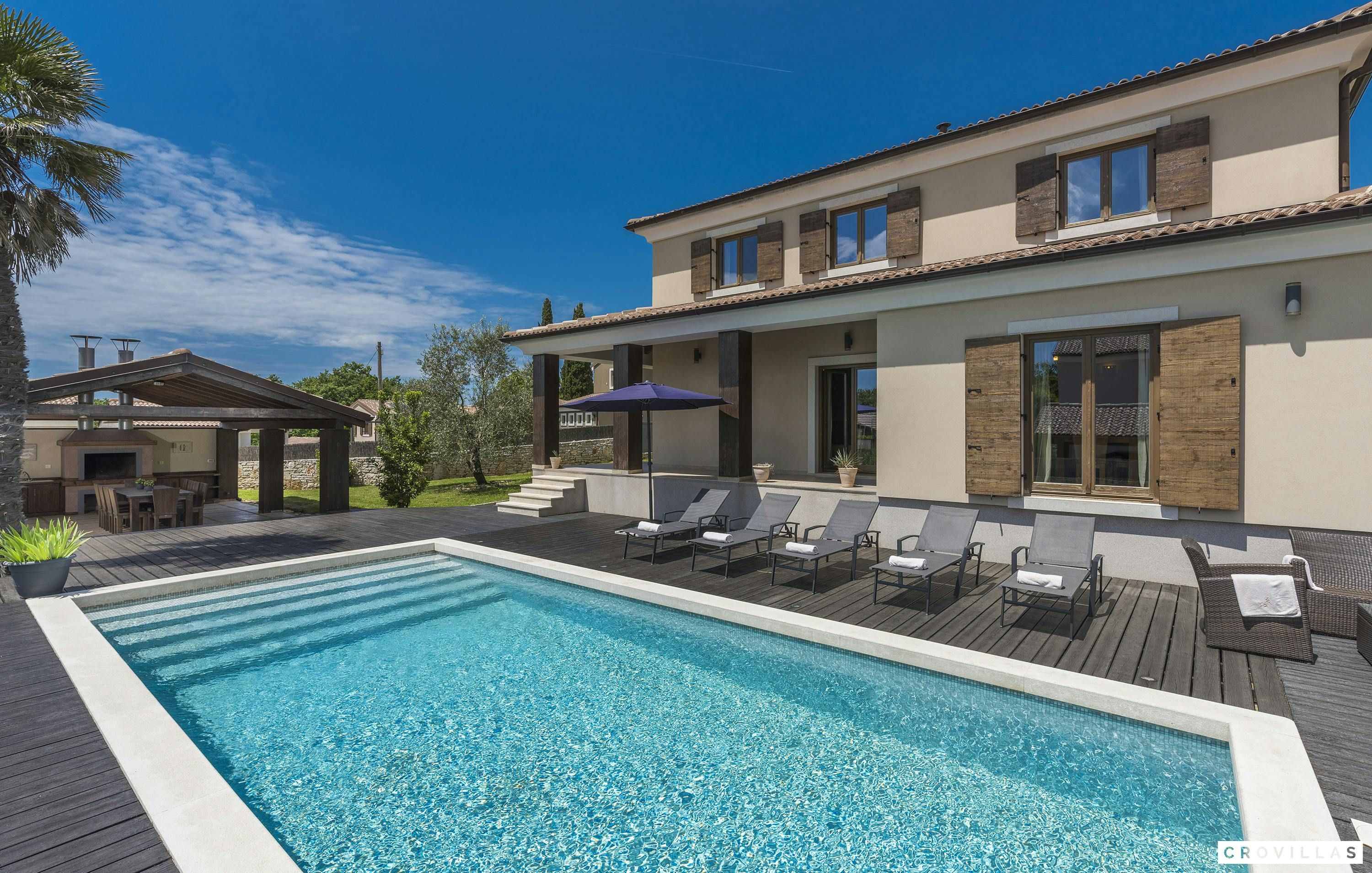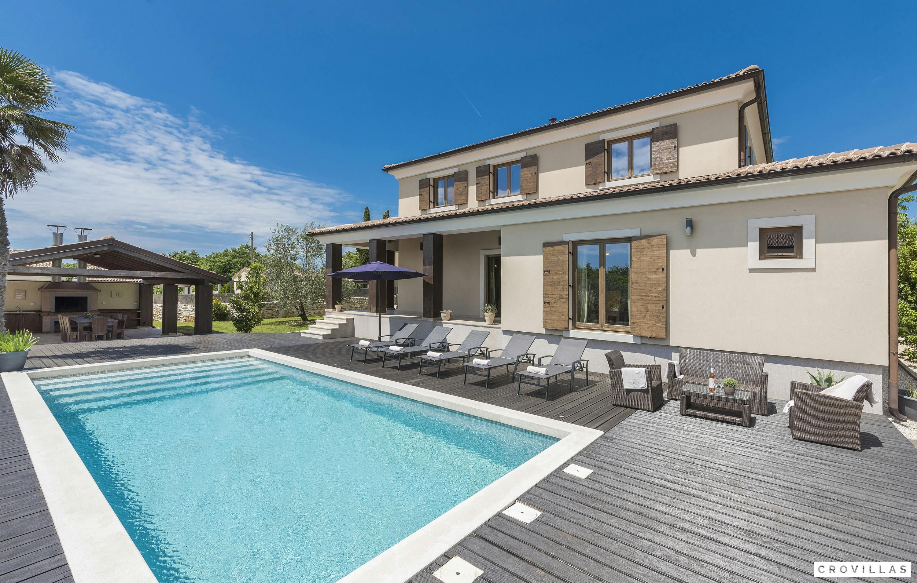 Guests can enjoy numerous activities like cycling, wine tours, boat trips to Venice or deep-sea fishing on an Istrian fishing boat. The chic villa is within close proximity to picturesque cities like Vodnjan and Svetvinčenat that have numerous cultural and historical monuments. Guests can also visit Pula with its 3,000-year-old history which offers a cityscape characterised by Roman temples as well as baroque palaces and remains of medieval city walls and gates.