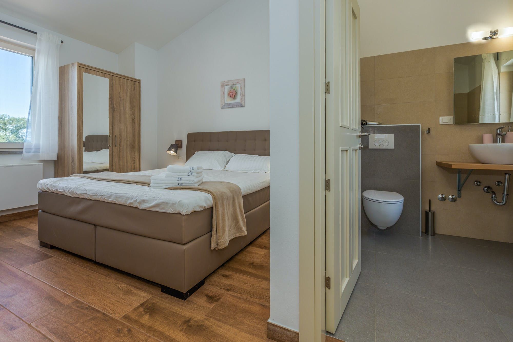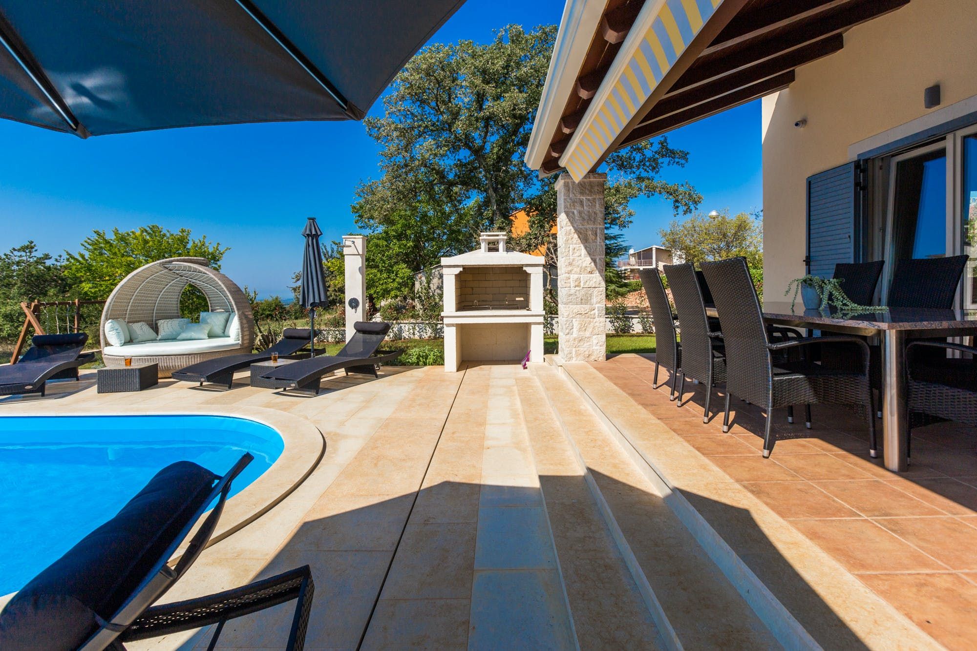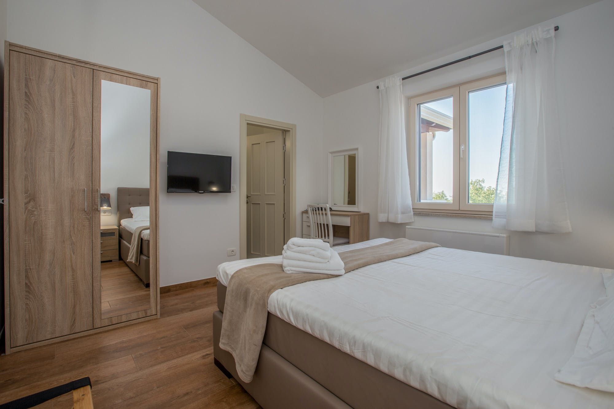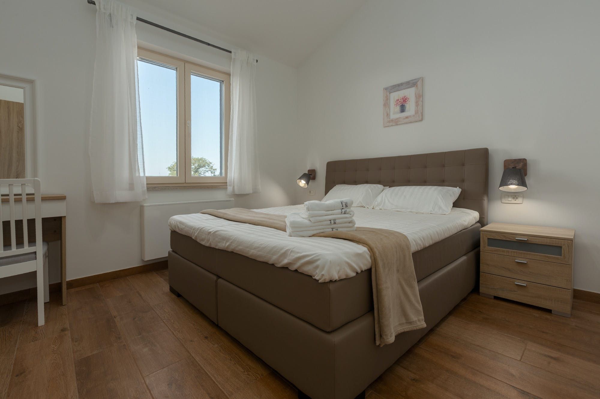 Experience luxury and privacy at the stunning luxury villa in Istria. The villa offers a breathtaking view of the sea and nearby olive groves, providing a serene atmosphere for the whole family. With a total of four air-conditioned bedrooms, each with private bathrooms, this villa can accommodate up to 8+2 guests. The first floor features a spacious living room with a large flat-screen TV, open modern kitchen, dining area for eight people, one bedroom with an adjoining bathroom, and a guest toilet. The second floor consists of three more bedrooms, all equipped with satellite TV and free Wi-Fi throughout the house and garden. The outdoor area boasts comfortable sun loungers, a 40 sqm infinity pool overlooking the sea, and a covered terrace with an adjacent outdoor grill offering an outdoor dining area for eight people. Children can enjoy the garden's amenities such as a swing with a climbing net while adults relax in total bliss.