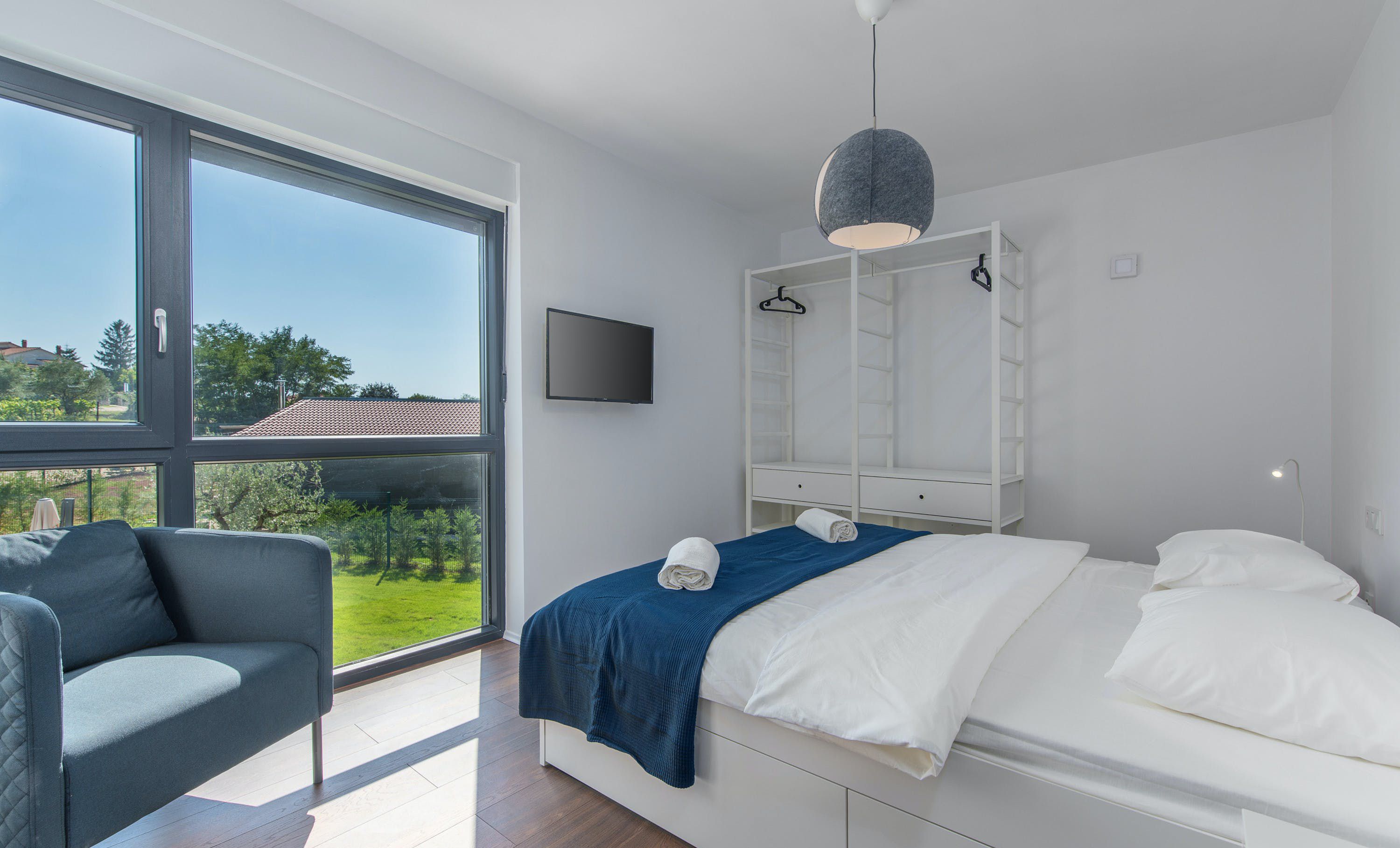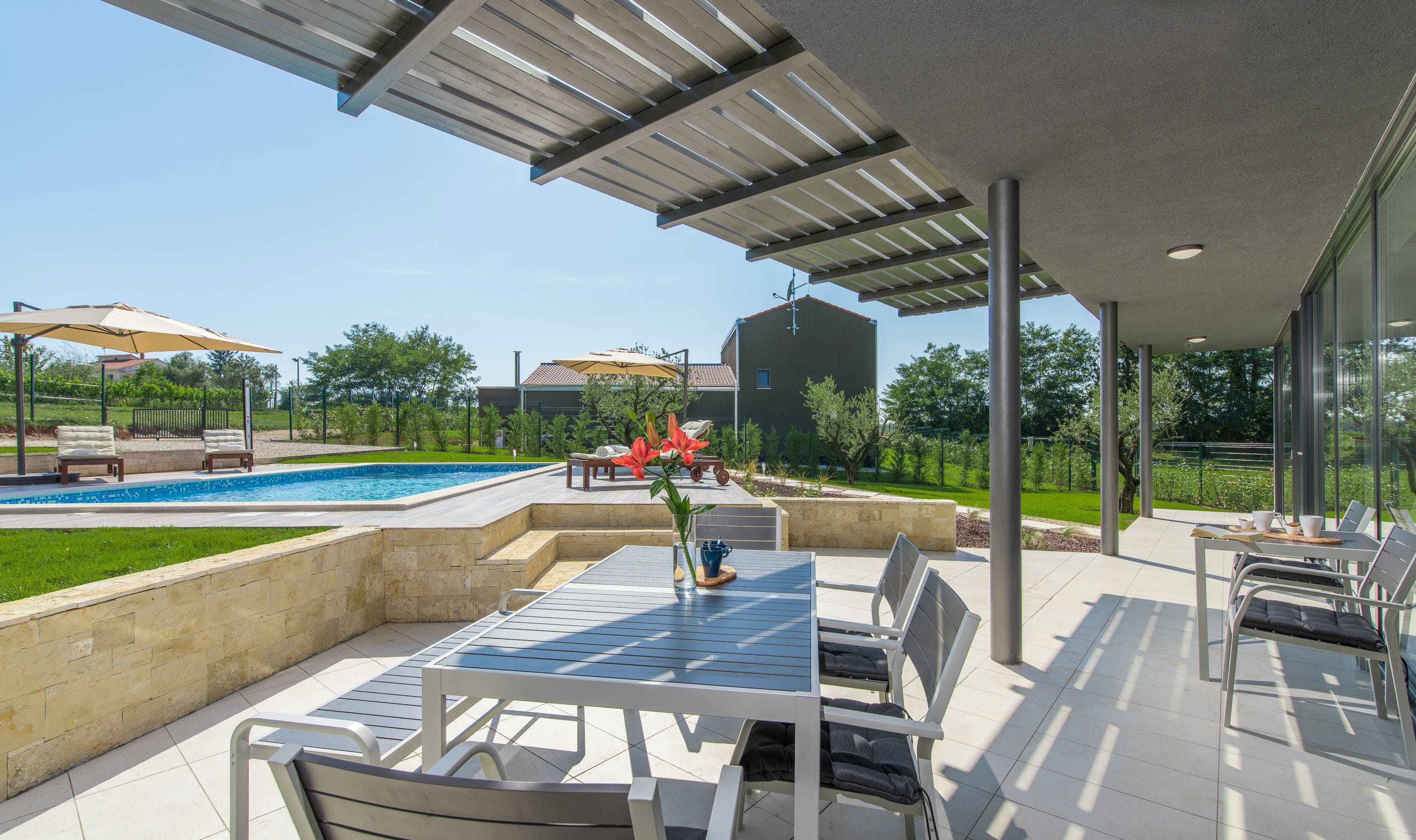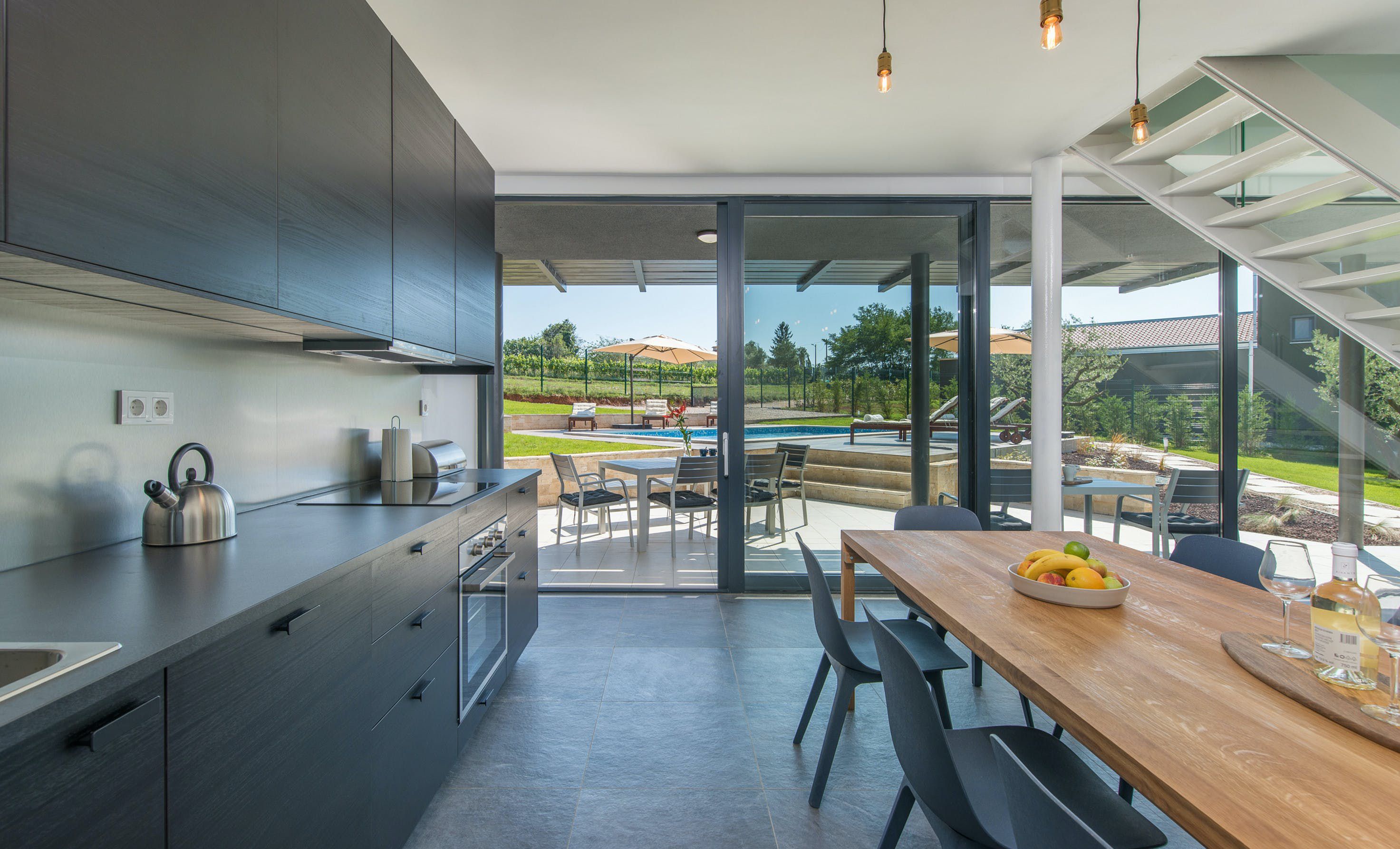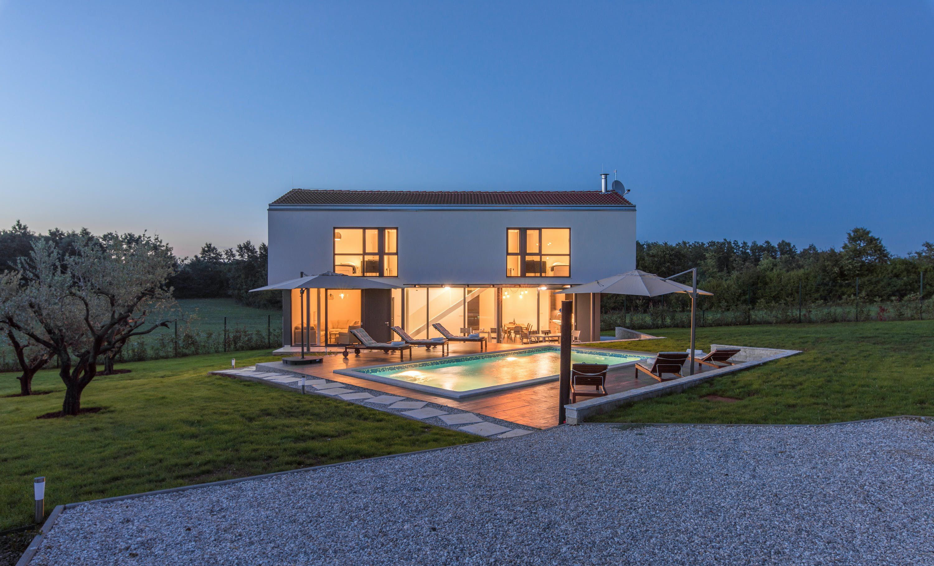 This contemporary Croatian villa paints a striking contrast with its idyllic, rural surroundings. The open-plan design gives you plenty of opportunities to admire the greenery outside – but we’d recommend sliding open the glass doors for an even better experience. Each of the bedrooms enjoys uninterrupted country views, while the pool deck is the perfect spot to enjoy the sunshine. Although some might prefer to be closer to the sea (it’s a thirty-five-minute drive to Lanterna beach), you’ll at least enjoy the privacy and quiet that comes with a location off the tourist trail.