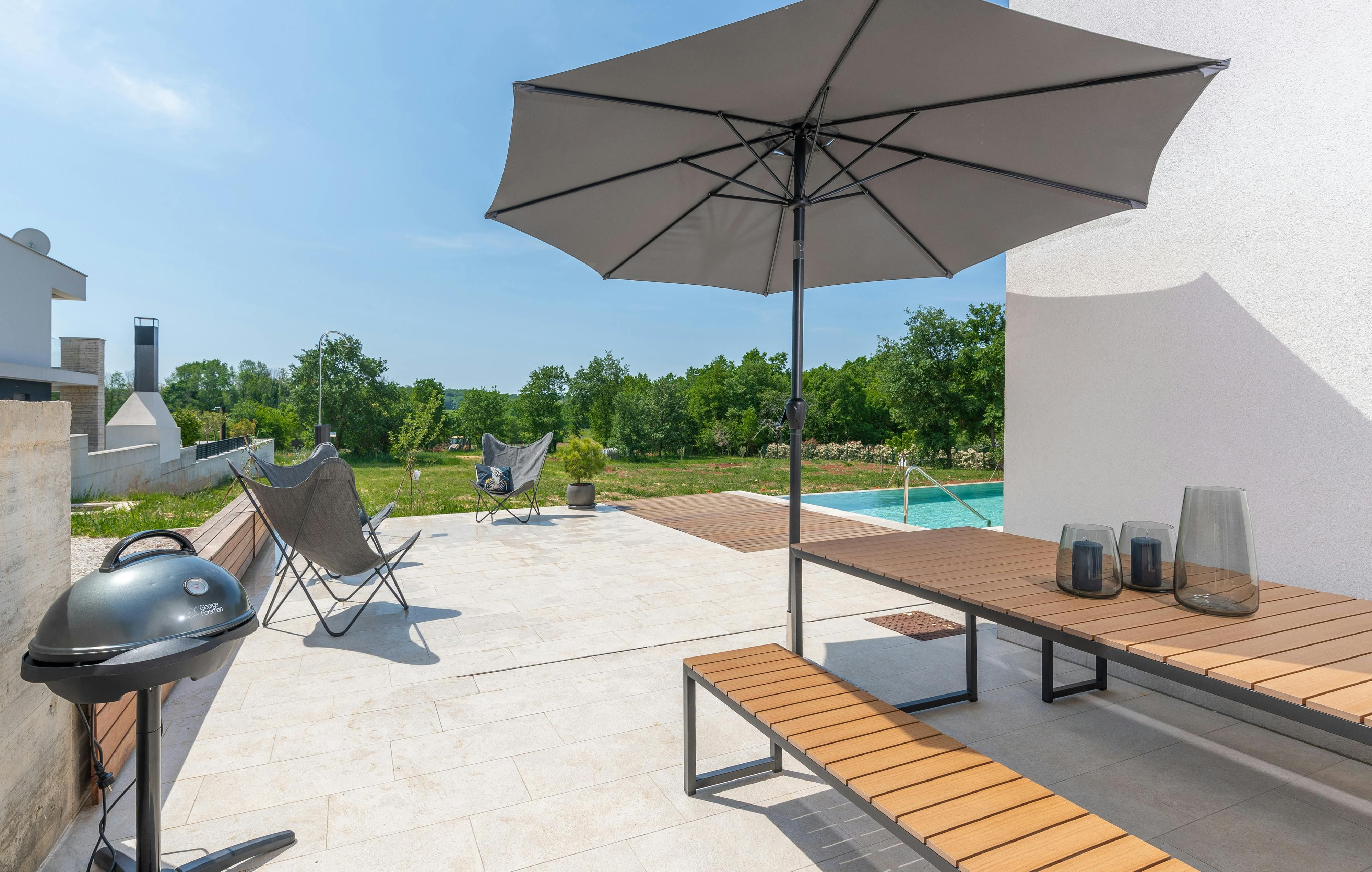 You don't come across a villa with its own squash hall every day, but that's exactly what's in store here. Sporty types can enjoy some friendly games –there's also ping pong if you're not keen on squash. Outside, we're sure everyone will appreciate the private pool. After a dip, gather on the terrace for an alfresco meal or a few sundowners. Inside, it's slick and modern, albeit a tad soulless. With a winery nearby, a beach within driving distance, and pretty Poreč just 8 kilometres away, exploring will be a breeze, too.