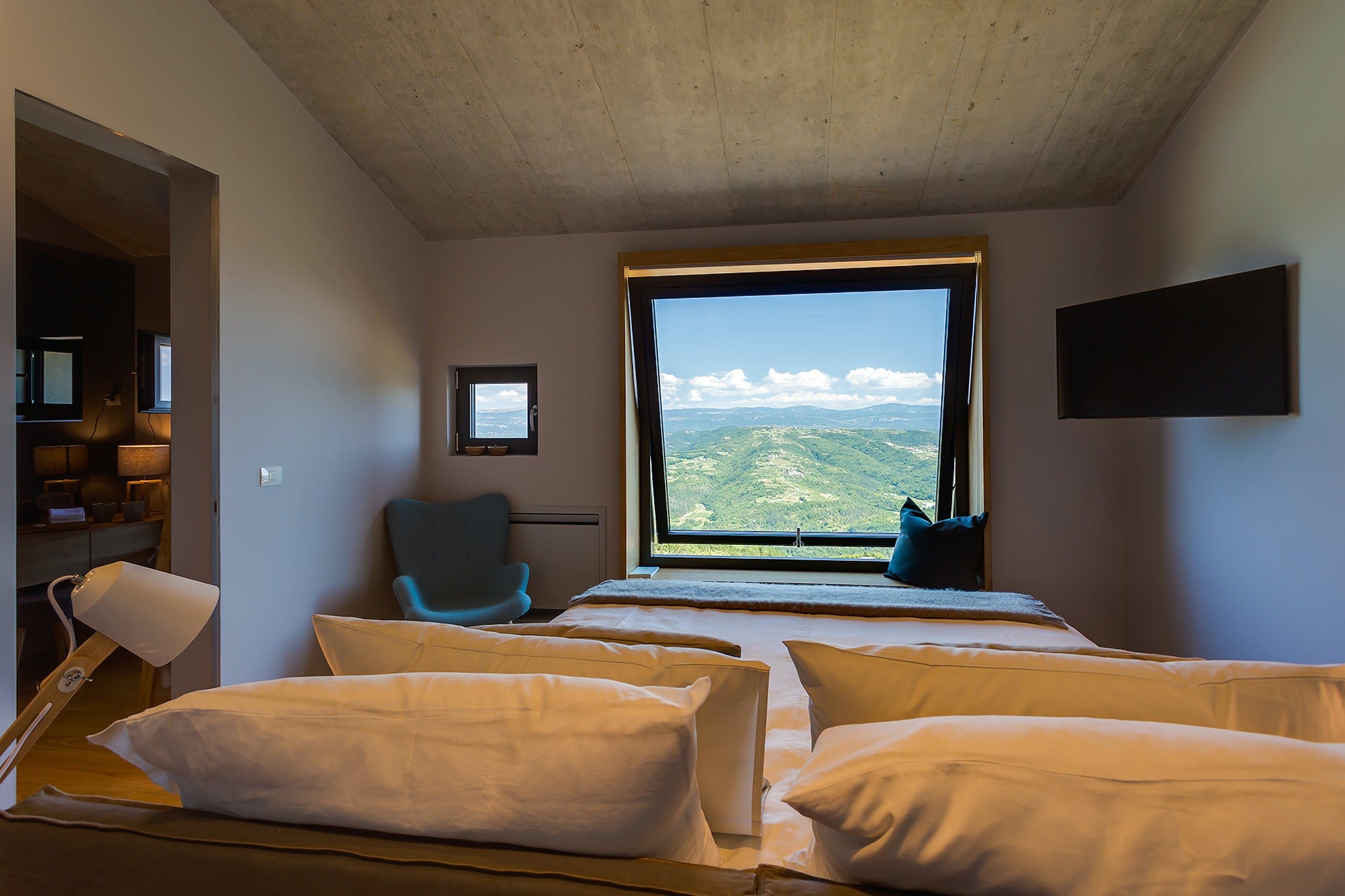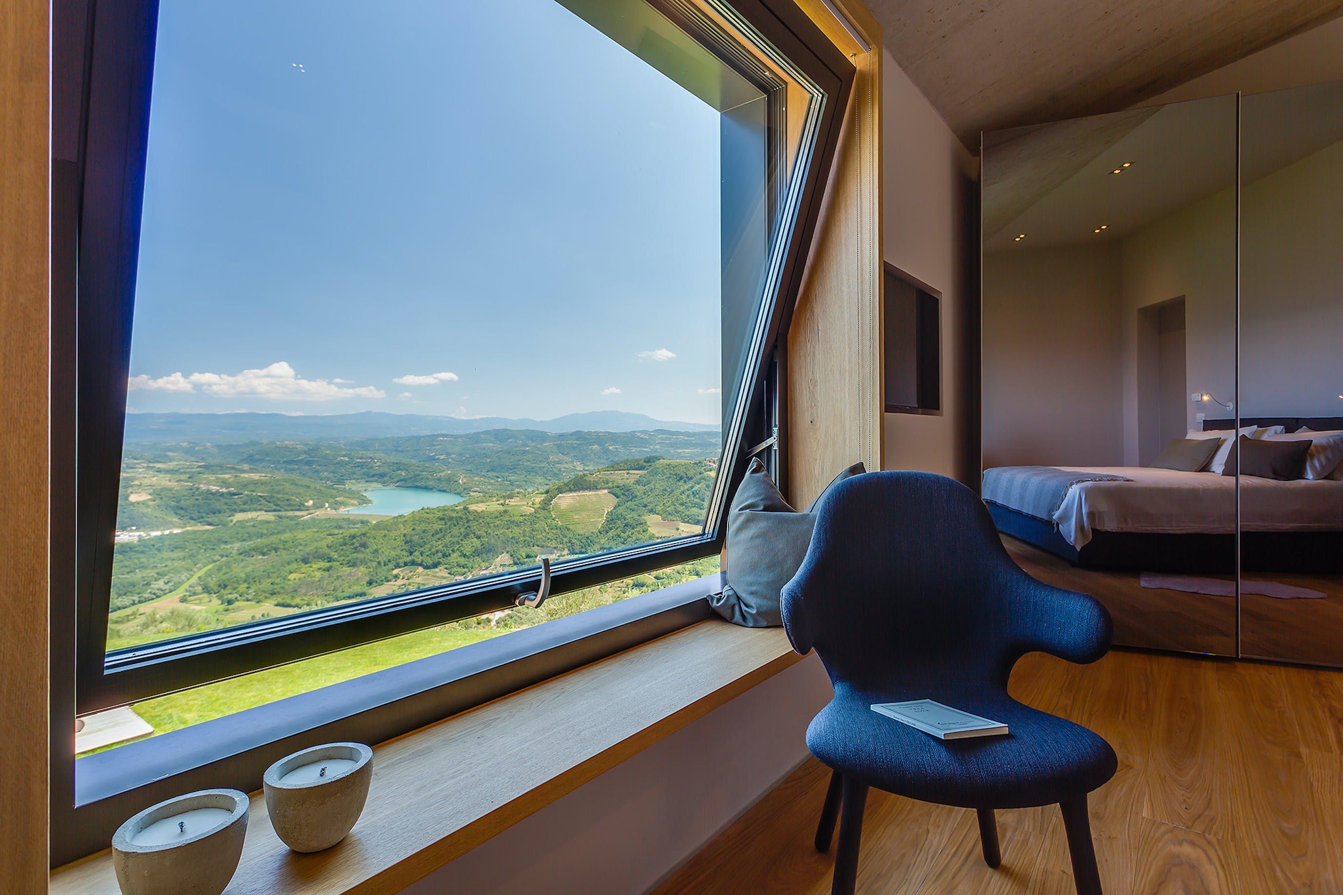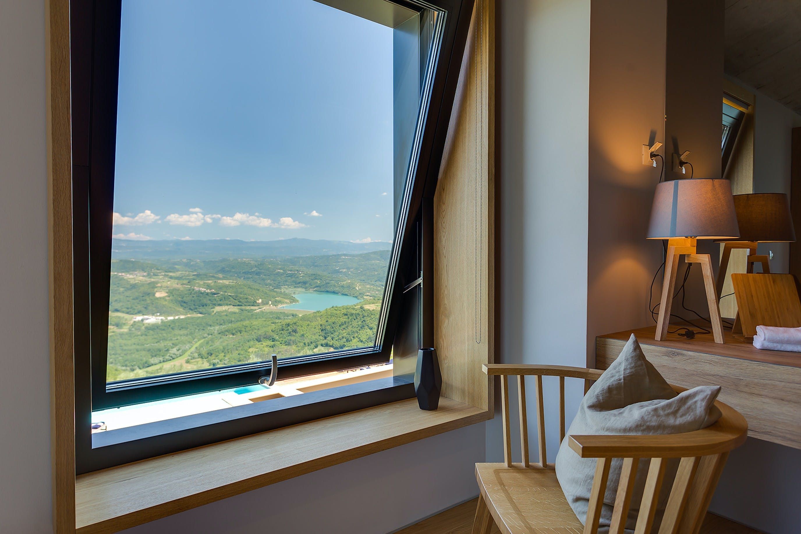 Villa Istra Magic is a stunning designer villa located in Istria, Croatia. This eco-friendly property is nestled amidst vineyards and boasts a breathtaking view of the turquoise Butoniga reservoir and the green Istria. The villa features three en-suite double bedrooms with impressive panoramic views, making it perfect for up to six guests. The modern, open plan kitchen and spacious sitting area span the entire length of the ground floor, while the outdoor area includes a large heated infinity swimming pool with comfortable loungers and many secluded spots for reading or lounging. The property also includes a small library area with TV and books, fully air-conditioned rooms, Wi-Fi internet connection, LCD SAT TV, BBQ, bicycles for guest use, and parking. With attractive coastal towns like Novigrad, Umag or Porec just 40 minutes away by car, Villa Istra Magic offers an ideal getaway for nature lovers and history buffs alike.
