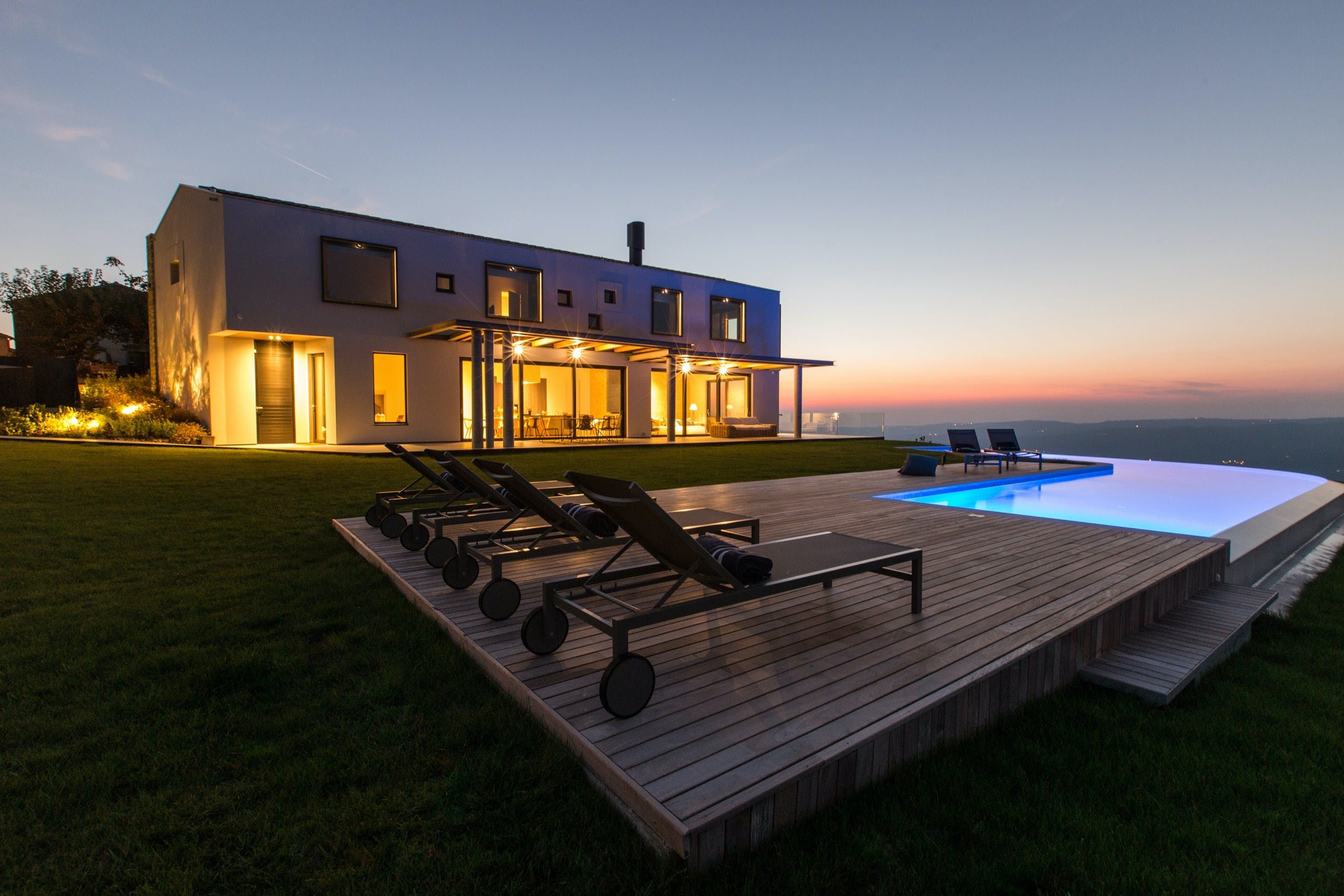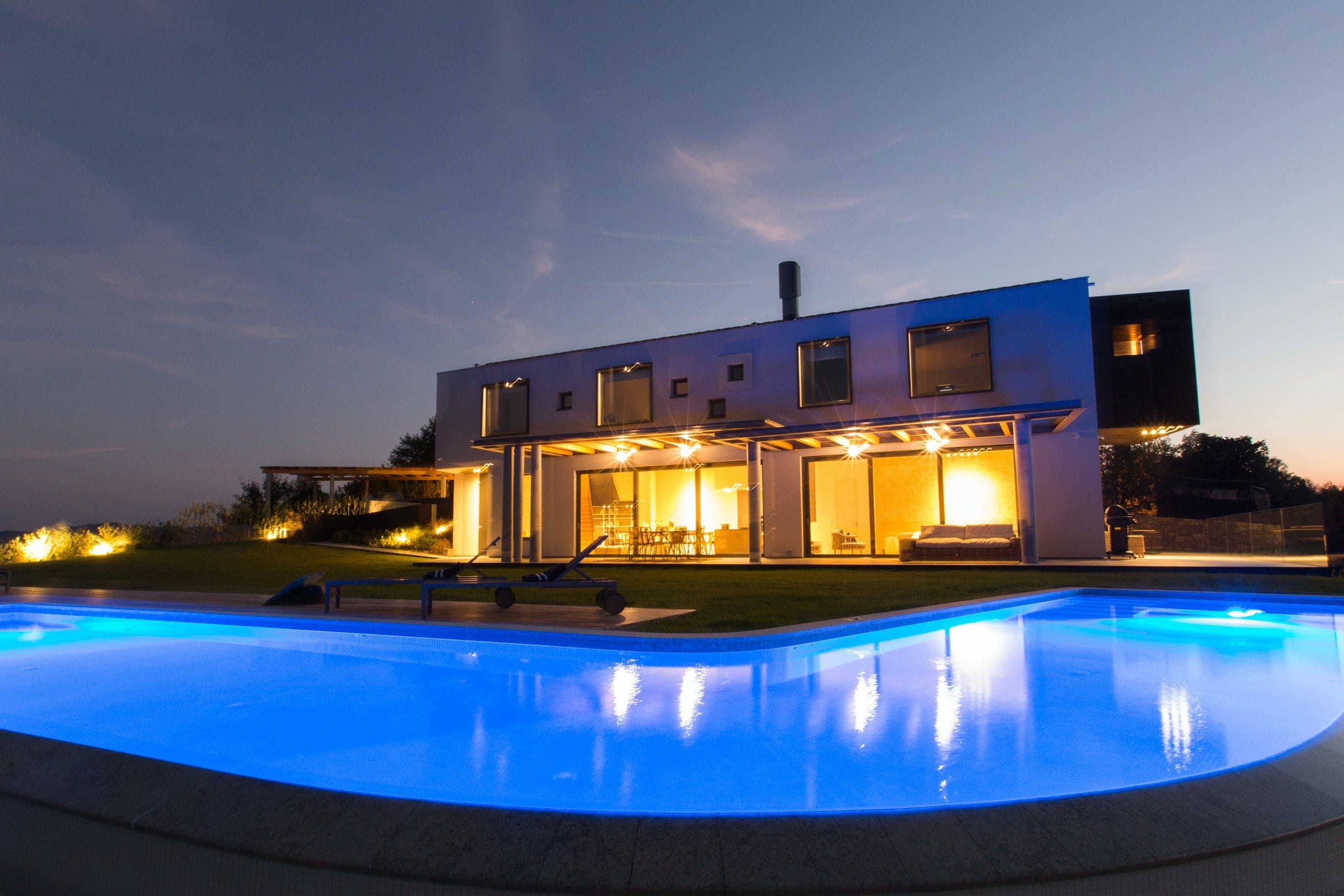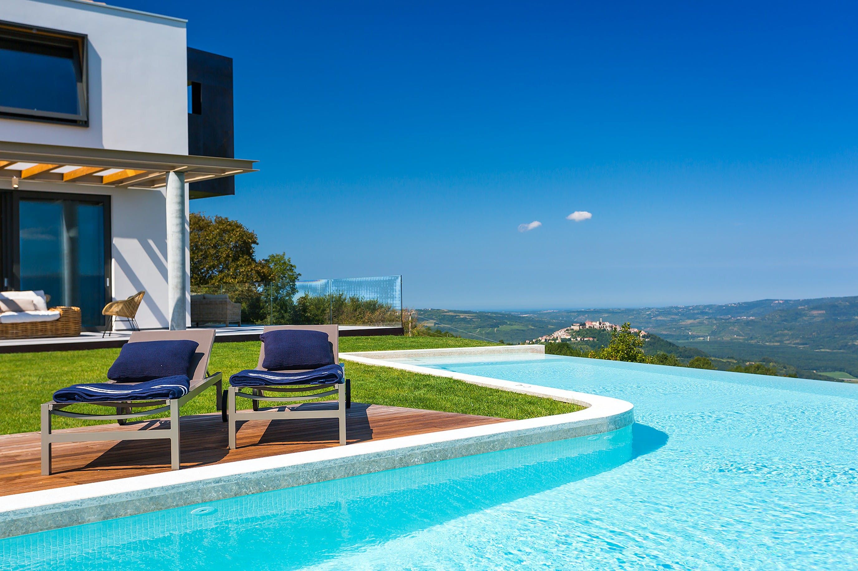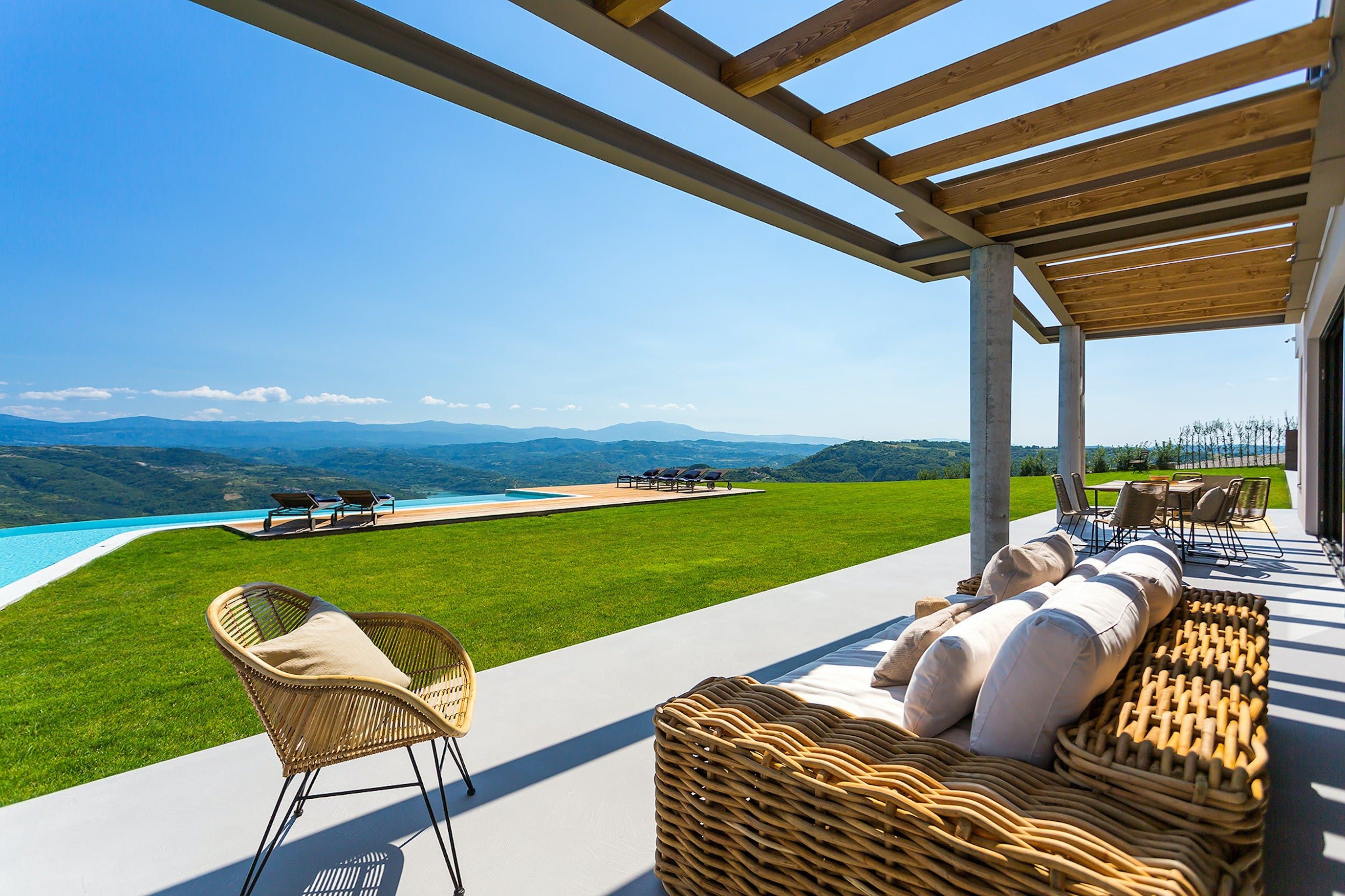 Villa Istra Magic is a stunning designer villa located in Istria, Croatia. This eco-friendly property is nestled amidst vineyards and boasts a breathtaking view of the turquoise Butoniga reservoir and the green Istria. The villa features three en-suite double bedrooms with impressive panoramic views, making it perfect for up to six guests. The modern, open plan kitchen and spacious sitting area span the entire length of the ground floor, while the outdoor area includes a large heated infinity swimming pool with comfortable loungers and many secluded spots for reading or lounging. The property also includes a small library area with TV and books, fully air-conditioned rooms, Wi-Fi internet connection, LCD SAT TV, BBQ, bicycles for guest use, and parking. With attractive coastal towns like Novigrad, Umag or Porec just 40 minutes away by car, Villa Istra Magic offers an ideal getaway for nature lovers and history buffs alike.