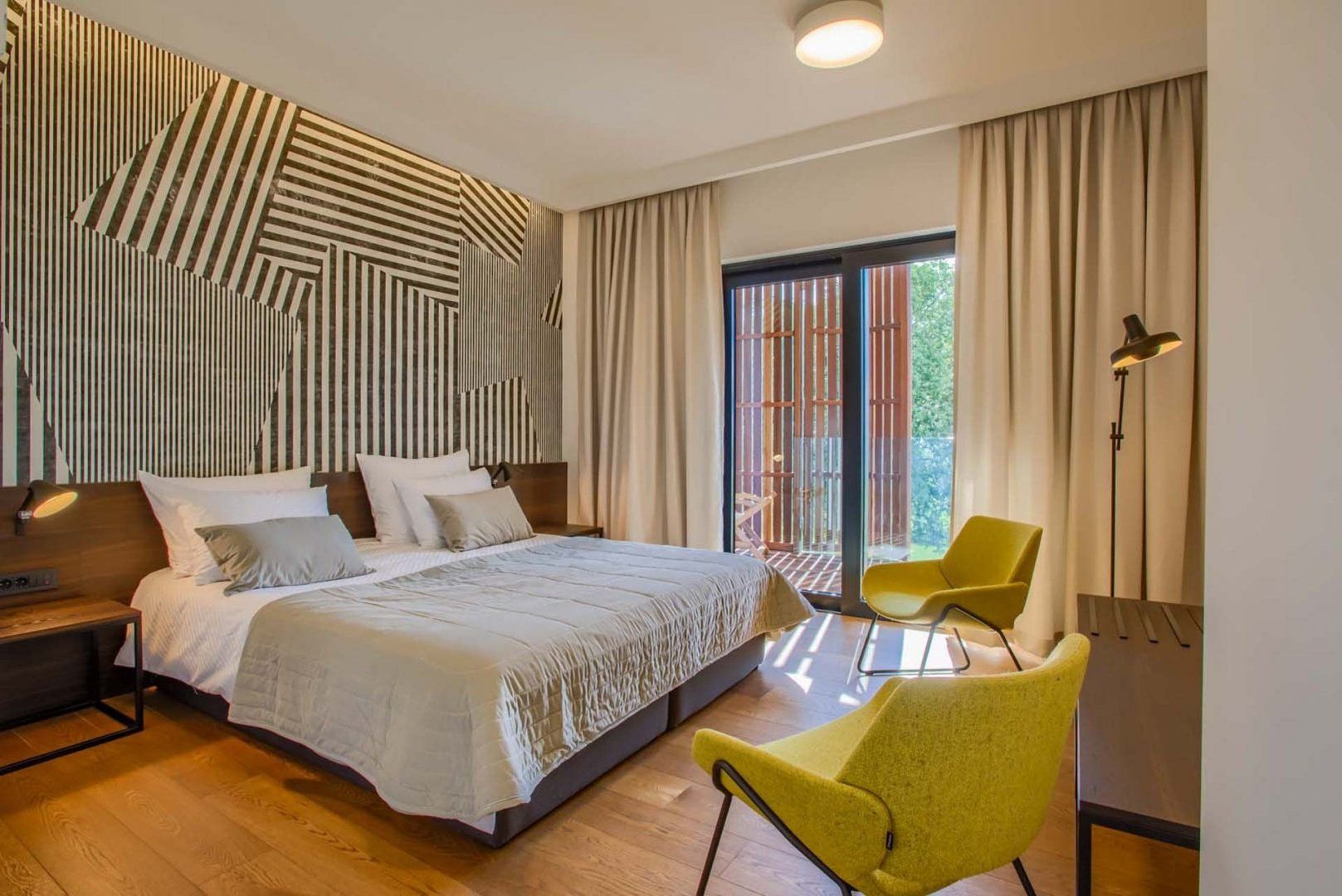 This super sleek villa in the heart of the Istrian countryside is a huge family home and deluxe spa combined. Those that like to relax and unwind on a big group holiday will love the facilities here. First, the long swimming pool is perfect for swimming laps and is topped with a bubbling Jacuzzi. It’s an indoor pool, but a wall of glass sliding doors can be opened up to get that alfresco feel as you lounge poolside. The outside decking is lined with loungers and parasols for hot, sunny days and there’s dining set on a wooden deck in the middle of the perfect lawn. From here, the view is nothing but lush greenery and fields as far as the eye can see.