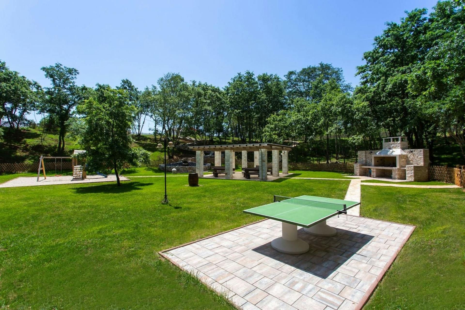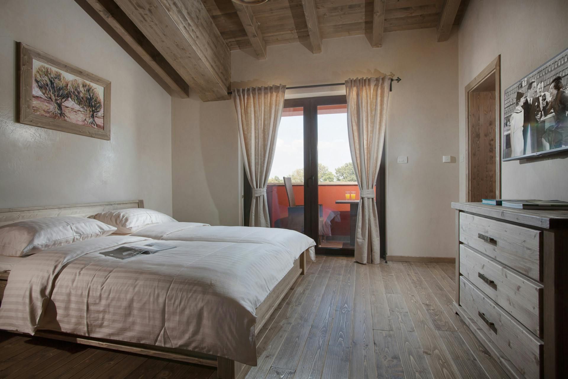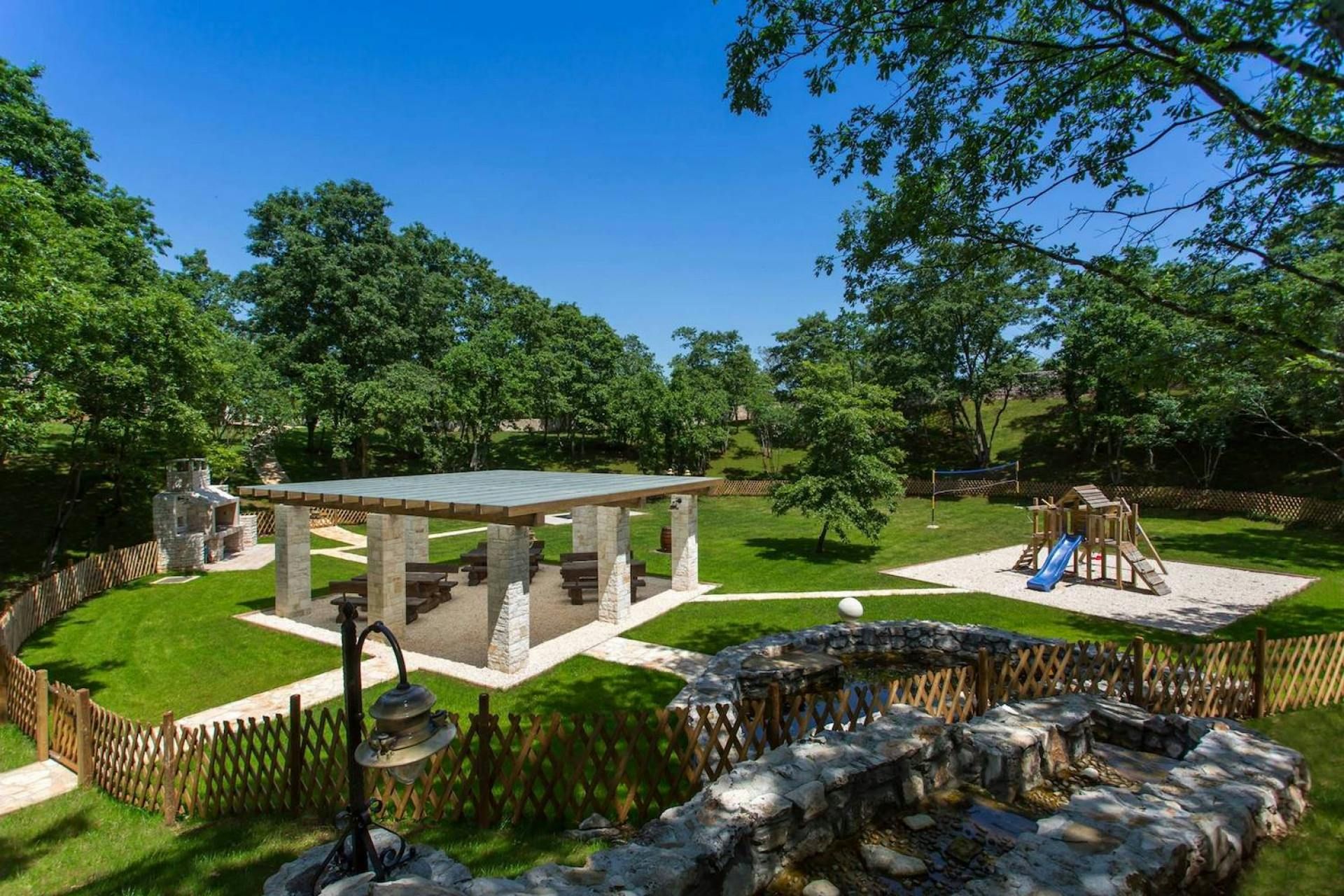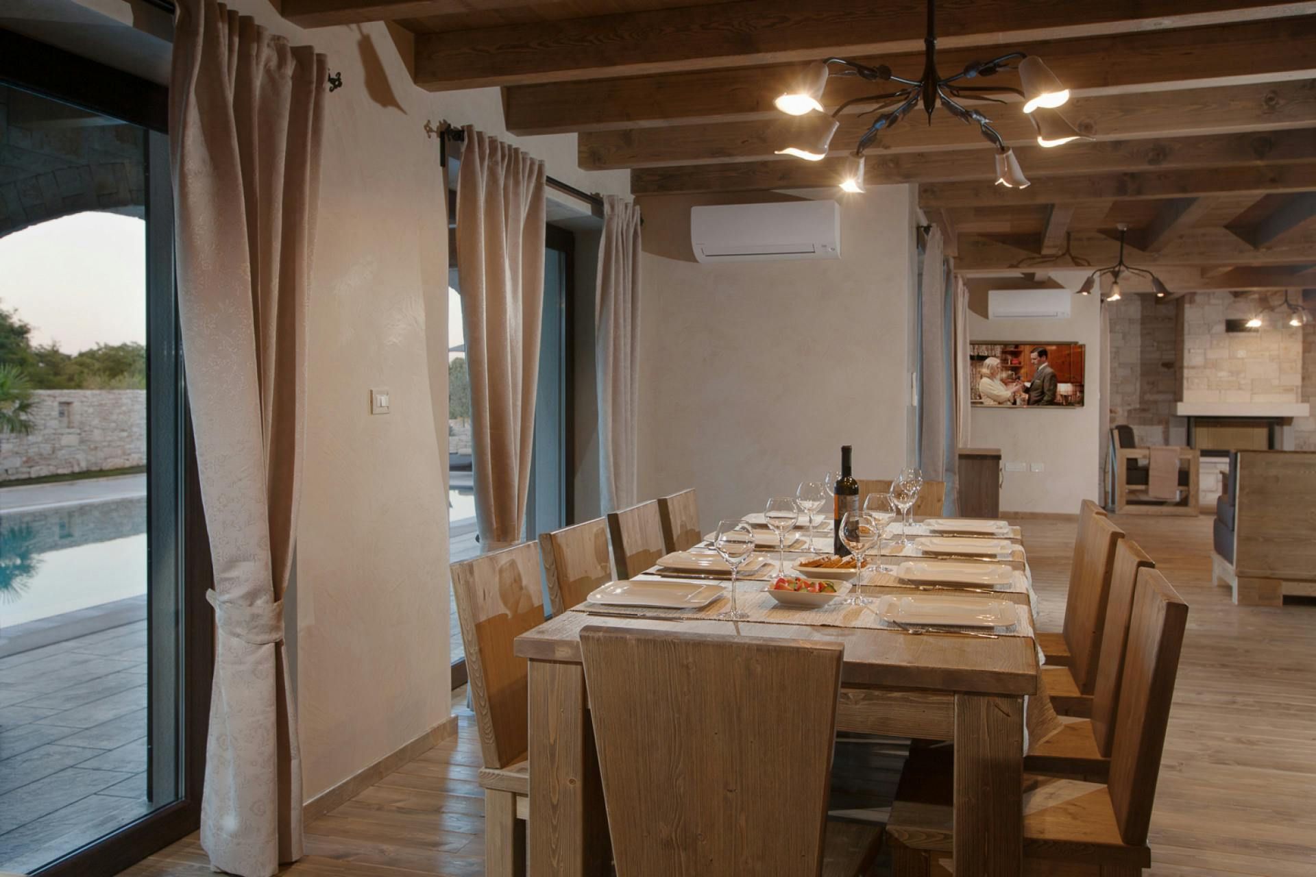 This stunning villa in Croatia provides a perfect blend of classic elegance and modern functionality for a comfortable holiday. The property boasts a beautiful green lawn, circular arches, natural stone and a striking red structure that surrounds the 65 m² pool. Guests can relax under the night sky in the open-air jacuzzi or on the spacious terrace, which is equipped with high-quality comfortable furniture. The outdoor covered kitchen features a built-in barbecue and long table for guests to enjoy meals together. On-site amenities include a volleyball field, table tennis table and children's play toys. Inside the villa, large floor-to-ceiling windows flood the 400 m² interior with natural light. The professional kitchen is fully equipped for self-catering, while minimalist living accents and wood elements provide simple elegance throughout. The four tastefully decorated bedrooms each have modern ensuite bathrooms and direct access to the terrace or balcony. The villa is ideally located for exploring Istria, with nearby villages connected by a small country road and the beach and golf course just 15 km and 25 km away, respectively.