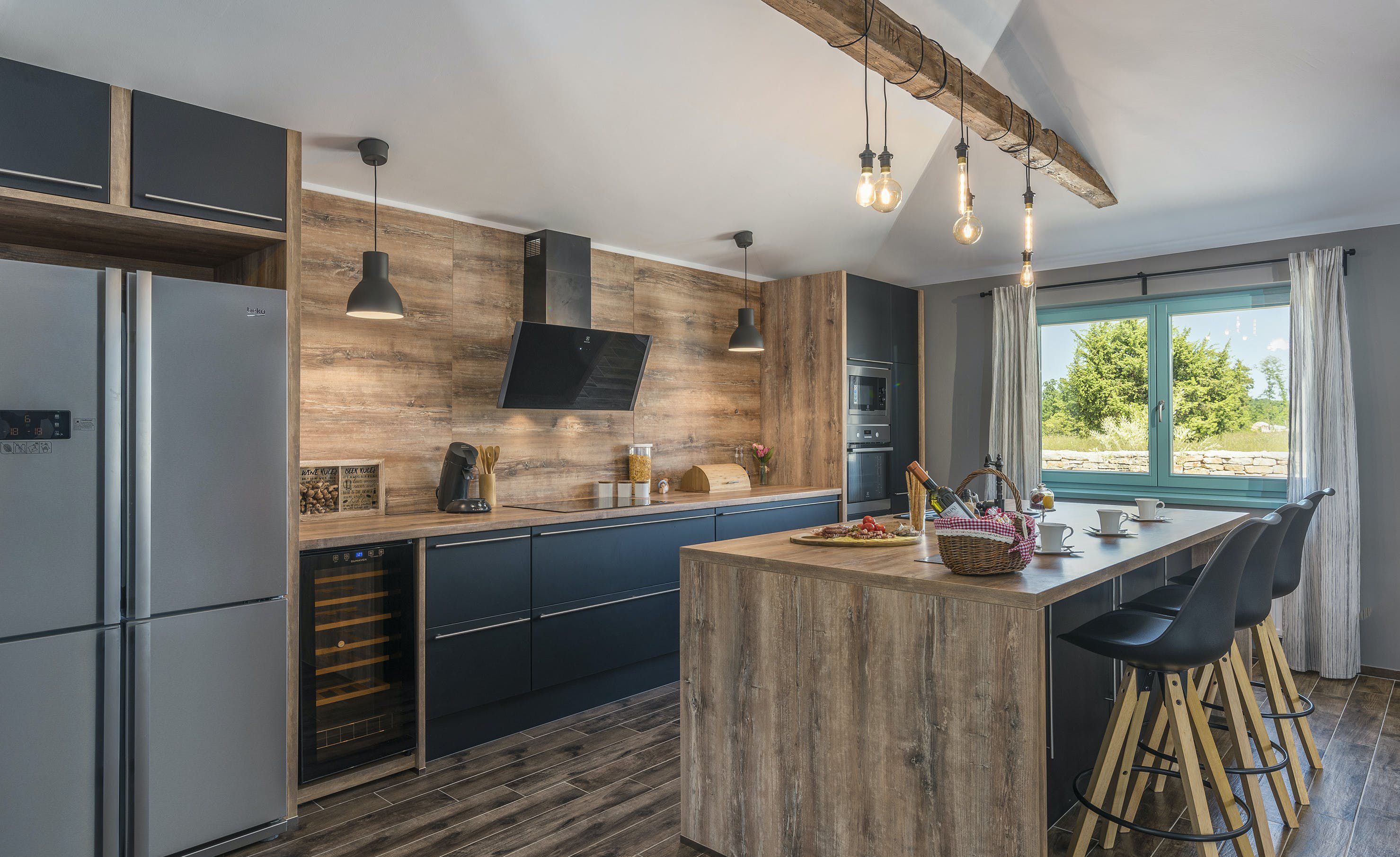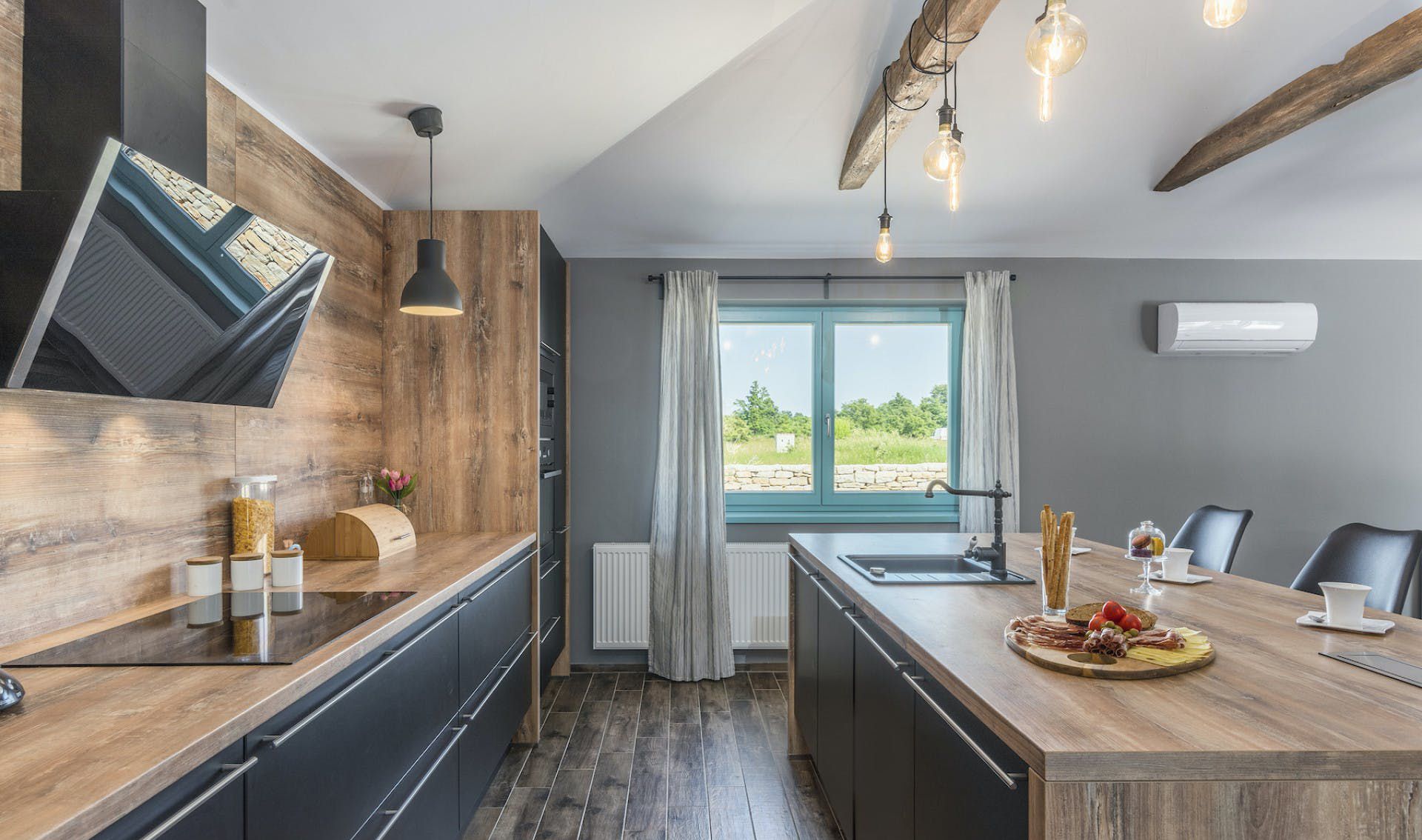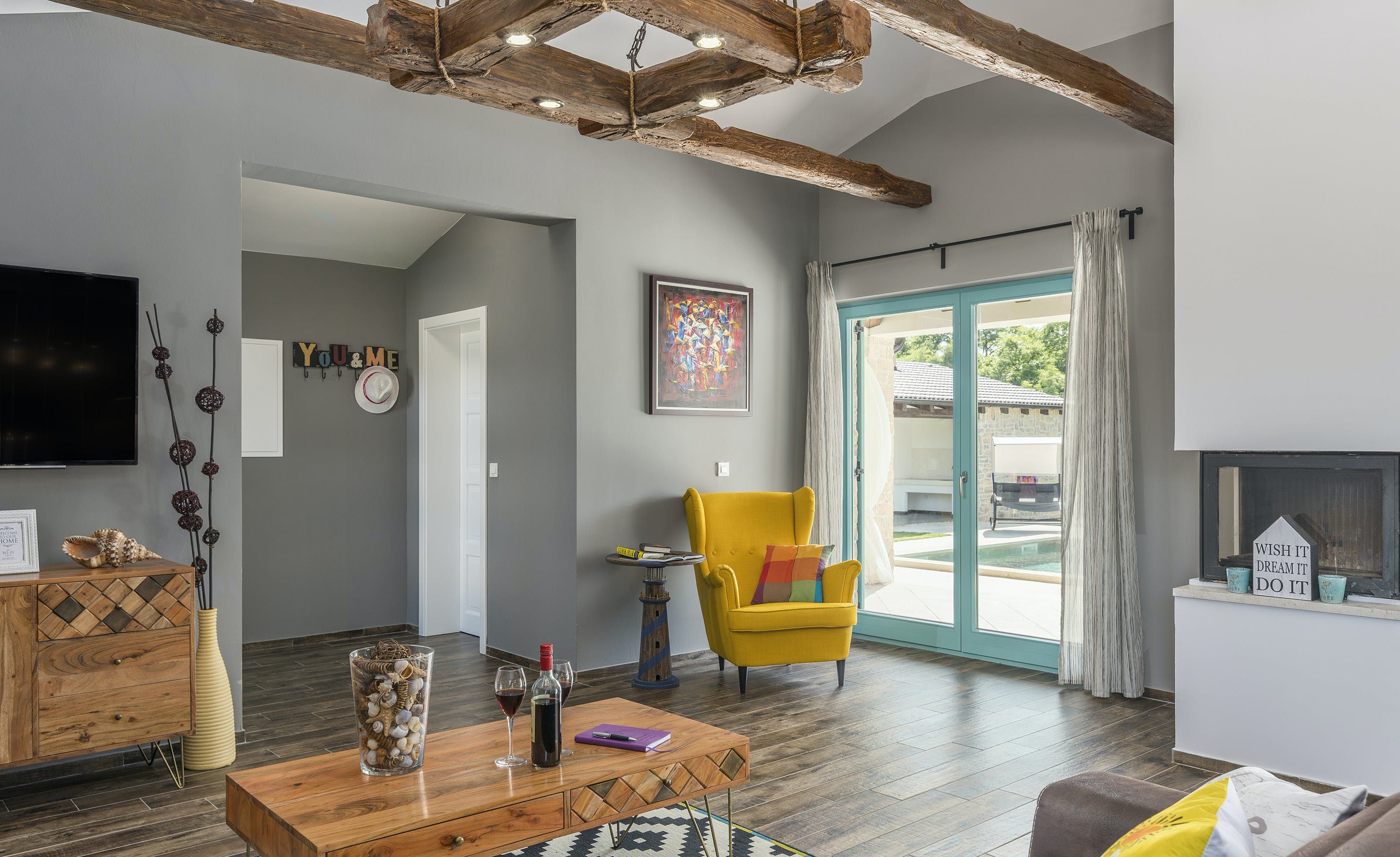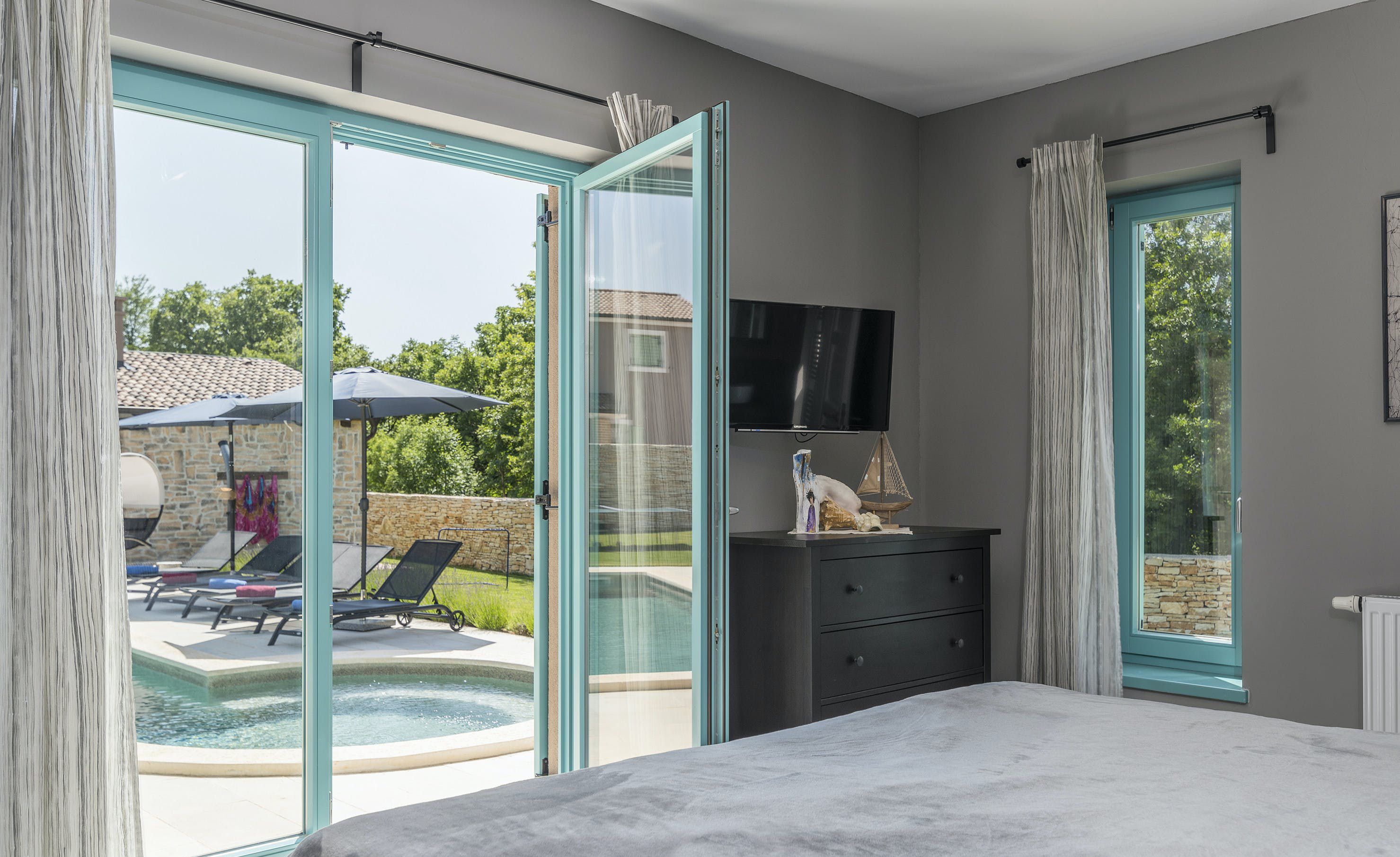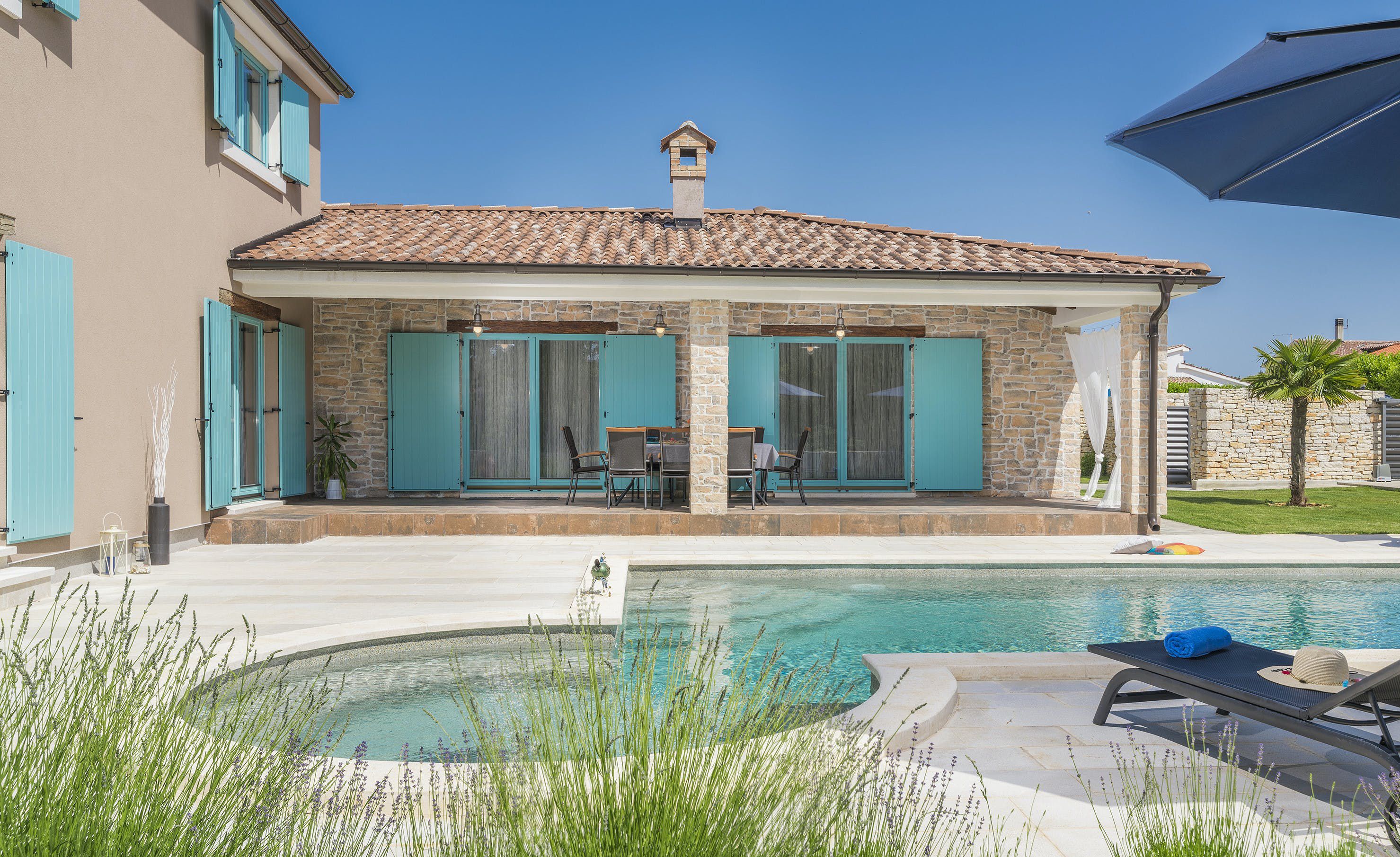 This modern villa near Pula is perfect for two families or a group of friends. The L-shaped house is situated on a large, well-maintained, completely fenced 1,000 sqm area with a pool terrace in front of it. The pool has a comfortable staircase entrance and a hydro massage feature. Besides the pool, guests can enjoy table tennis, small football goals, and table soccer on the premises. The outdoor brick grill provides an opportunity to end the day with a barbecue. Indoors, there is a trendy living room with lots of wood and colorful accents. The living areas flow into each other and are tasteful and consistent in color and style. On the ground floor, there is a super bedroom with direct access to the pool and en suite bathroom as well as a practical guest toilet. Upstairs, there are three bedrooms - two with views of the pool and garden - each with an en suite bathroom. The home provides the best conditions for an unforgettable vacation.