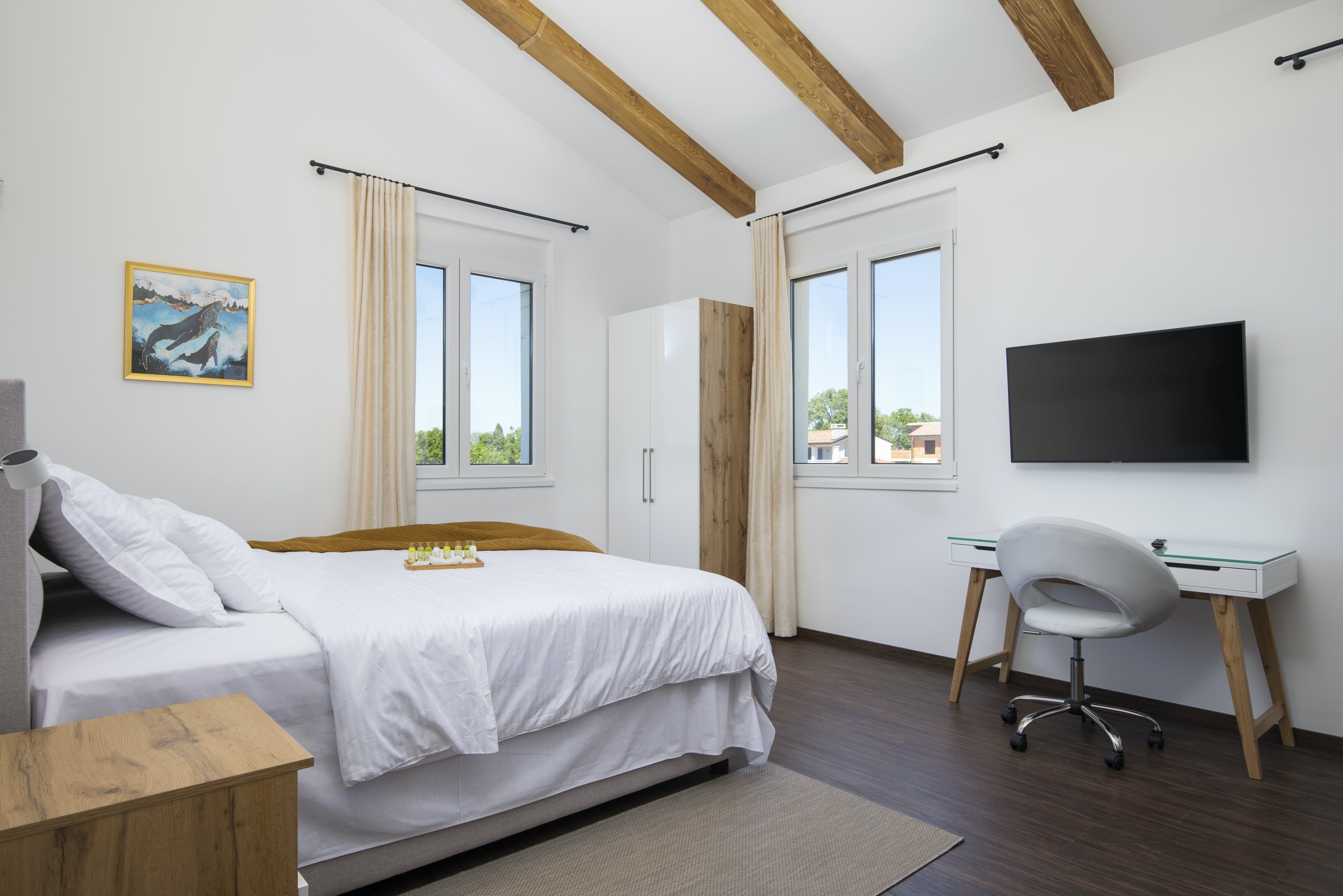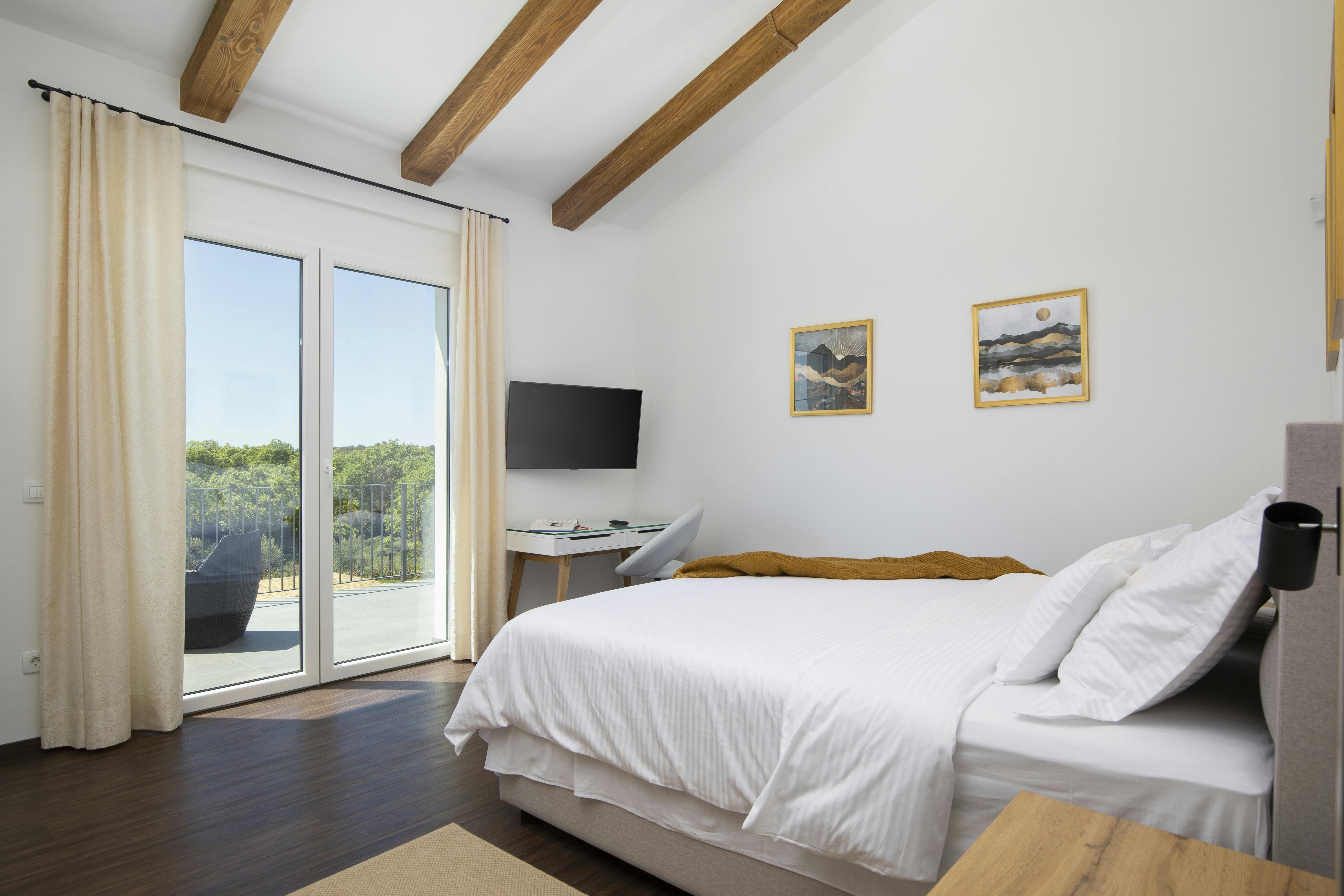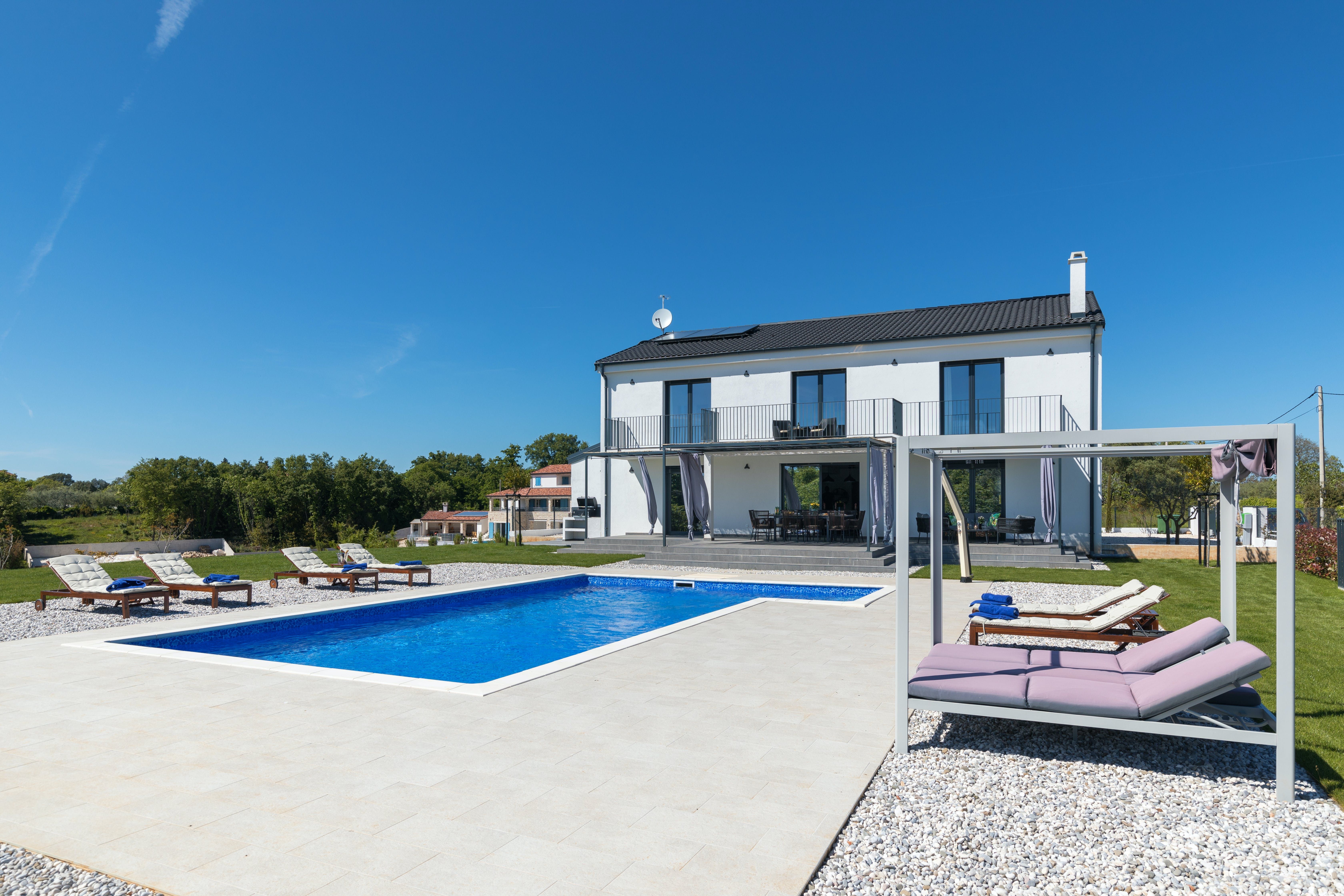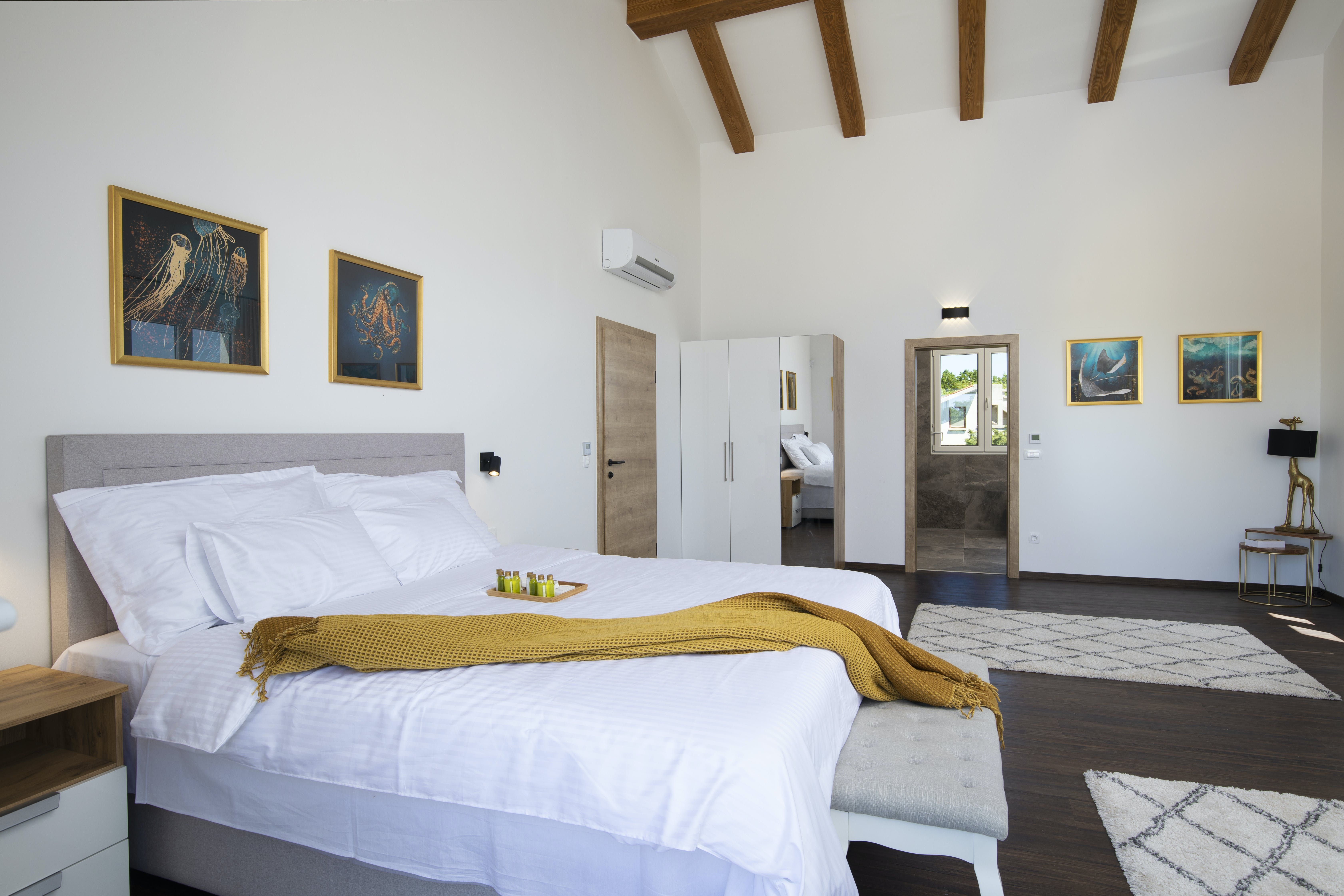 On the peaceful coast of Istria, this home offers a refreshing coastal retreat. You can enjoy views across the sea from the balcony and there’s a pool for blissful swims. The covered terrace and barbecue lends itself perfectly to slow evening meals. Plus, there’s table tennis and badminton for family fun. Inside, the room are simple and family-friendly with all of the bedrooms featuring en-suite bathrooms for optimum privacy. We recommend hiring a car to get the most out of your stay, but it’s less than 2-kilometres to the nearest beach, while Pula is less than thirty-minutes away.