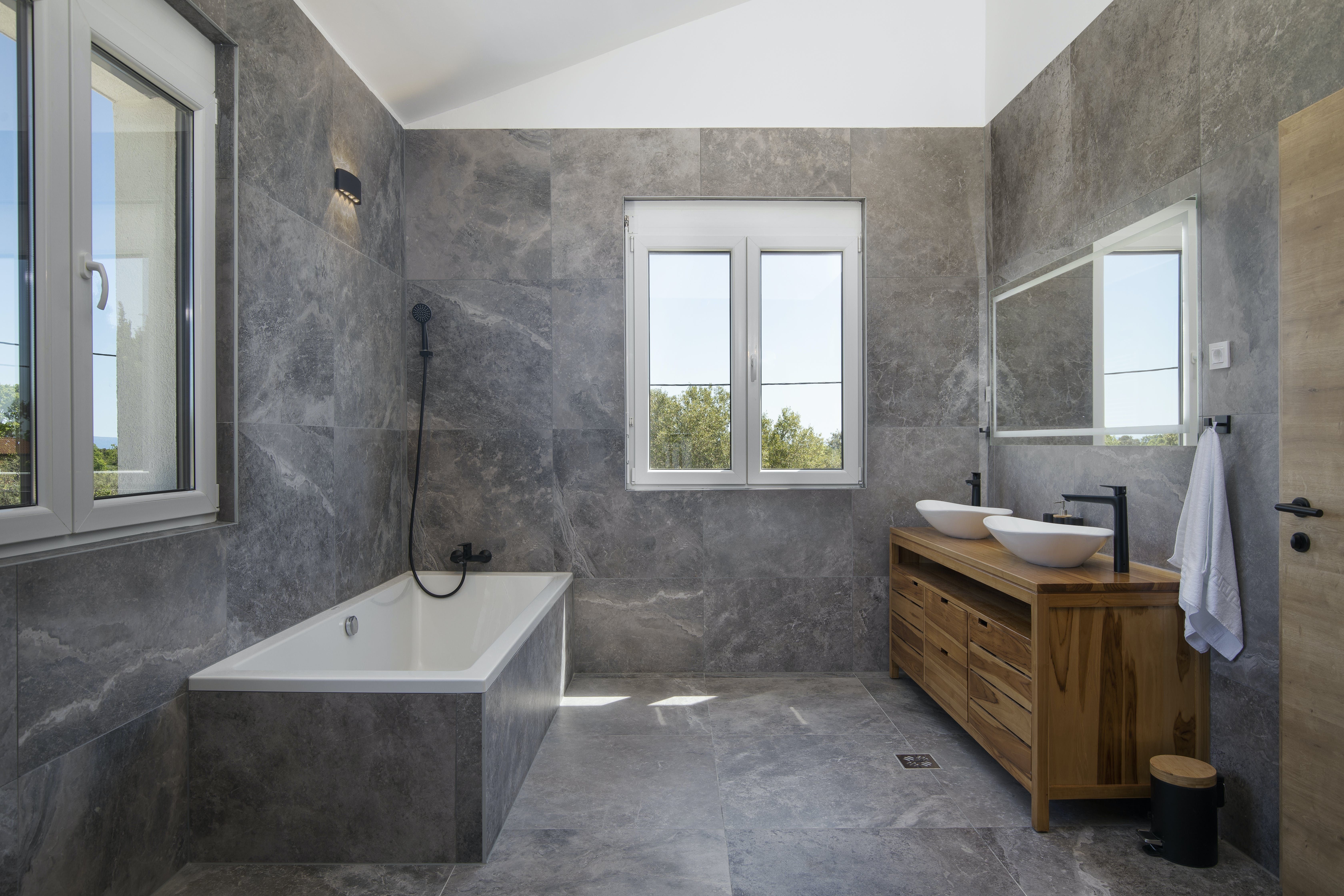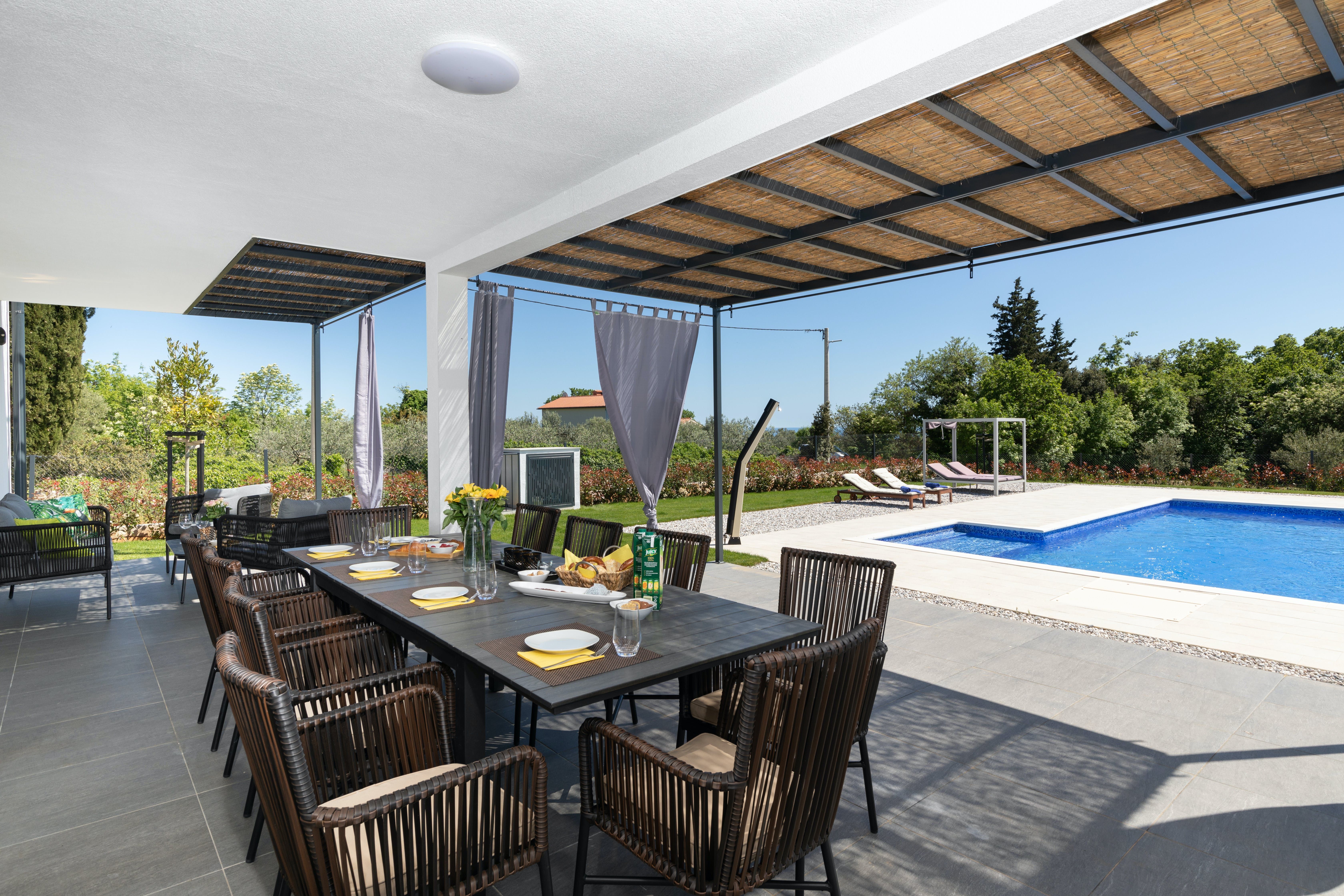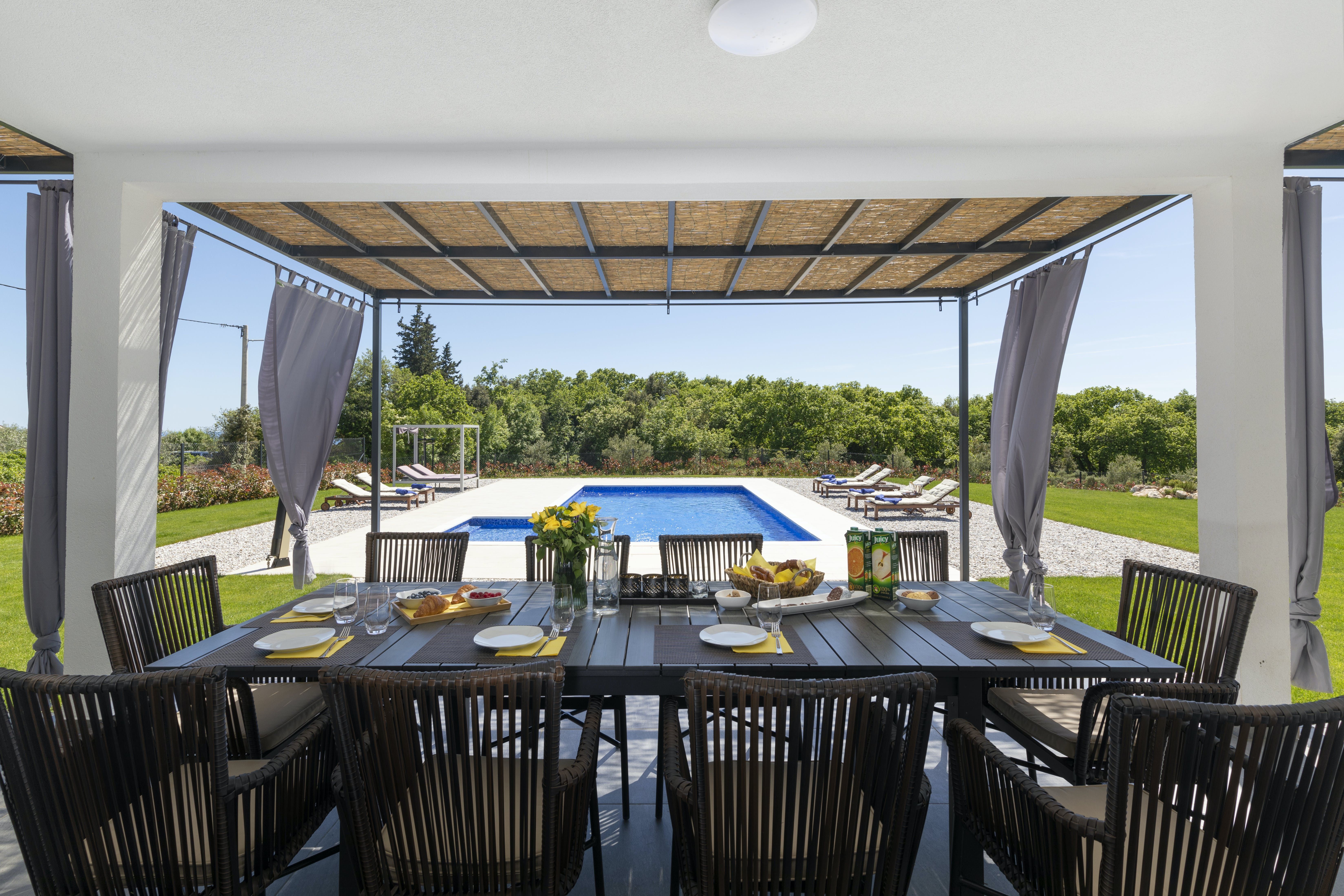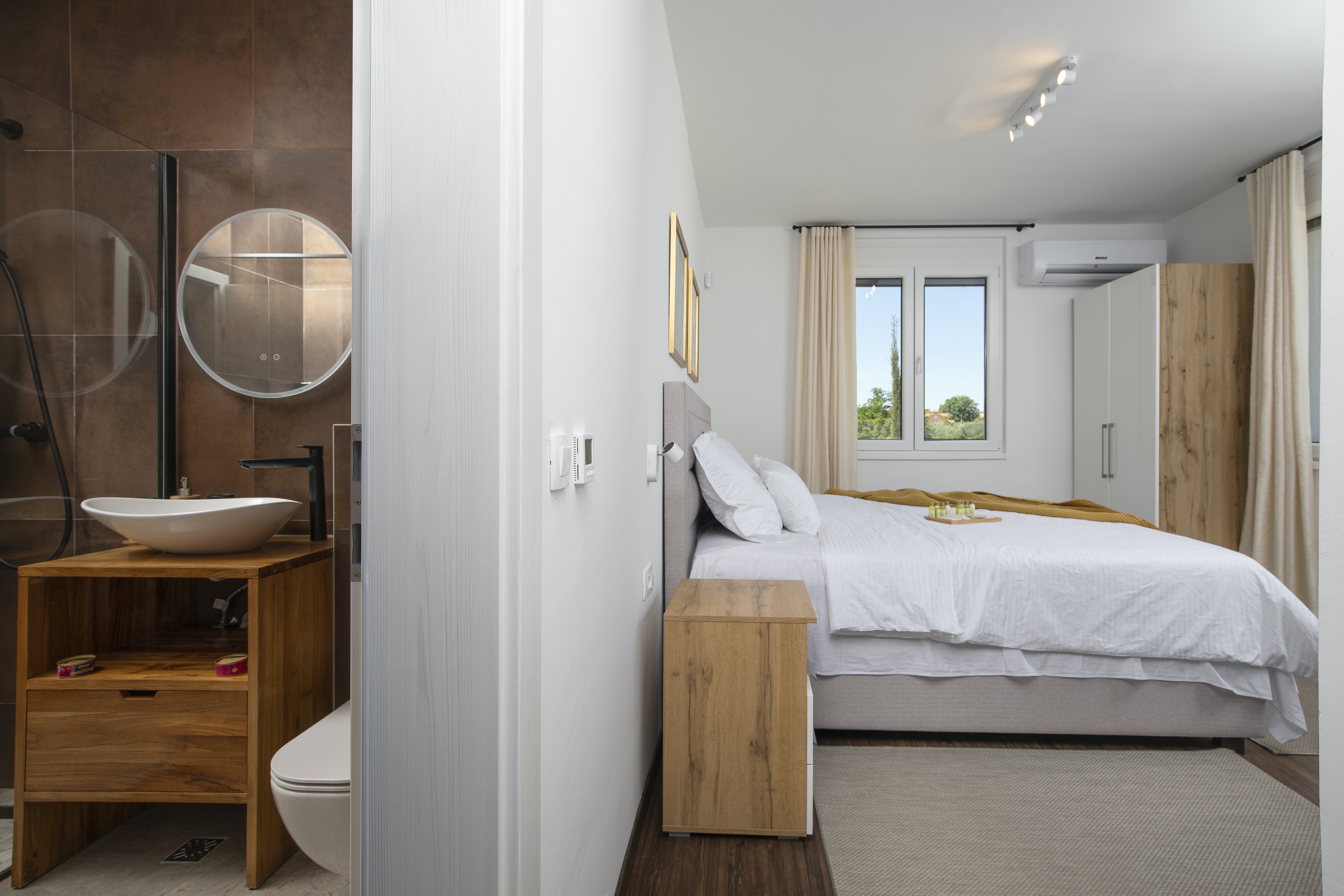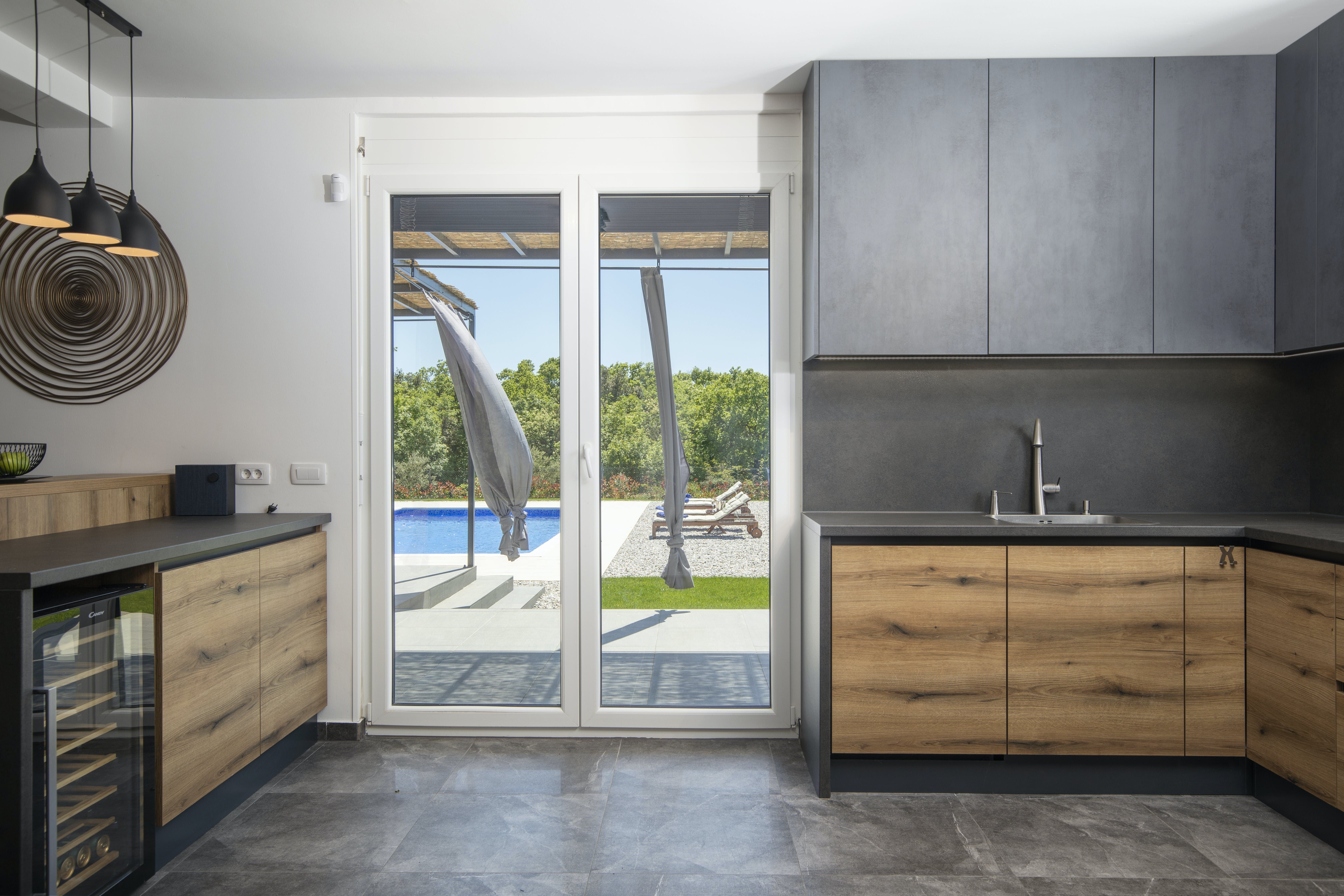 On the peaceful coast of Istria, this home offers a refreshing coastal retreat. You can enjoy views across the sea from the balcony and there’s a pool for blissful swims. The covered terrace and barbecue lends itself perfectly to slow evening meals. Plus, there’s table tennis and badminton for family fun. Inside, the room are simple and family-friendly with all of the bedrooms featuring en-suite bathrooms for optimum privacy. We recommend hiring a car to get the most out of your stay, but it’s less than 2-kilometres to the nearest beach, while Pula is less than thirty-minutes away.